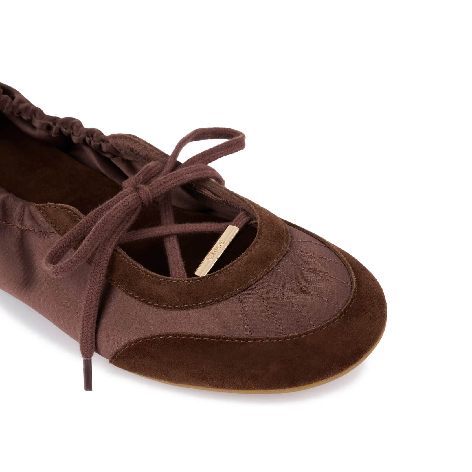 תג לוגו Chloé בצבע זהב על השרוכים