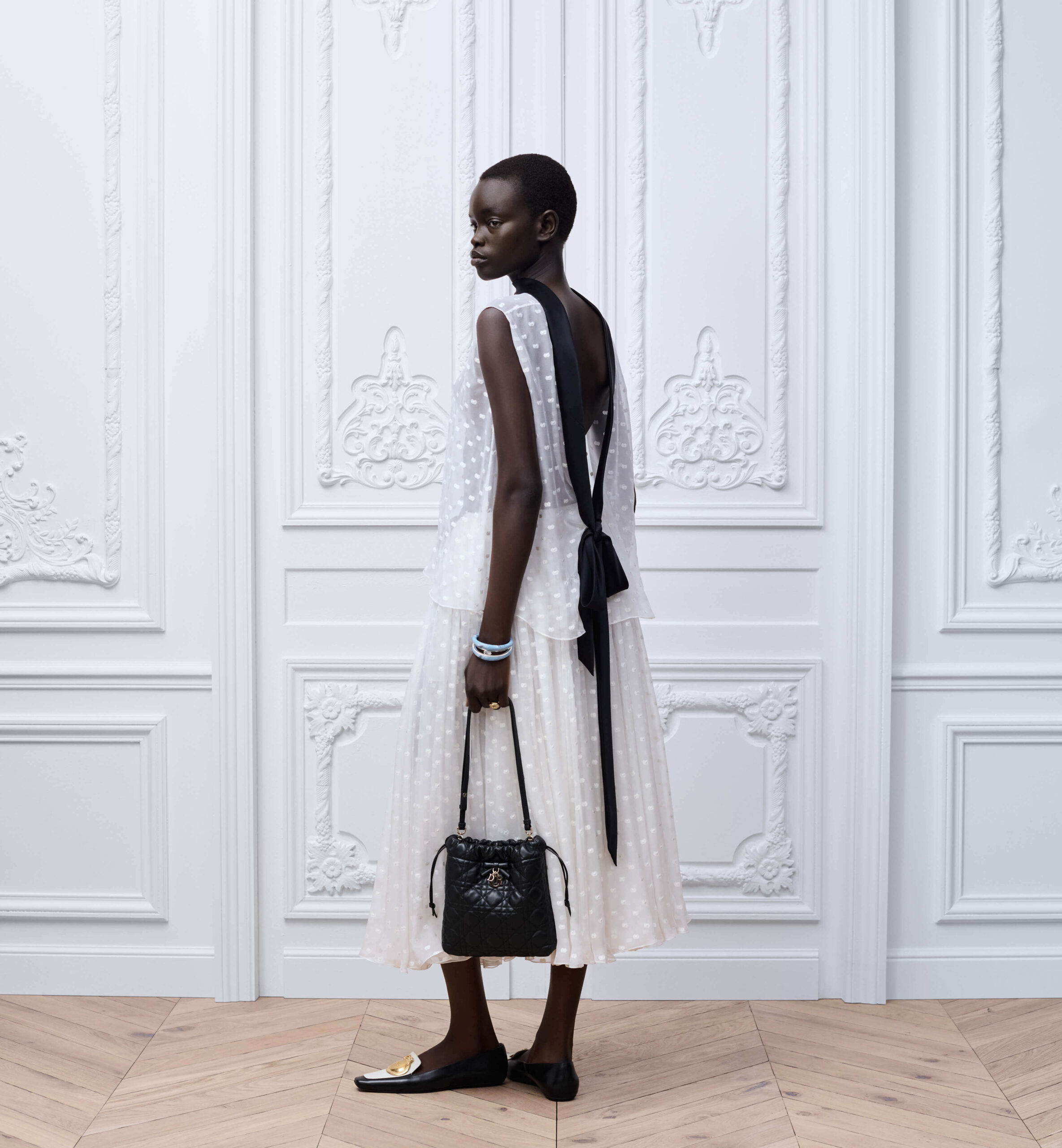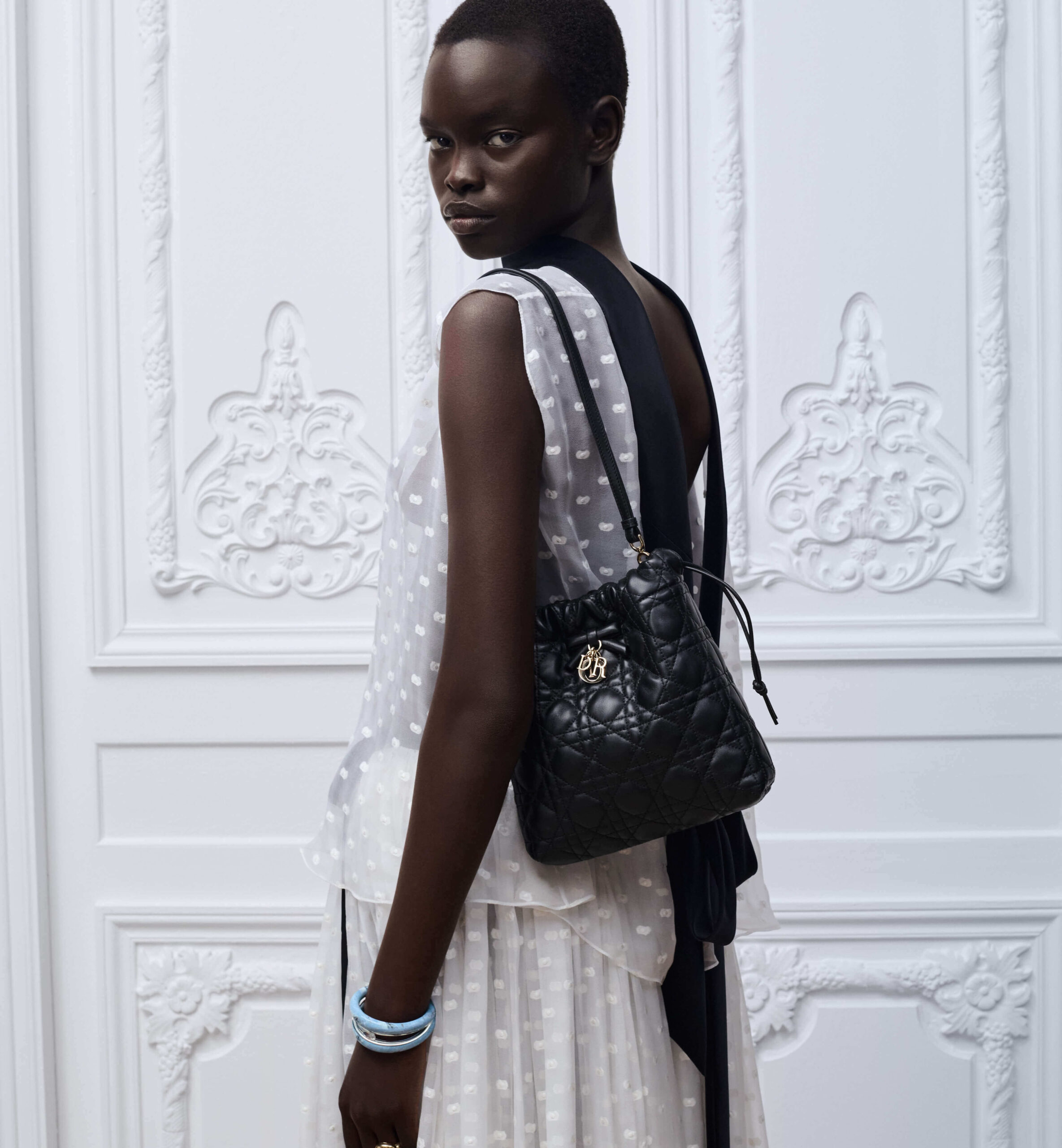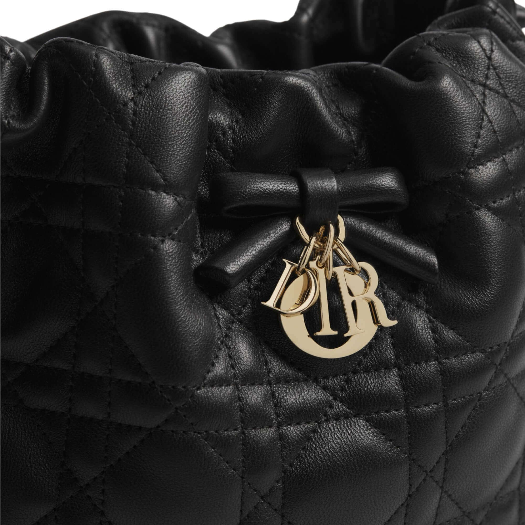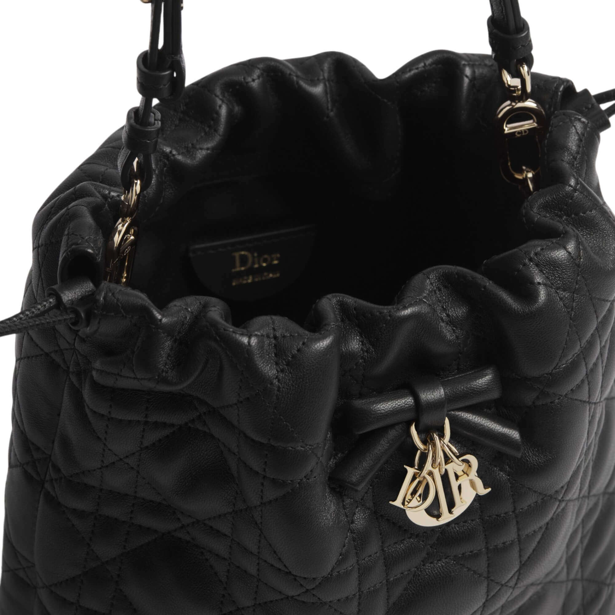 תיק Lady Dior מיני מעור שחור עם תיפורי Cannage