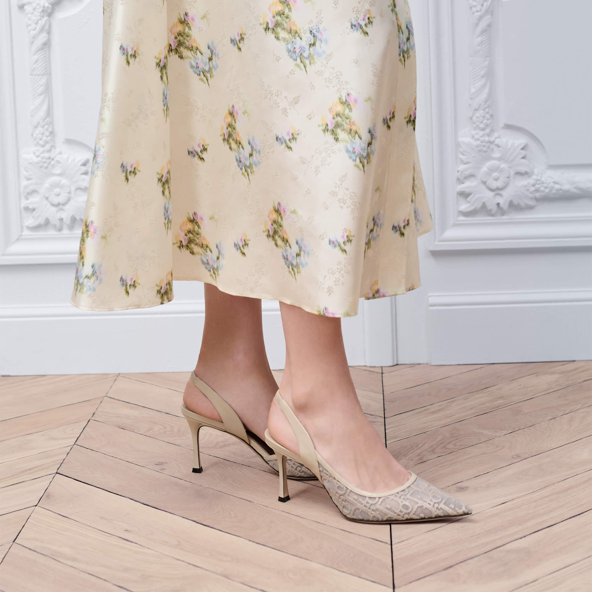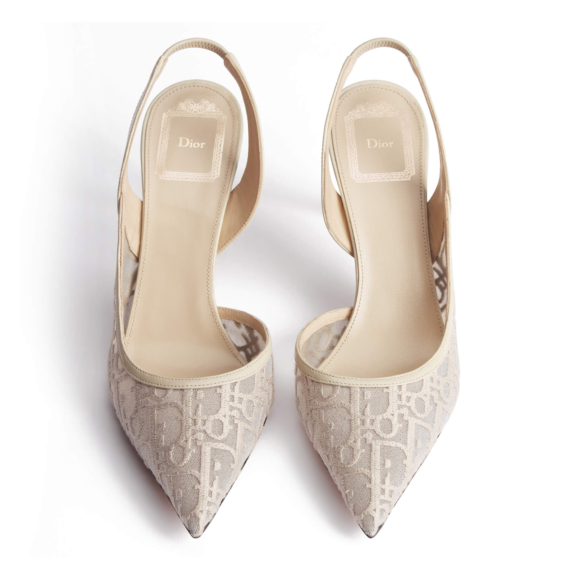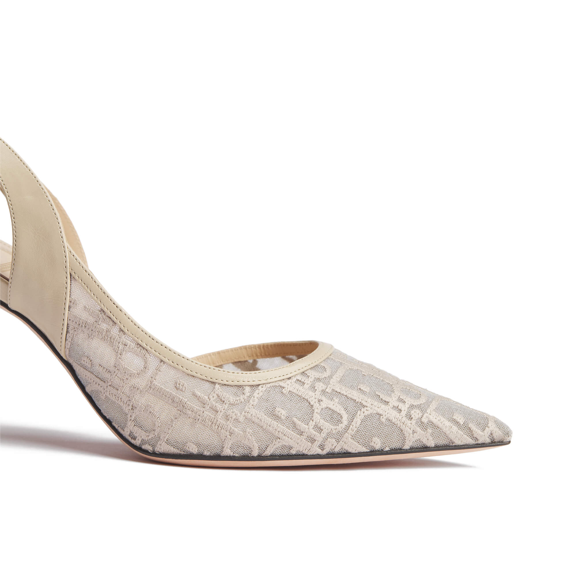 נעלי עקב מרשת עם רקמת Dior Oblique בצבע בז׳