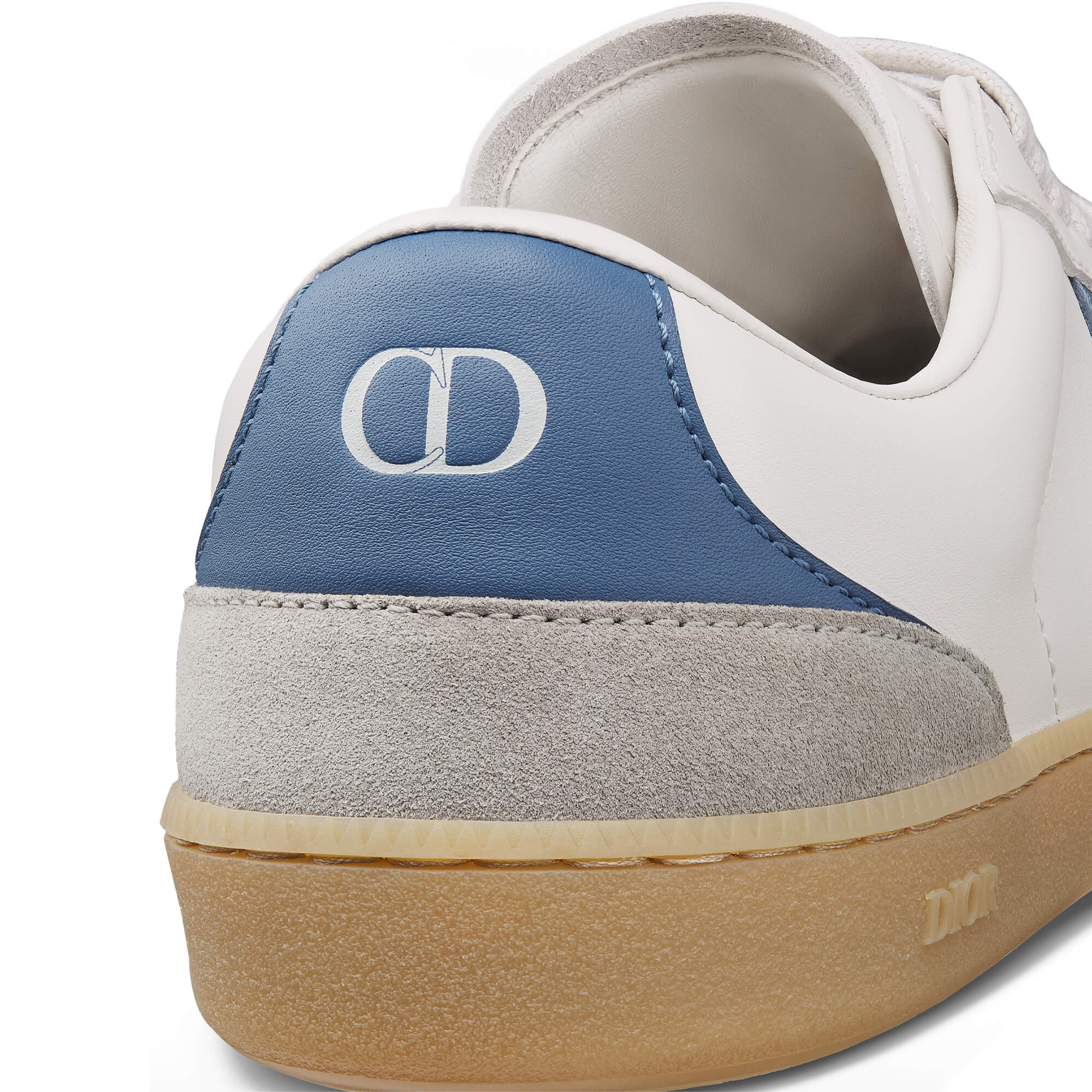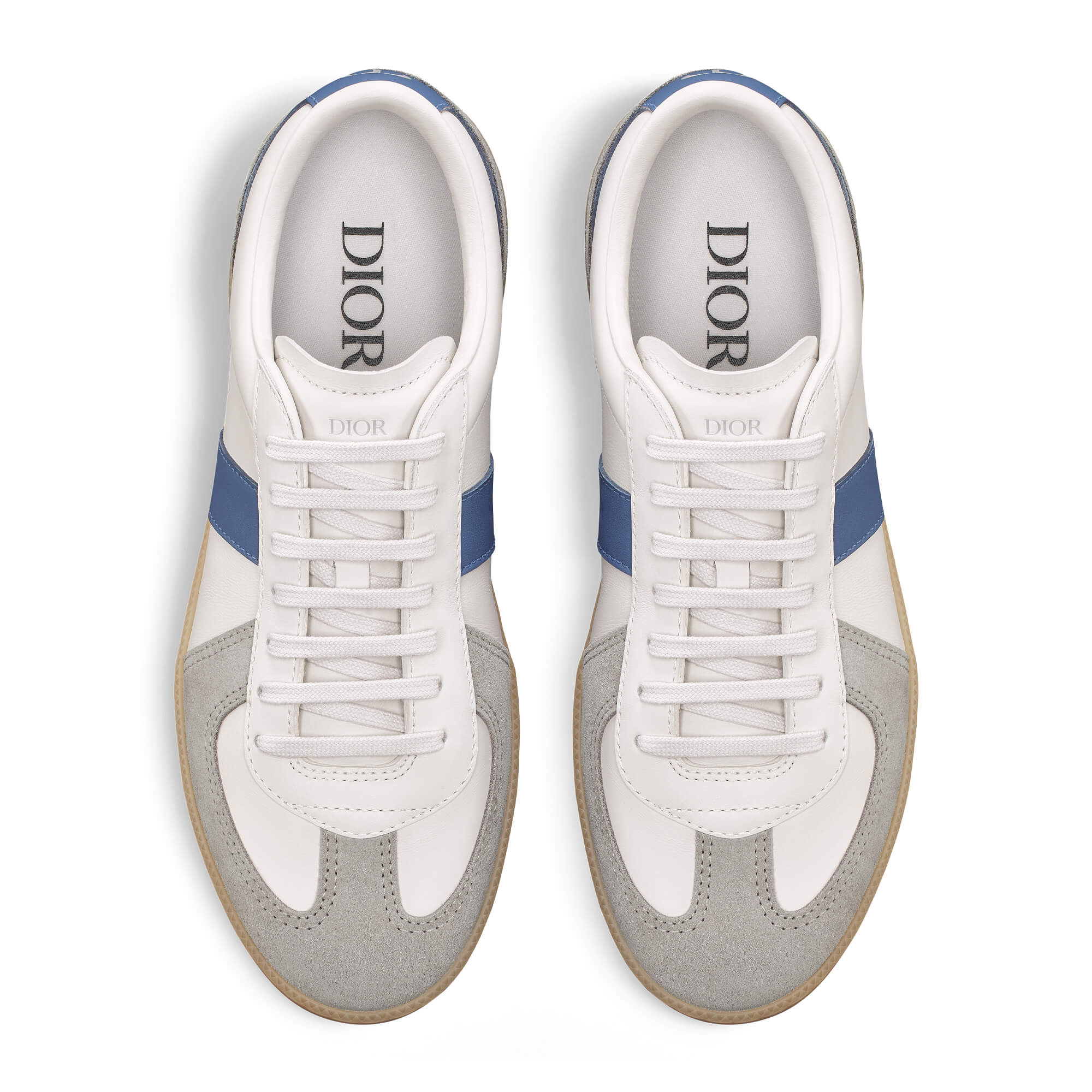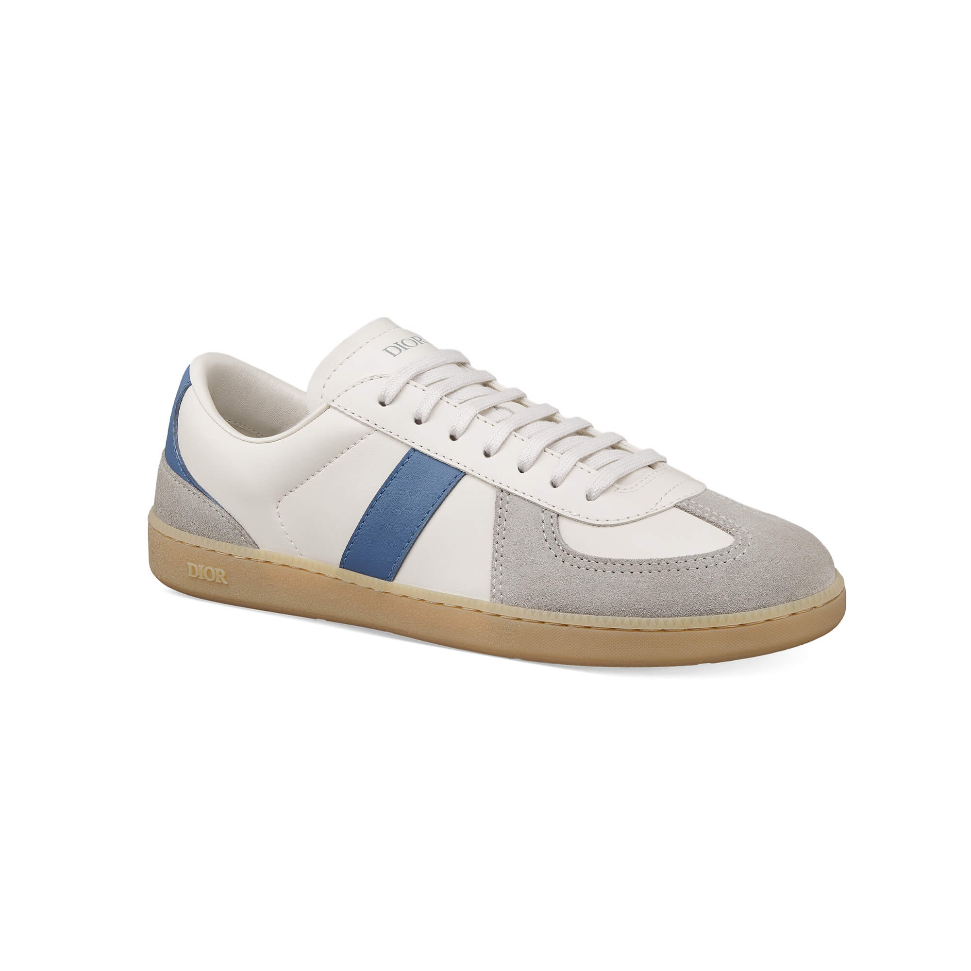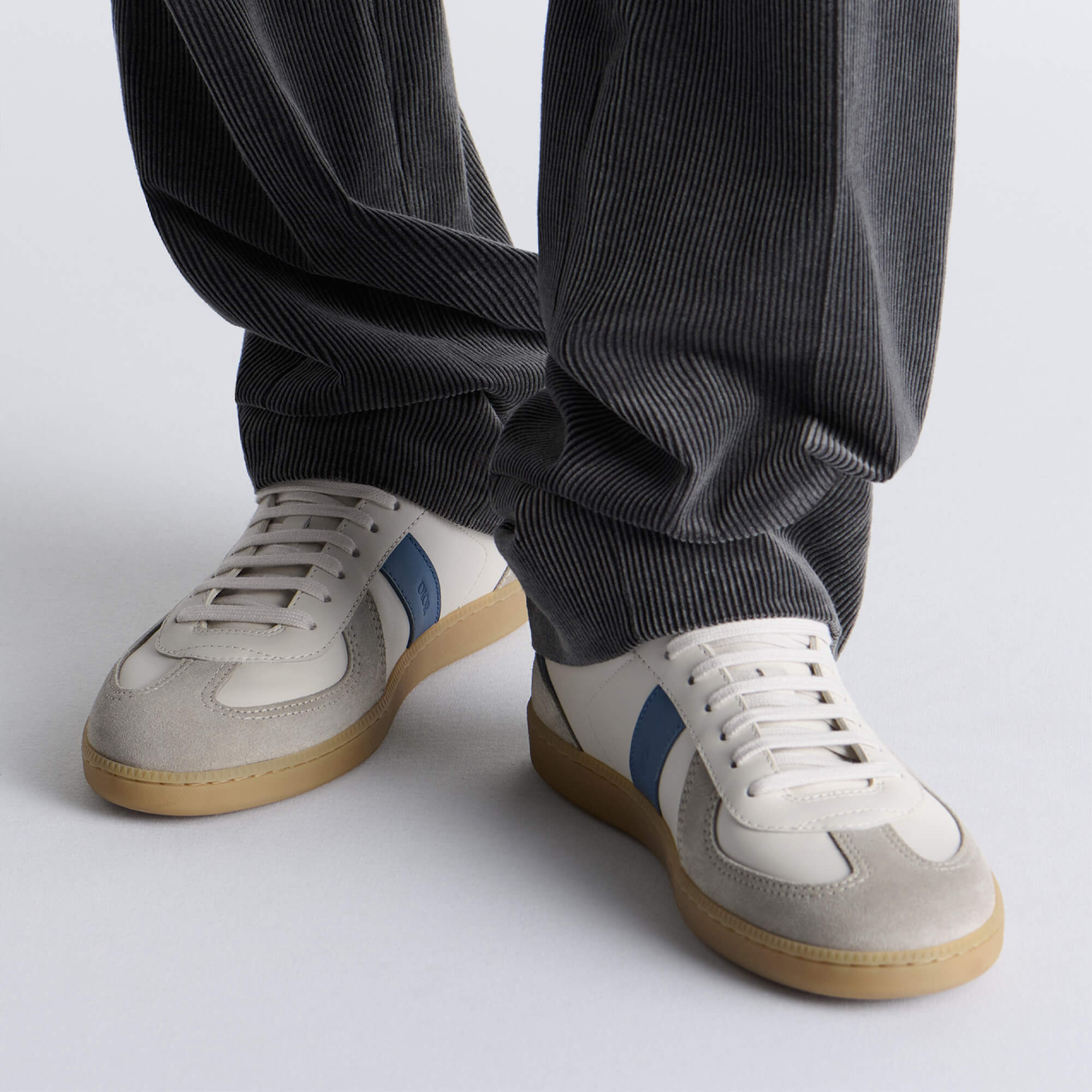 נעלי סניקרס מעור calfskin חלק בצבע לבן וכחול בשילוב זמש calfskin בצבע אפור