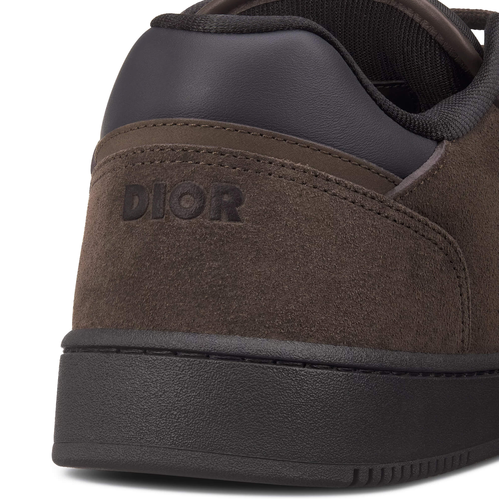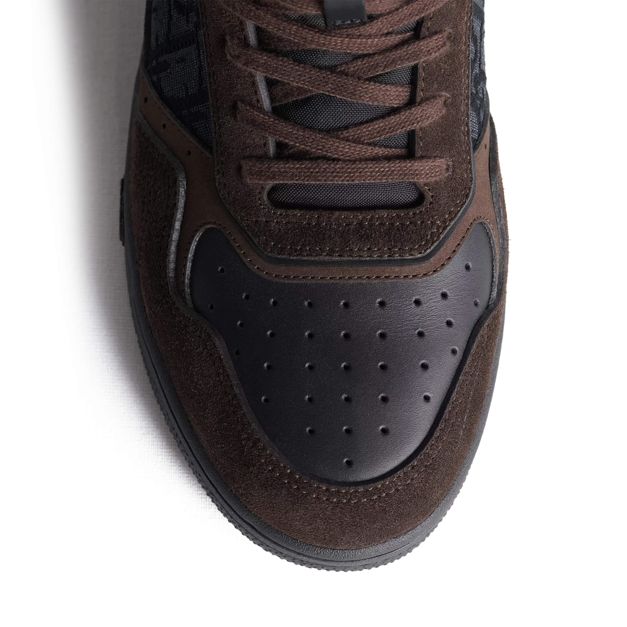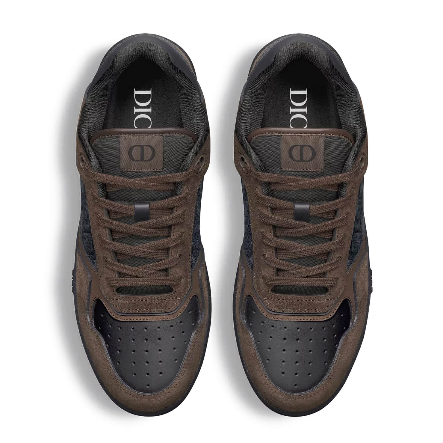 נעלי סניקרס מזמש בצבע חום כהה, בשילוב פאנל קדמי מעור שחור חלק ופאנלים צדדיים מאריג Dior Oblique jacquard