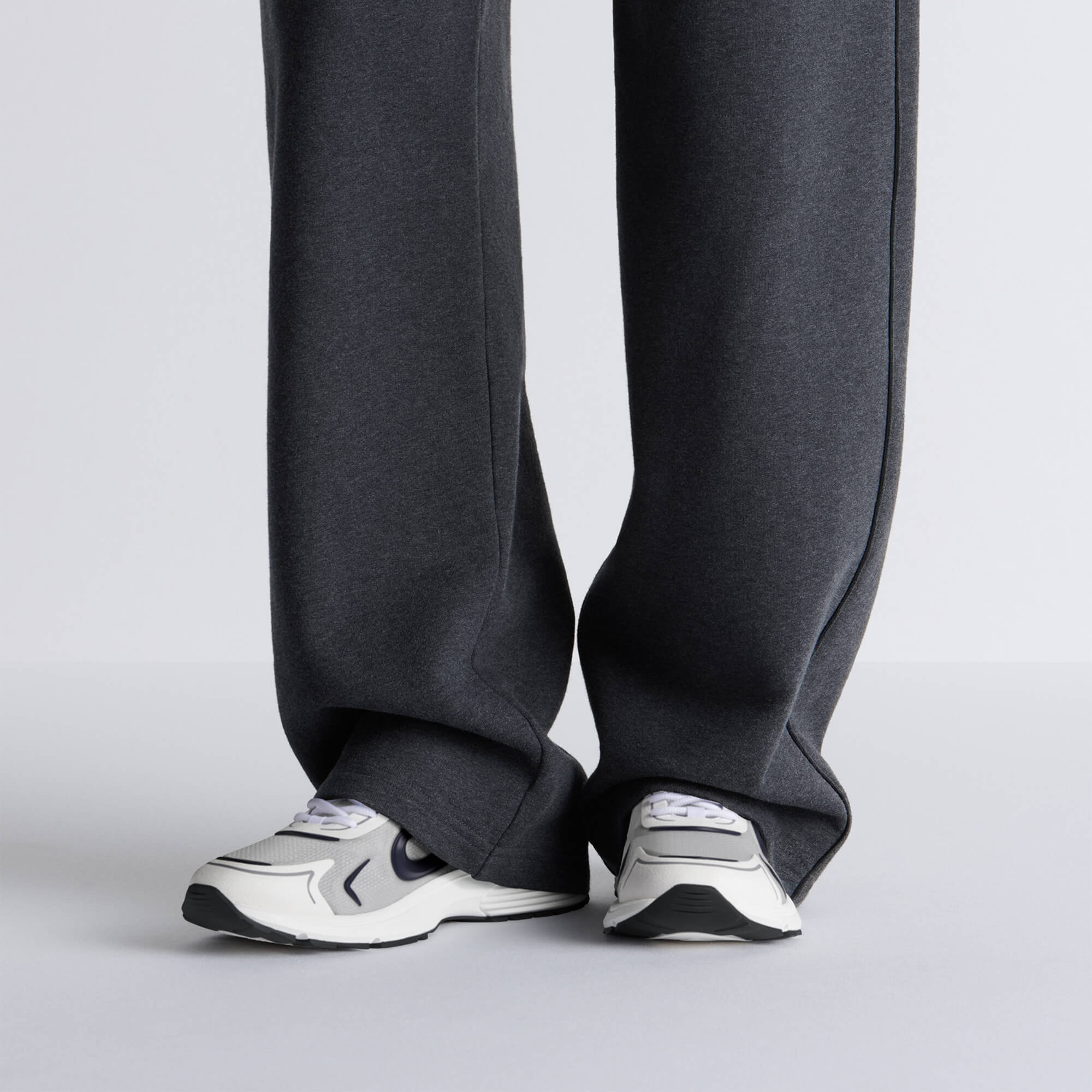 נעלי סניקרס מניילון חצי שקוף בצבע לבן, בד טכני בצבע לבן ואפור וגומי בצבע כחול כהה