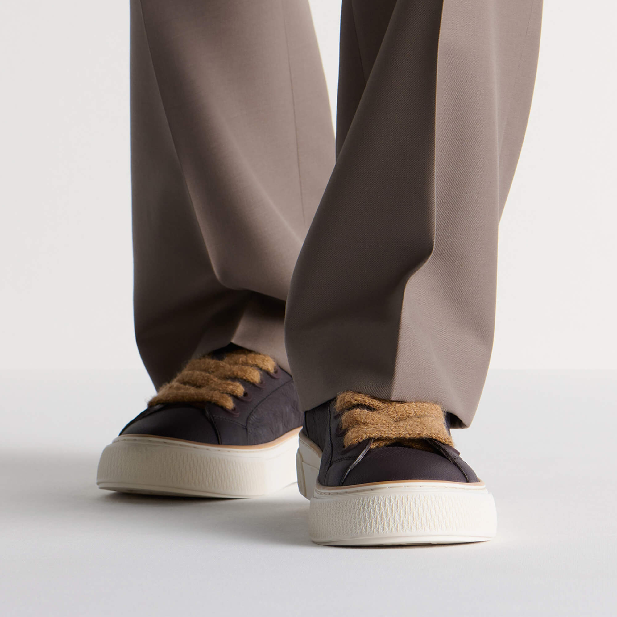 נעלי סניקרס מעור calfskin ועור Dior Gravity בצבע חום כהה