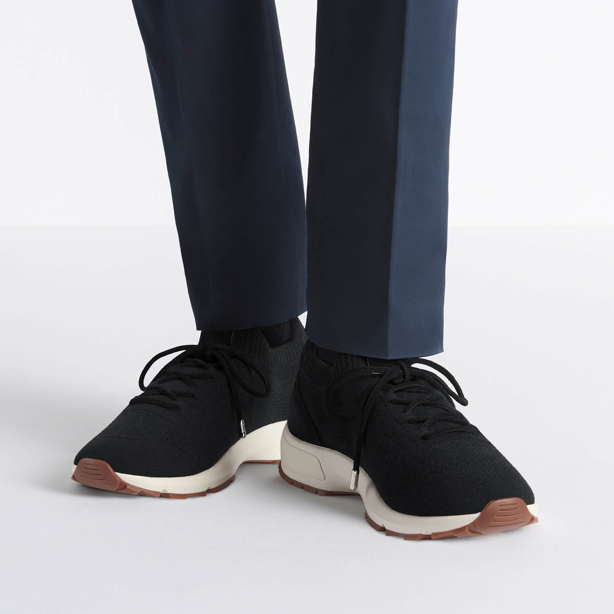 נעלי סניקרס מסריג קשמיר, צמר ומשי בדוגמת Cannage בשילוב זמש calfskin בצבע שחור