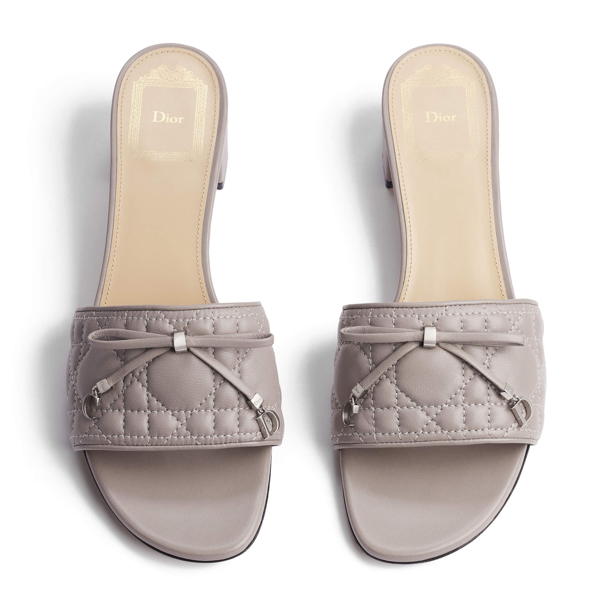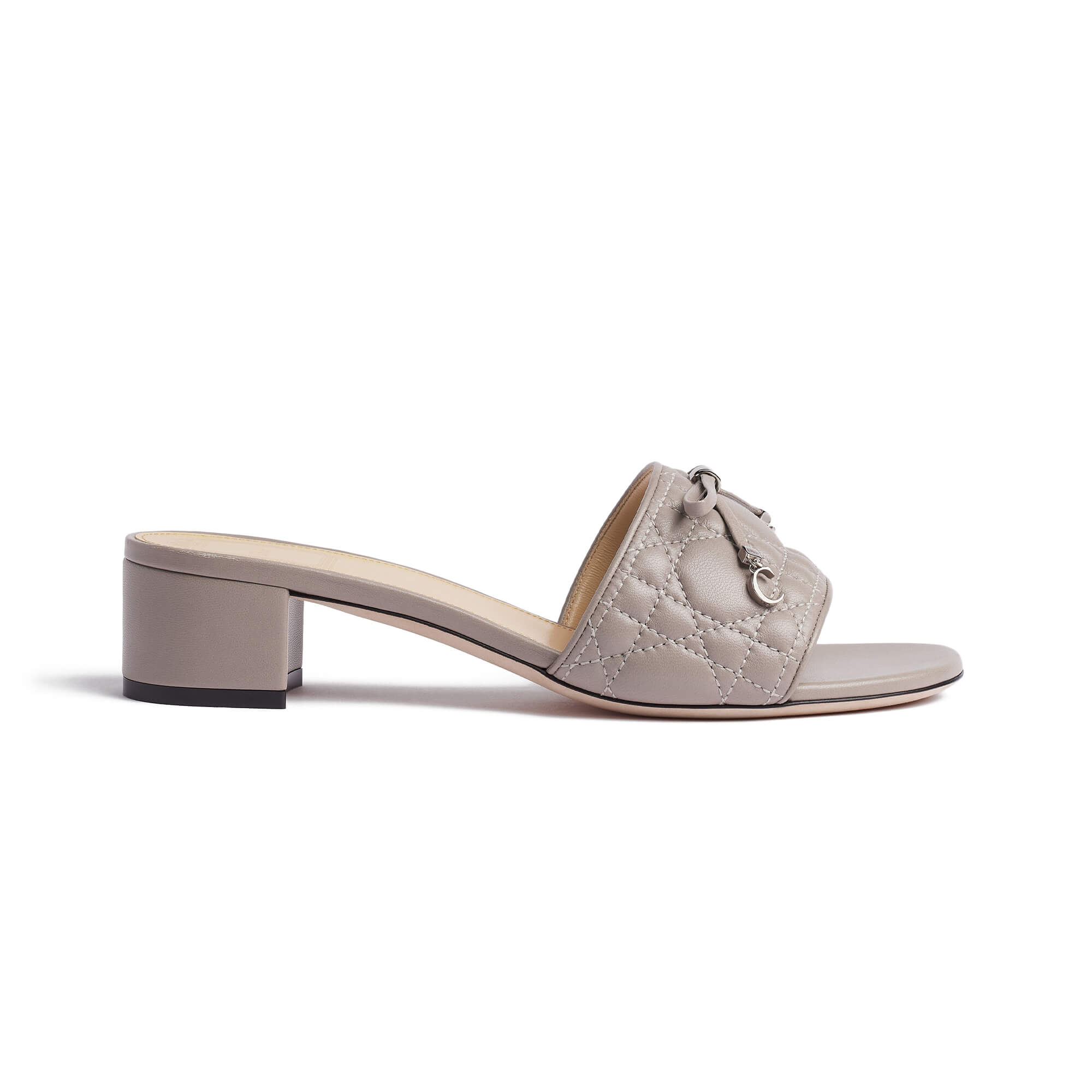 כפכפי עקב מעור lambskin בצבע אפור עם תיפורים בדוגמת Cannage