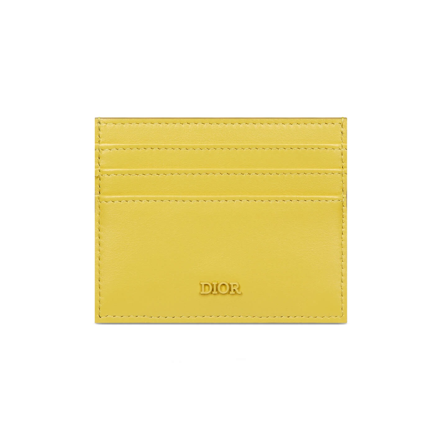 ארנק כרטסים מאריג Dior Oblique בצבע חום בשילוב עור calfskin חלק בצבע בז׳ וצהוב