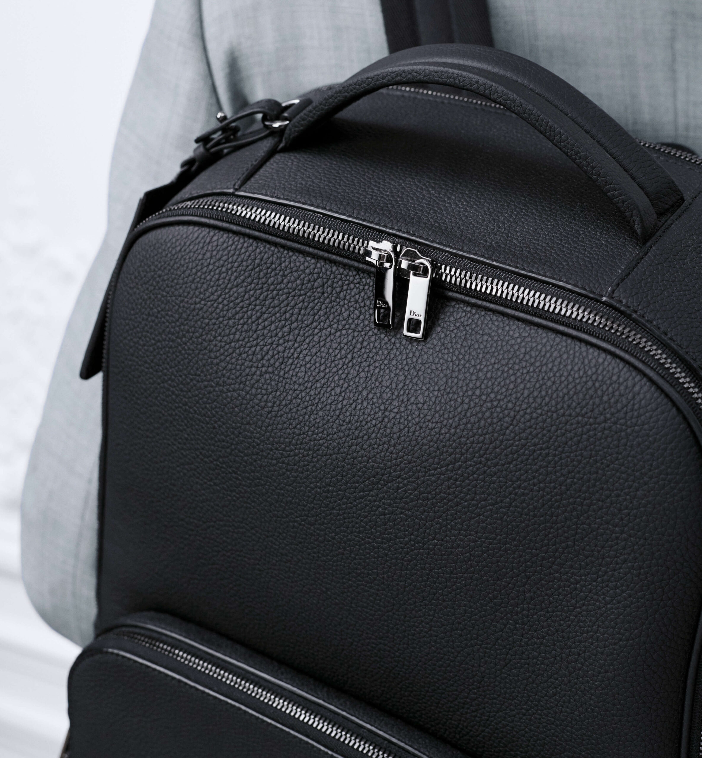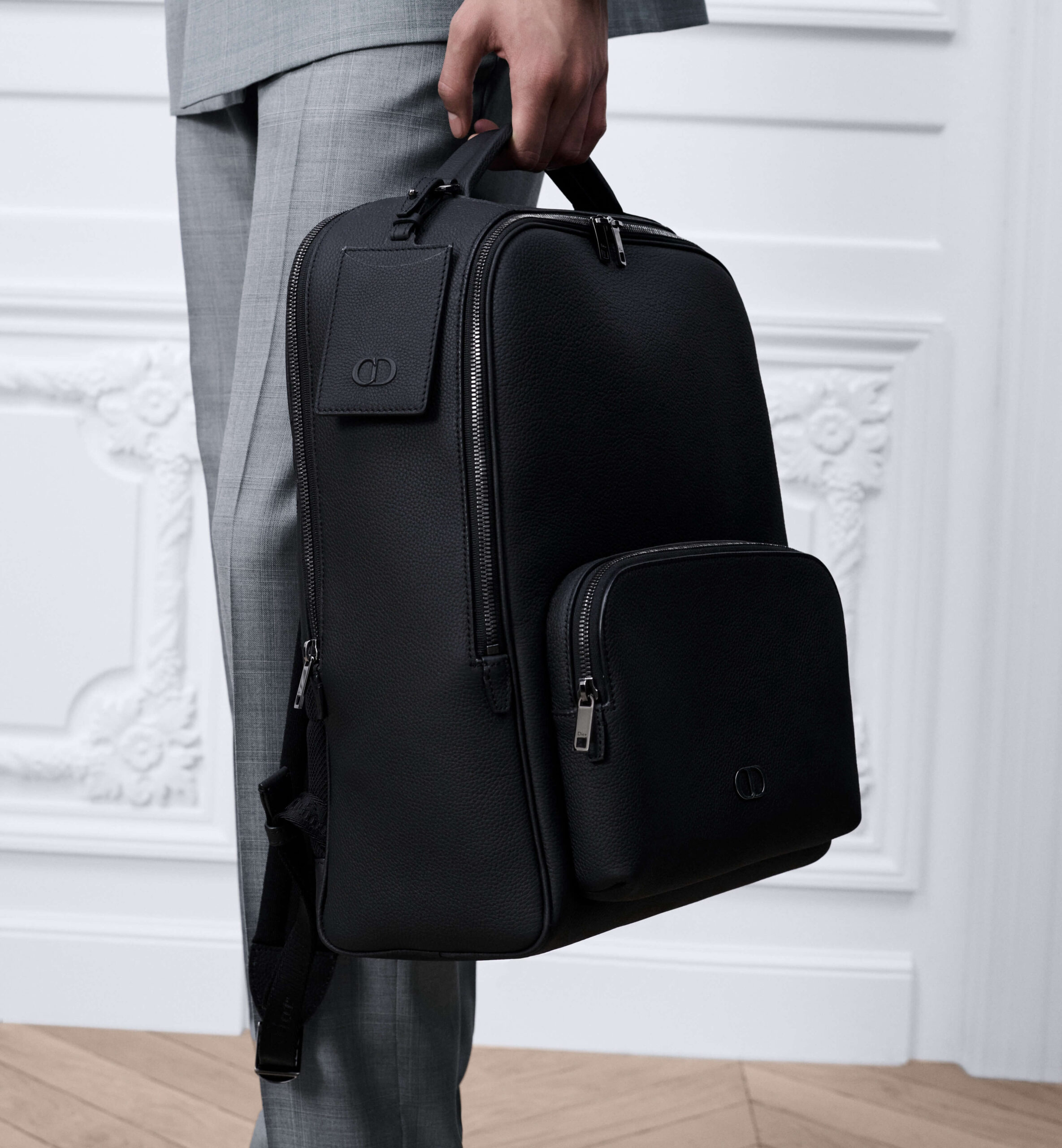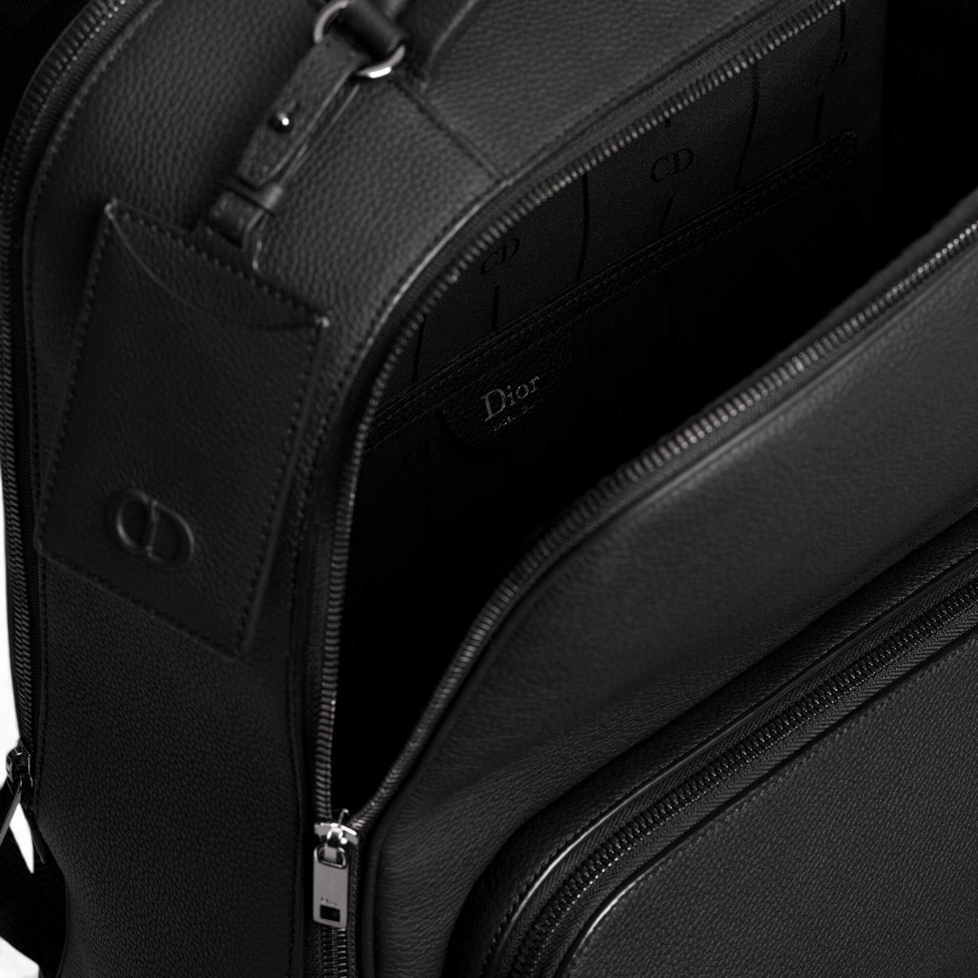 תיק גב מעור calfskin מגורען בצבע שחור במראה מט