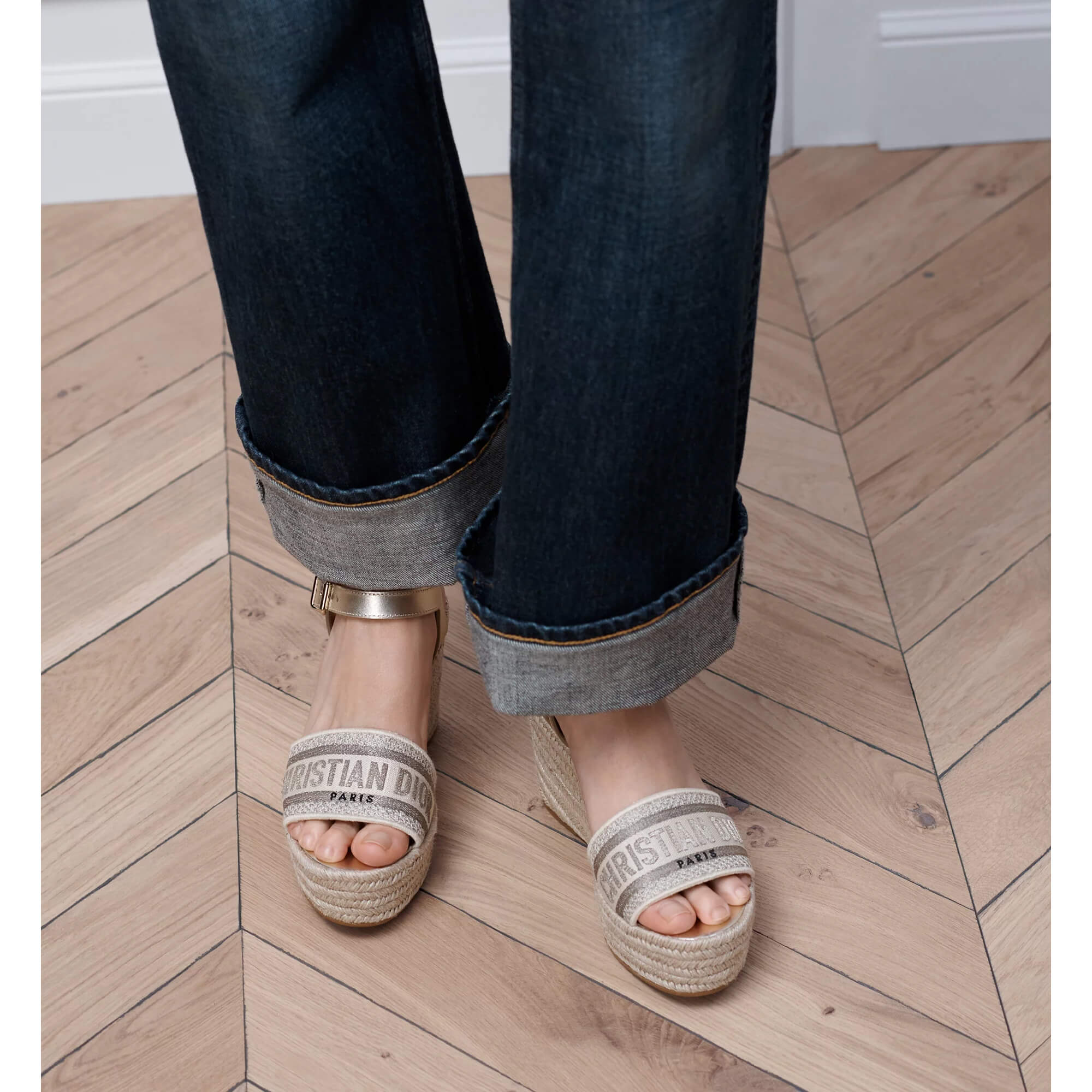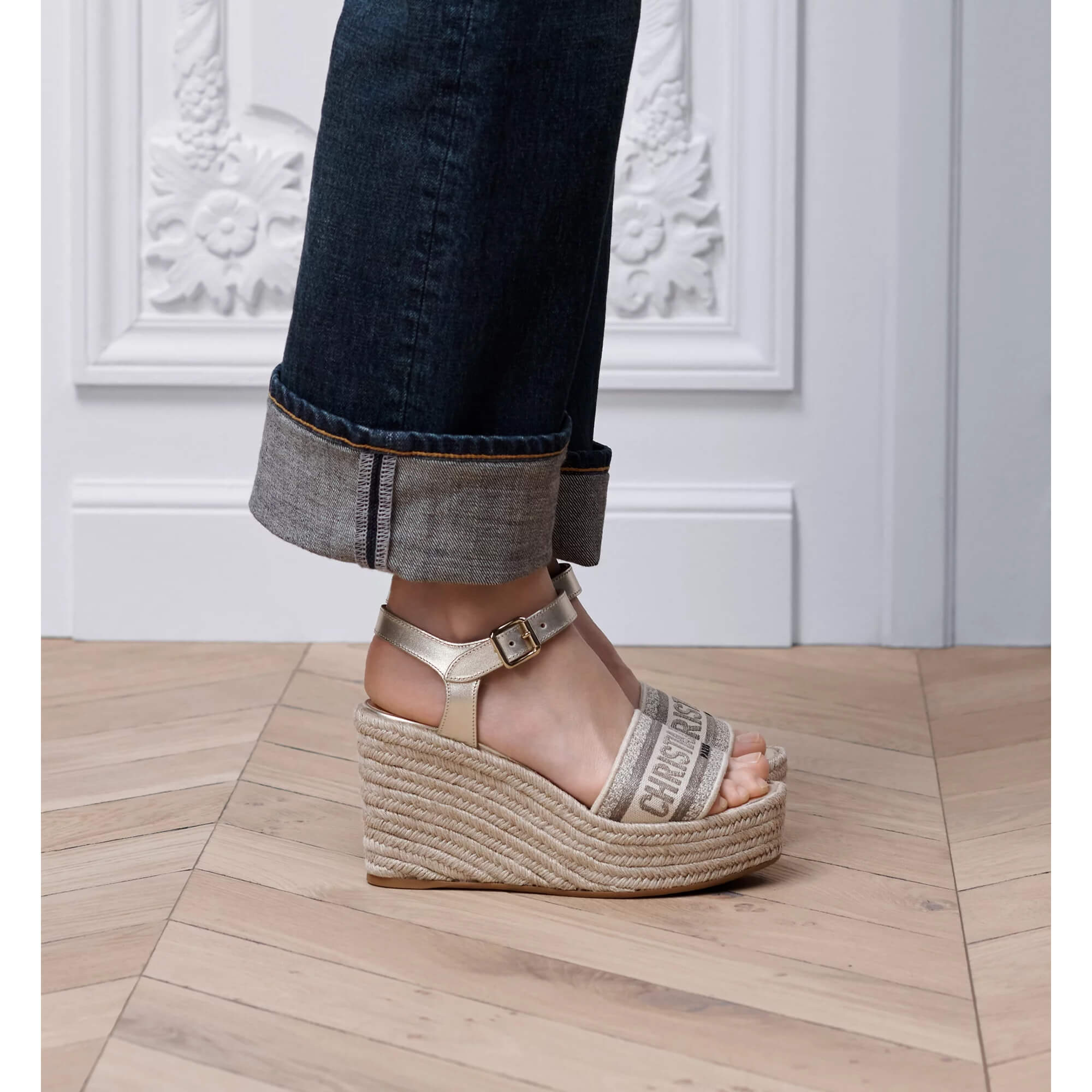סנדלים עם רקמת זהב Christian Dior Paris בחלק העליון
