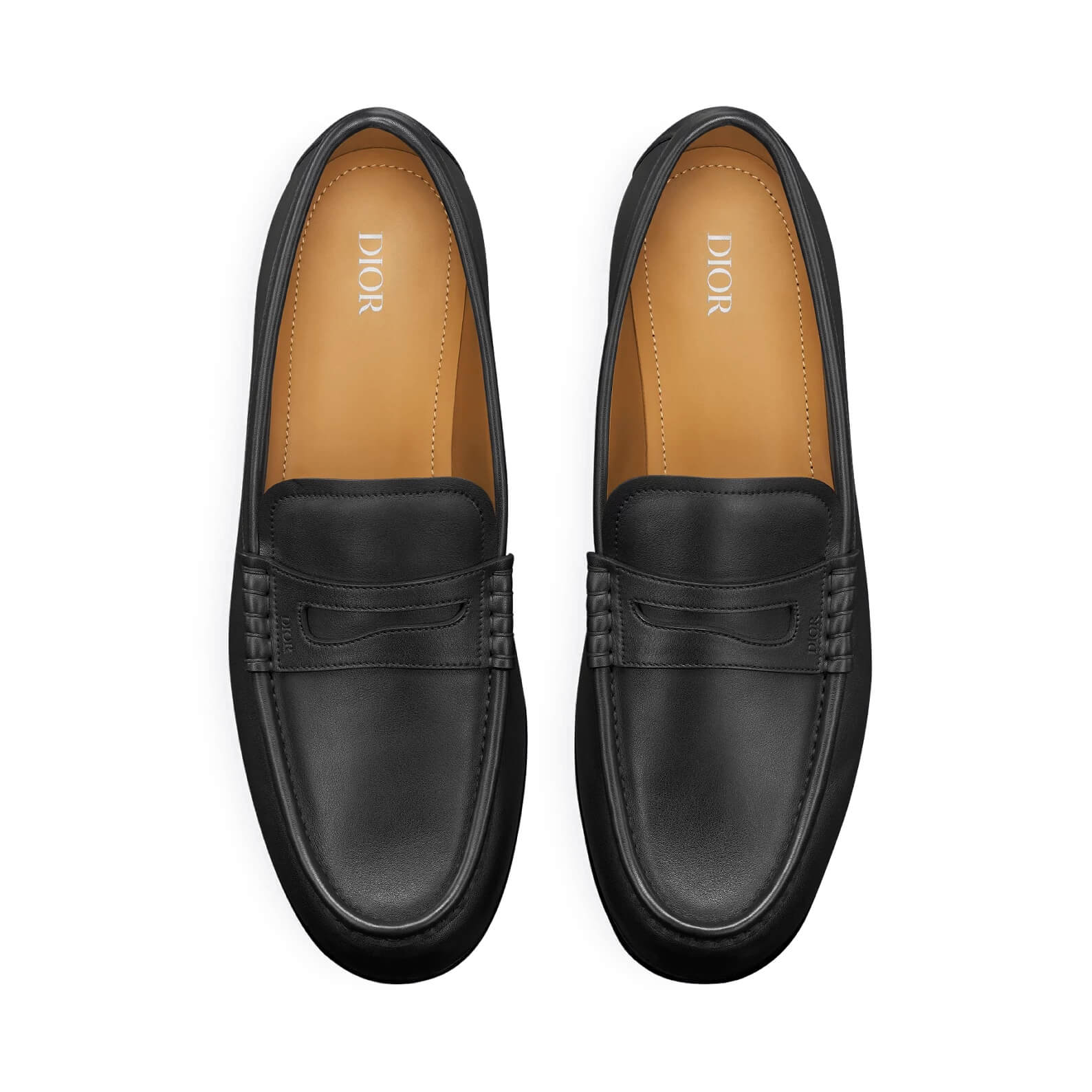 נעלי מוקסין מעור calfskin חלק בצבע שחור