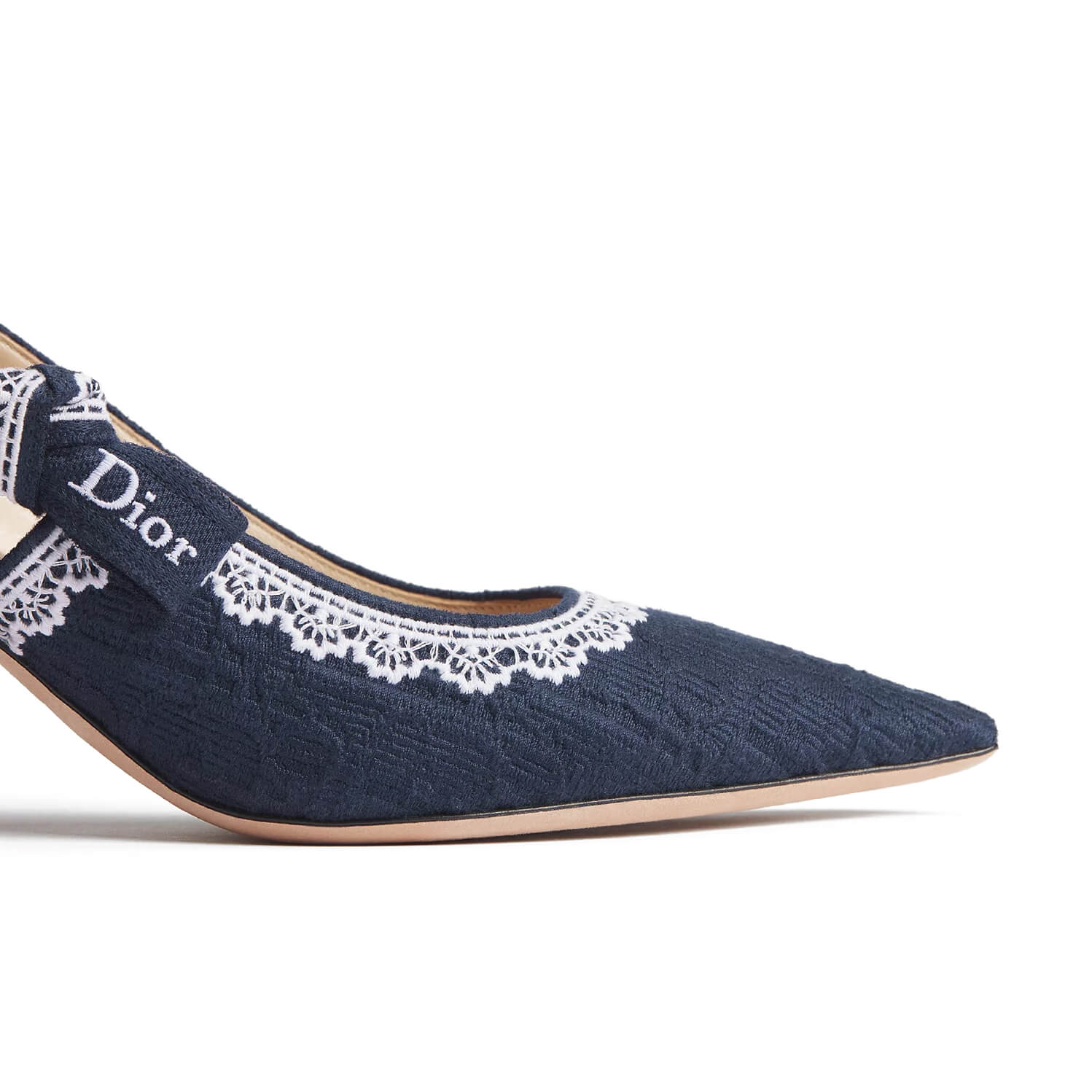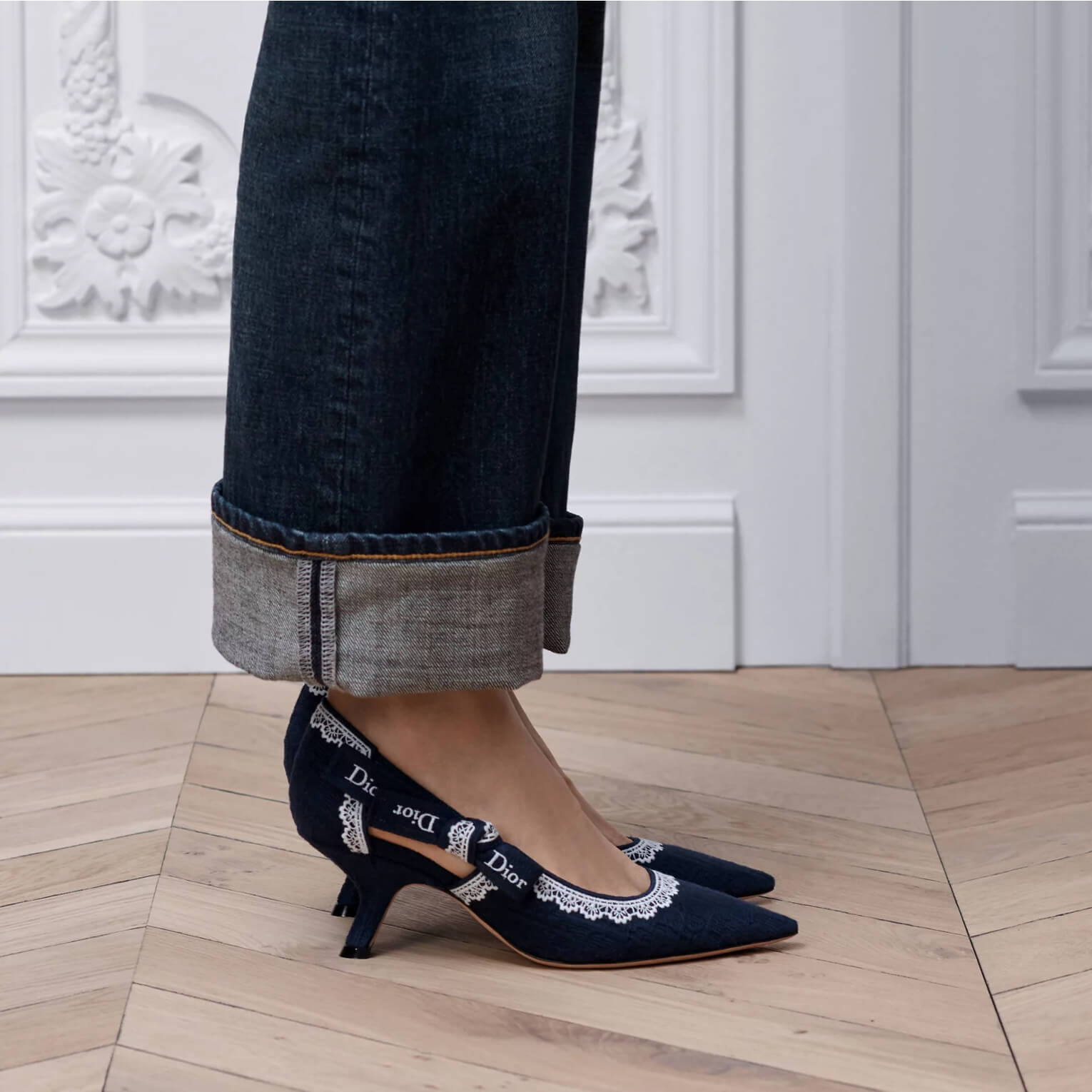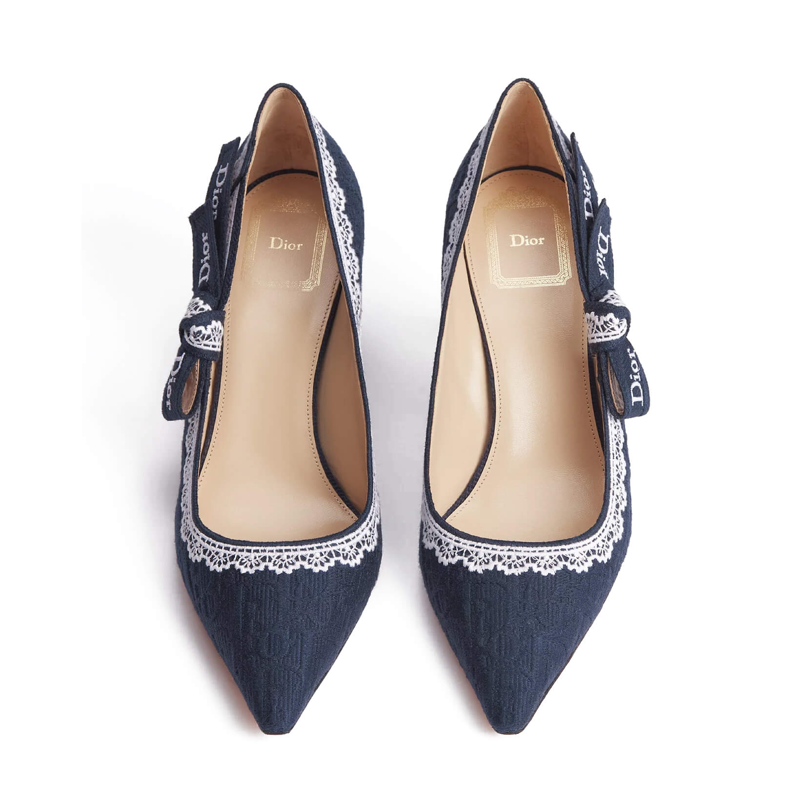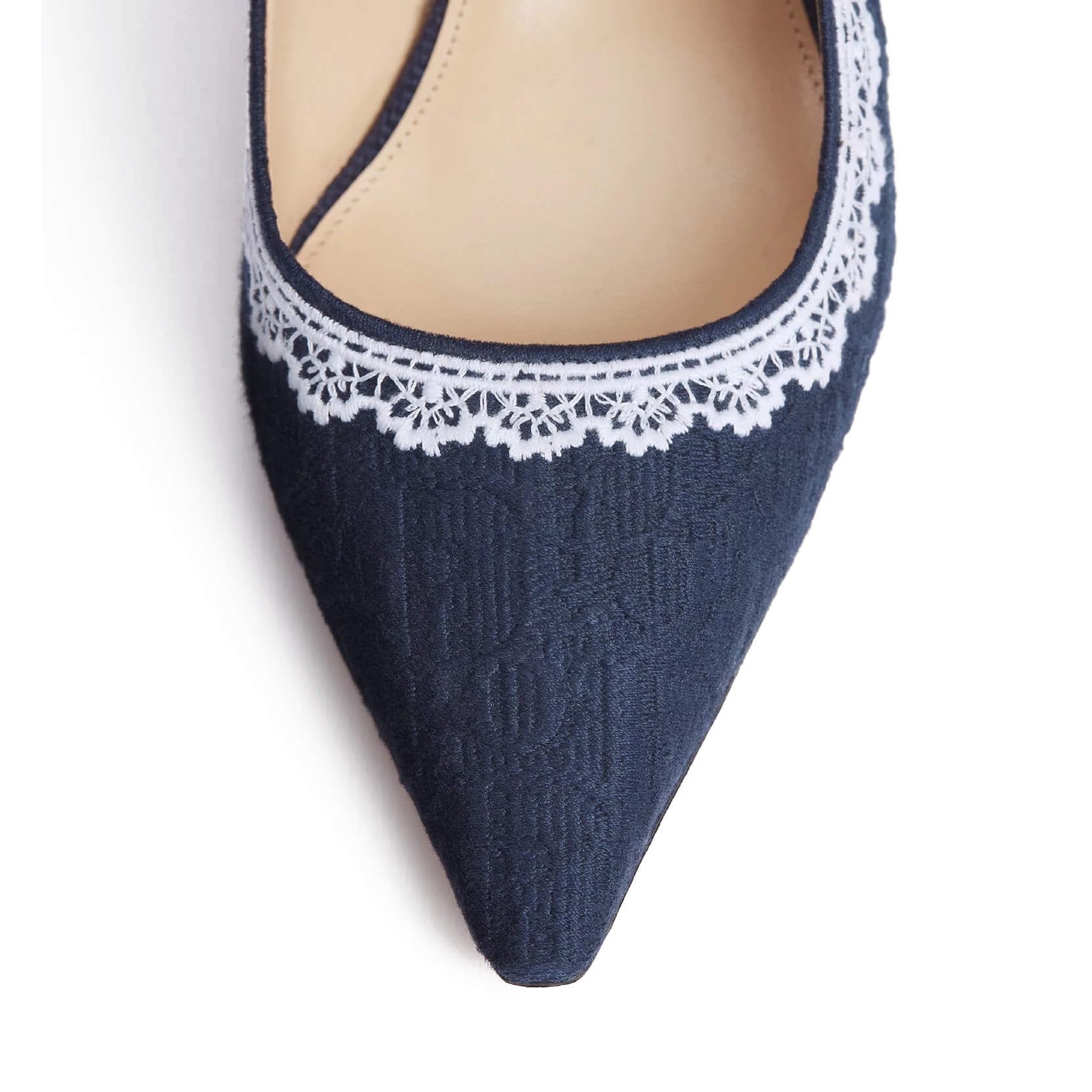 נעלי עקב בצבע כחול כהה בשילוב תחרה לבנה