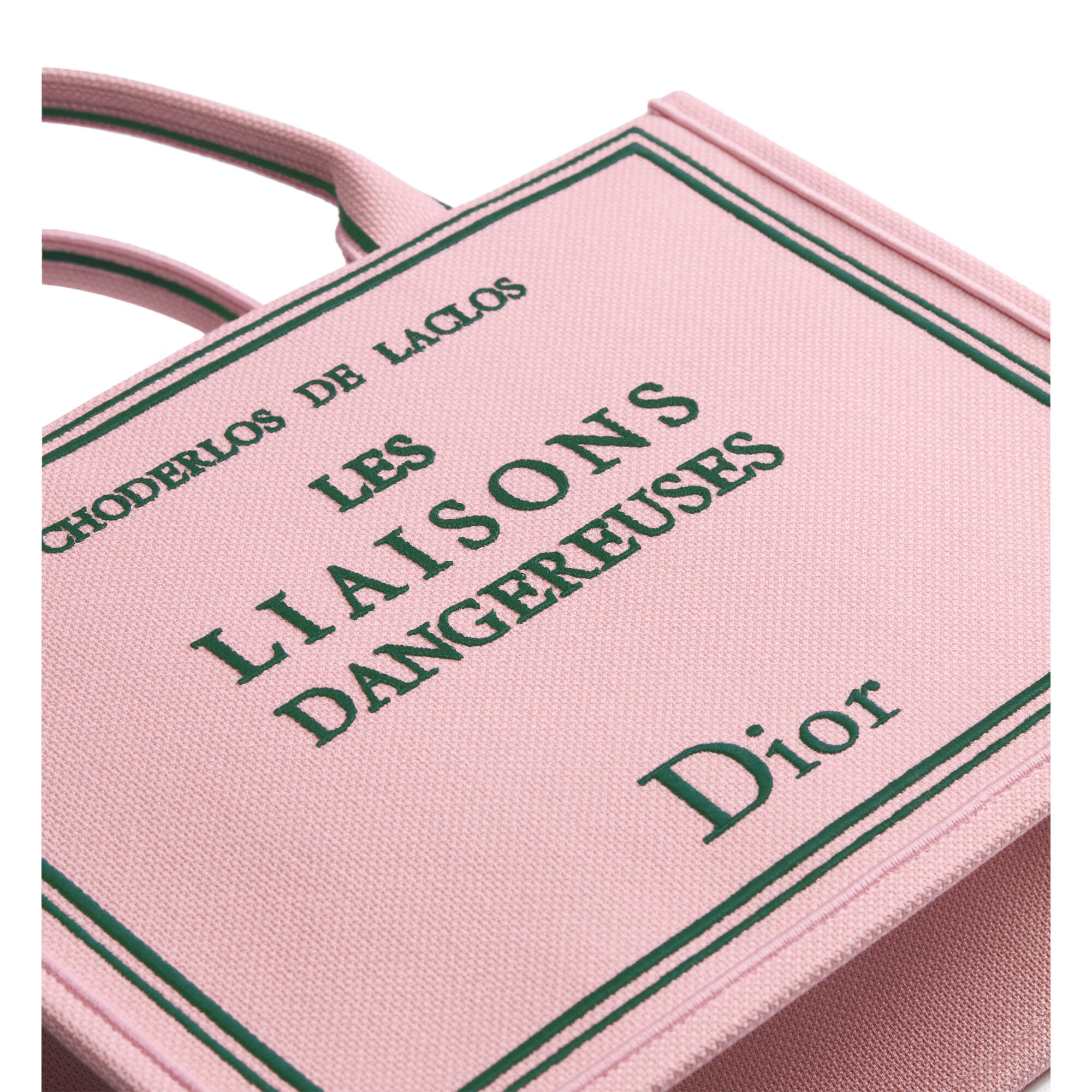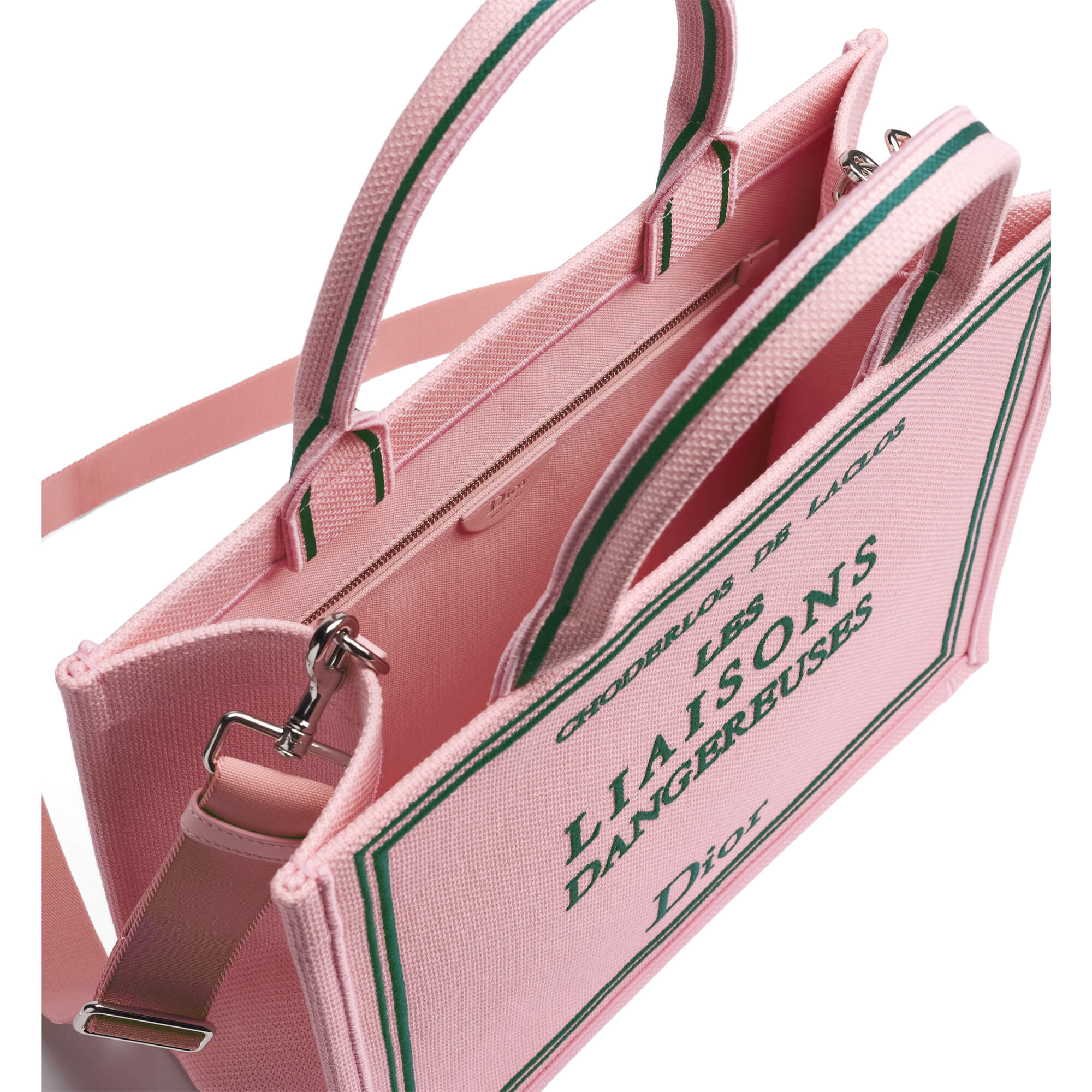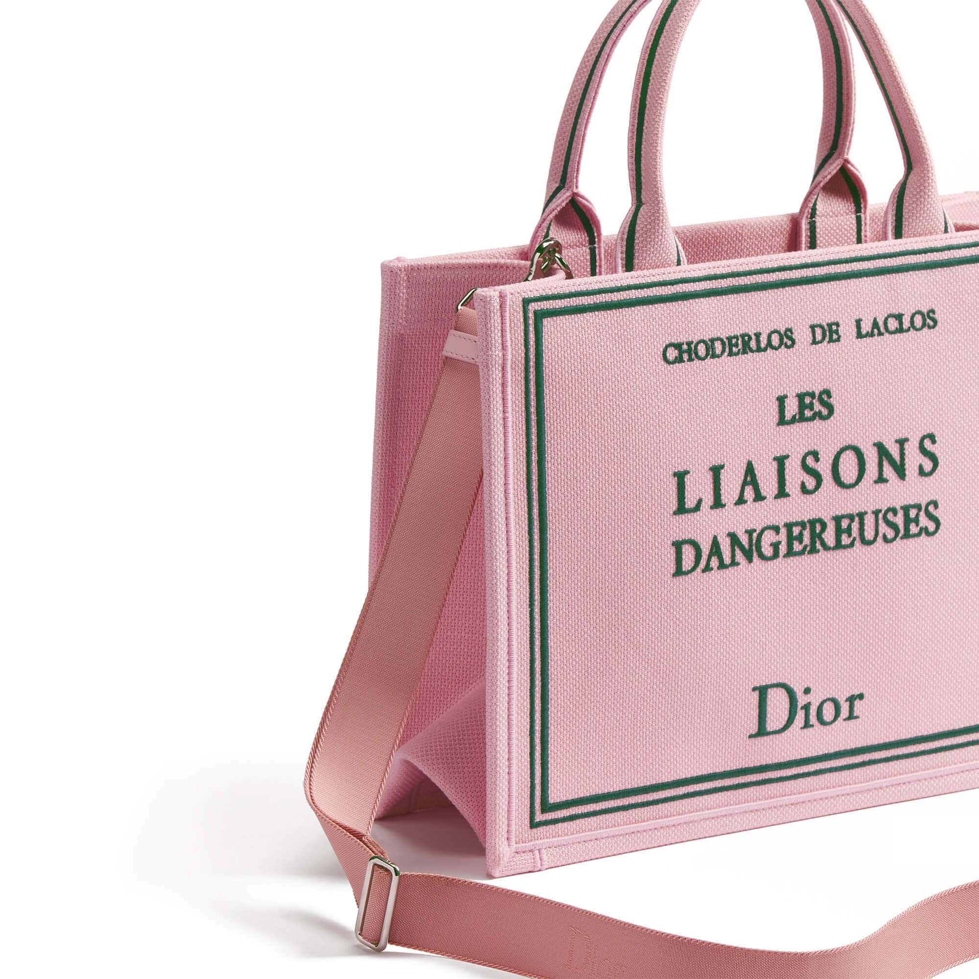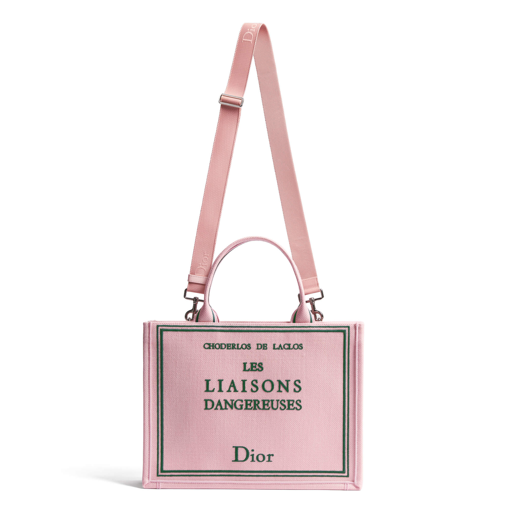 תיק בינוני בצבע ורוד עם רקמה ירוקה בהשראת כריכת ספר