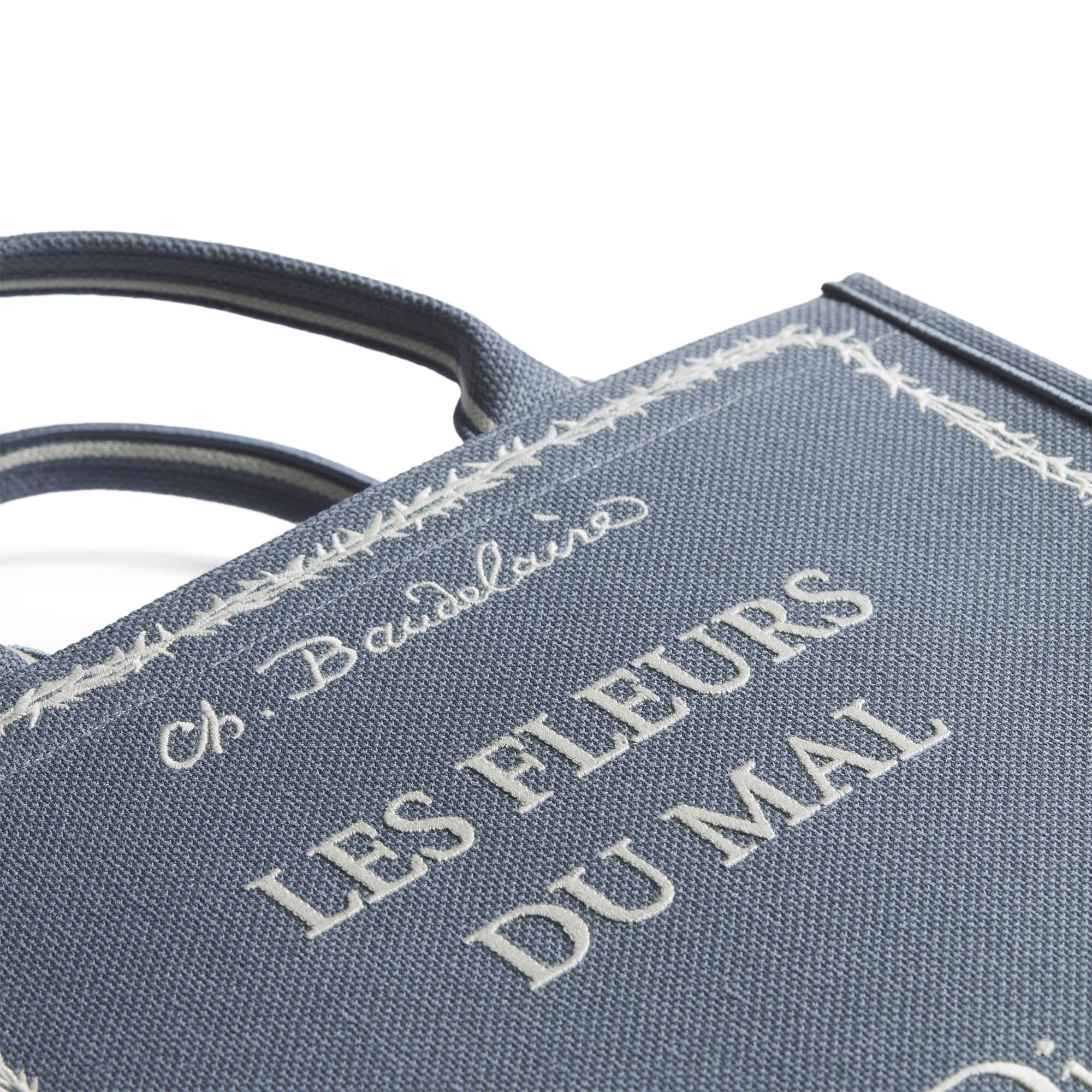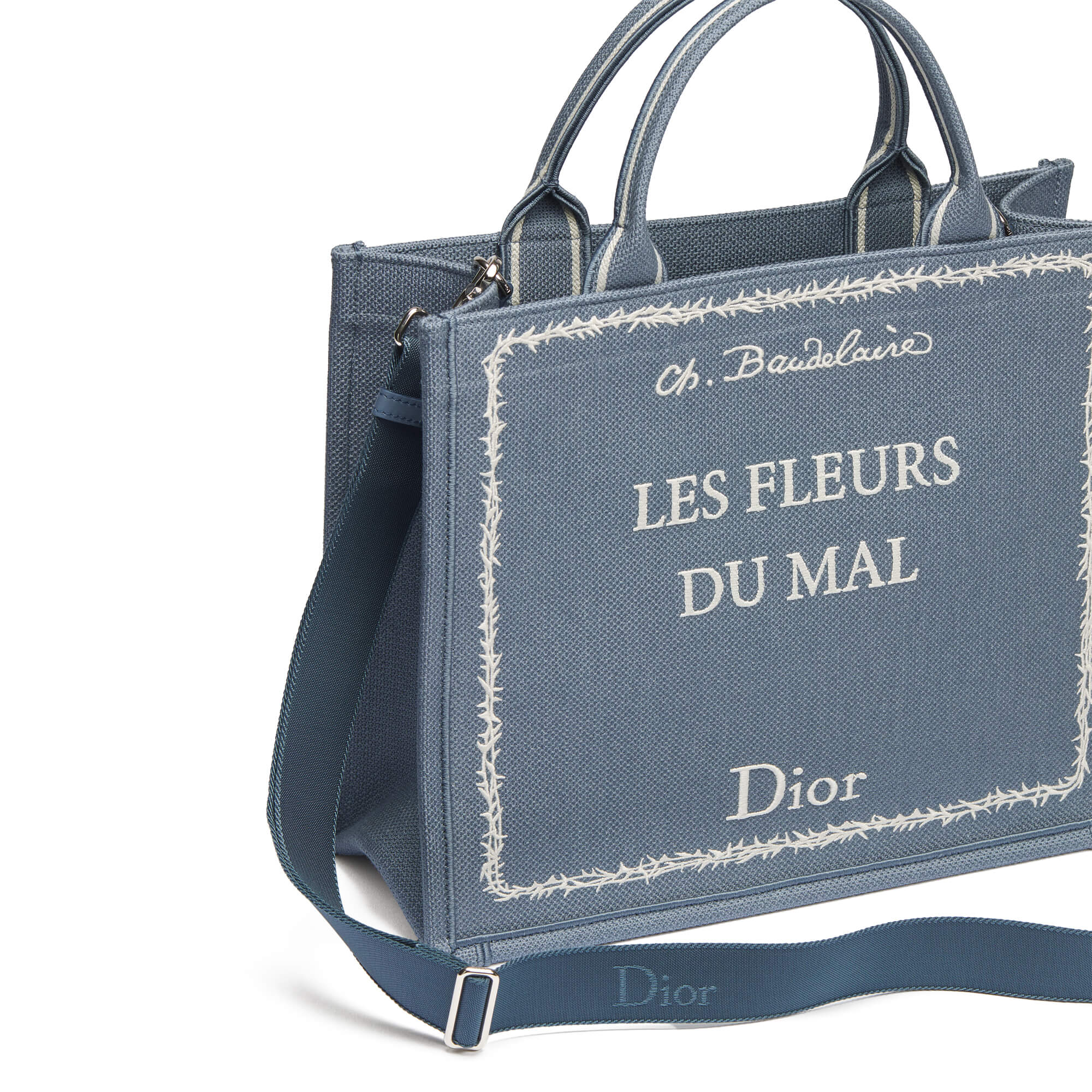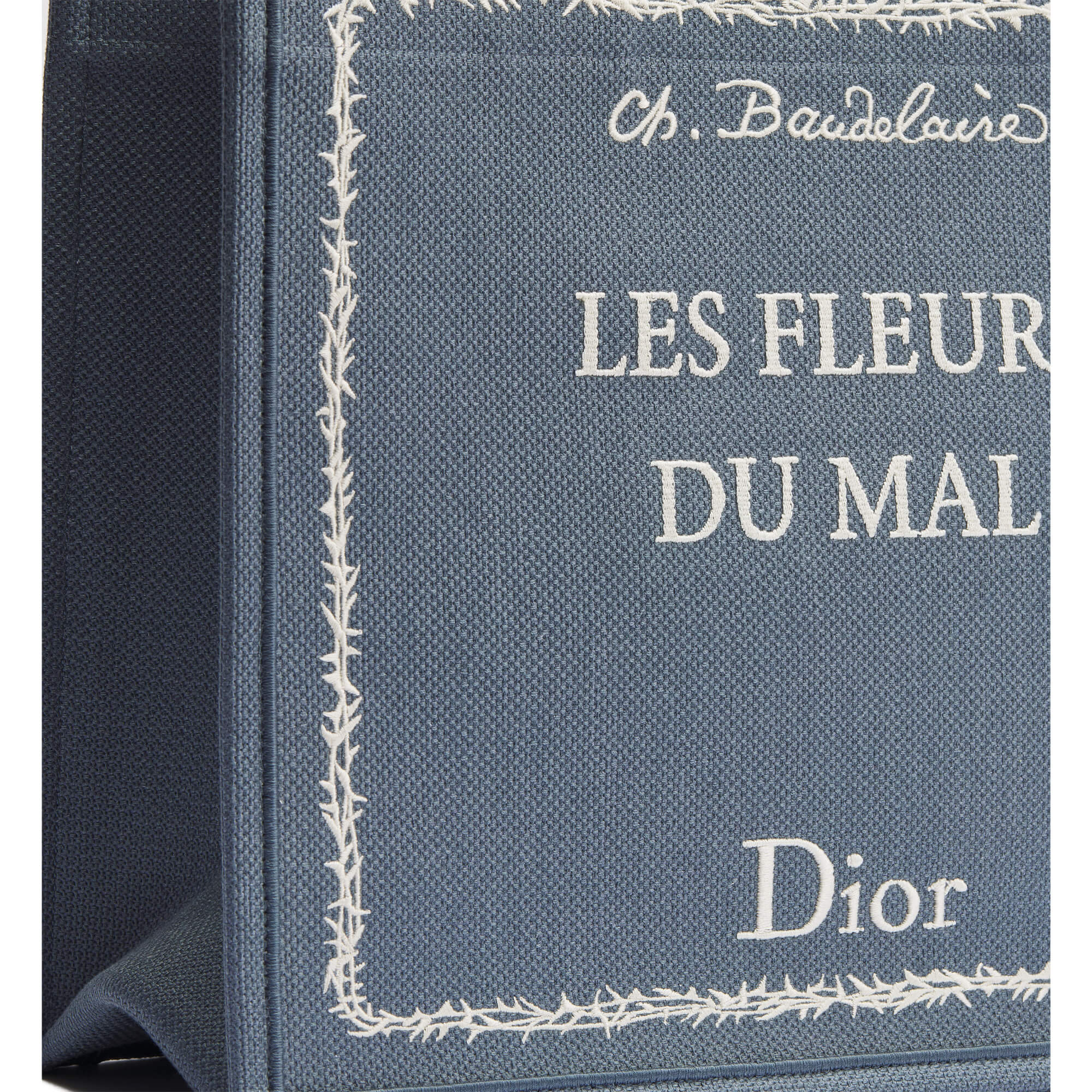 תיר בינוני בצבע כחול עם רקמה לבנה בהשראת כריכת ספר