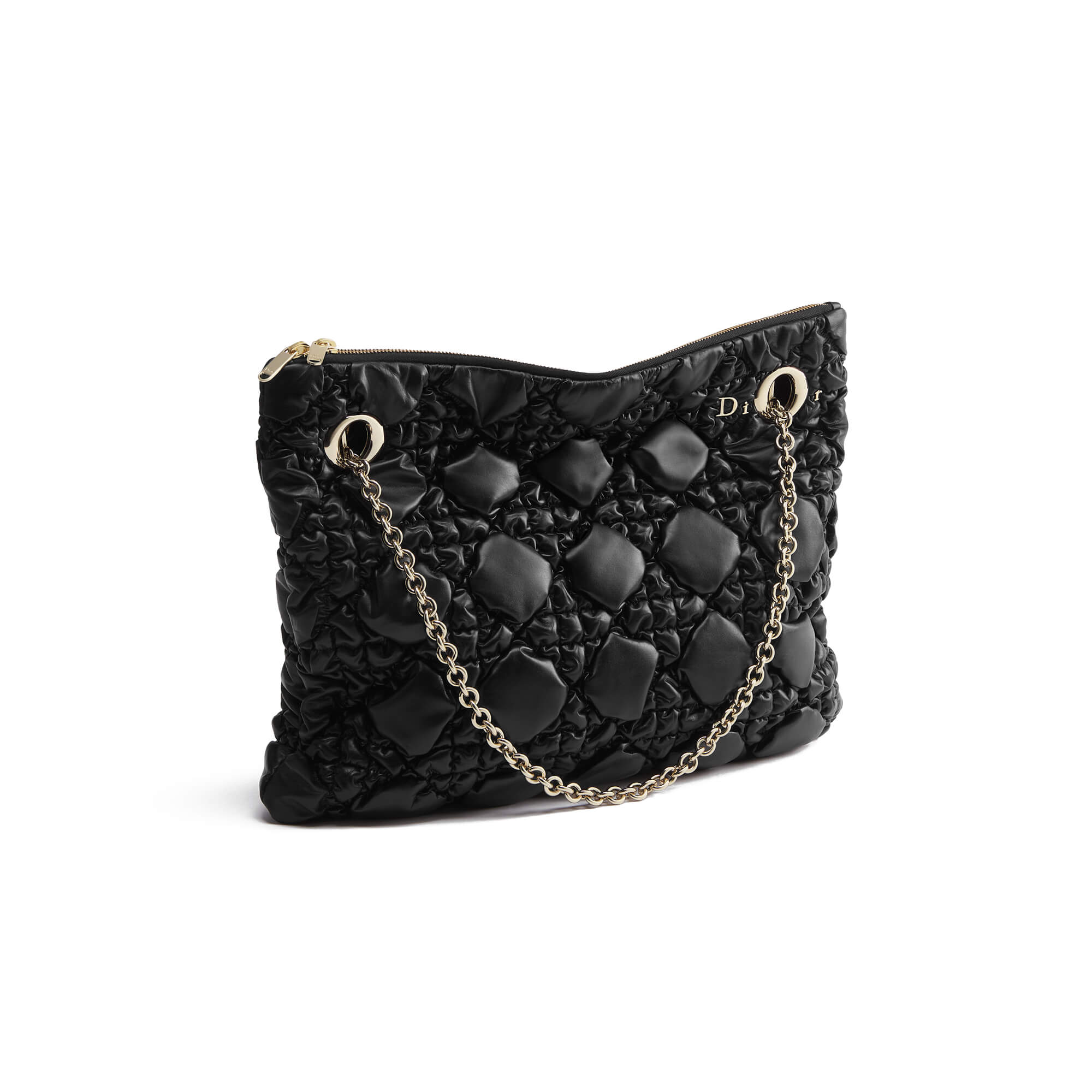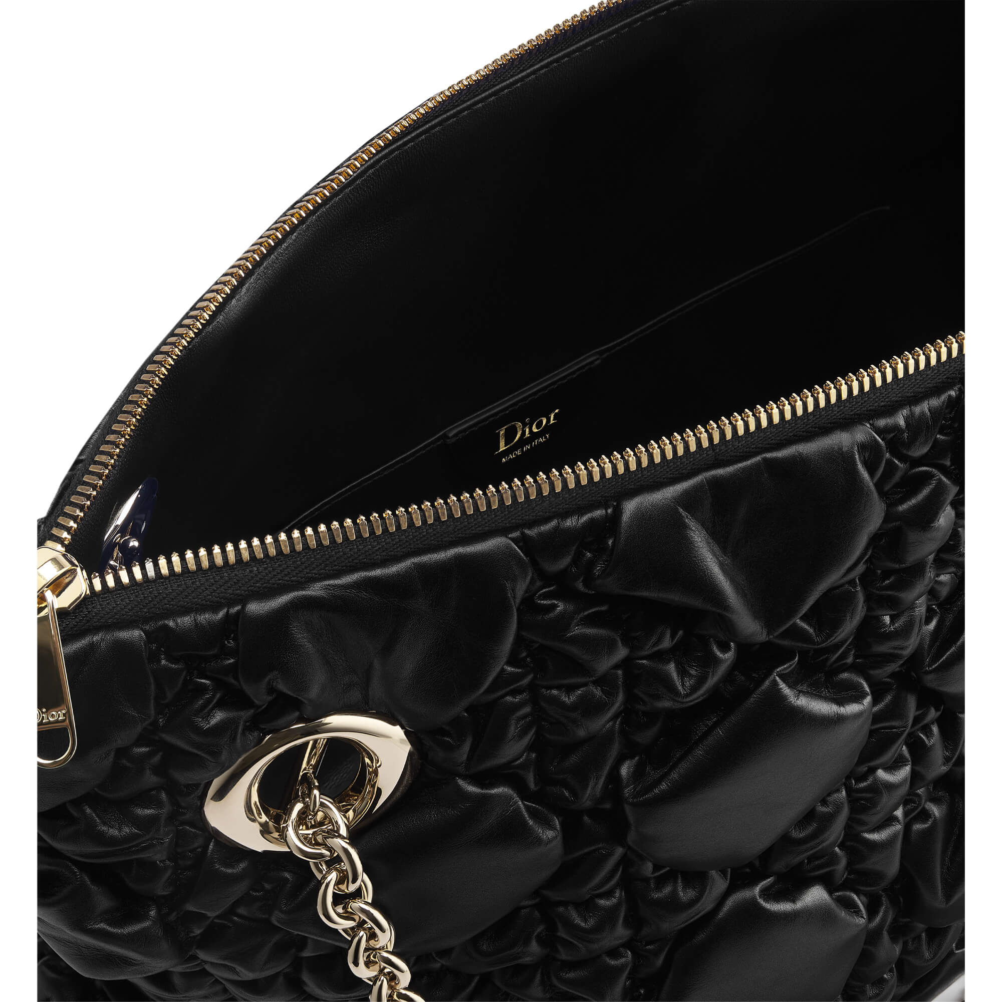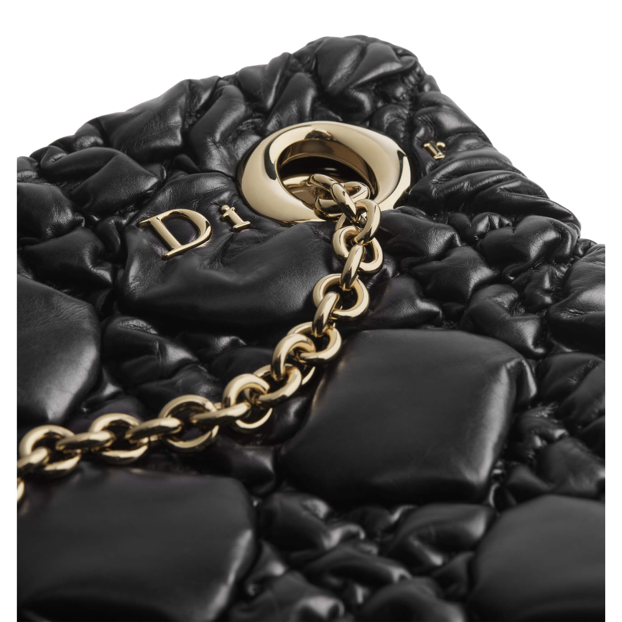 תיק בינוני מעור שחור עם תיפורי Macrocannage במראה מנופח