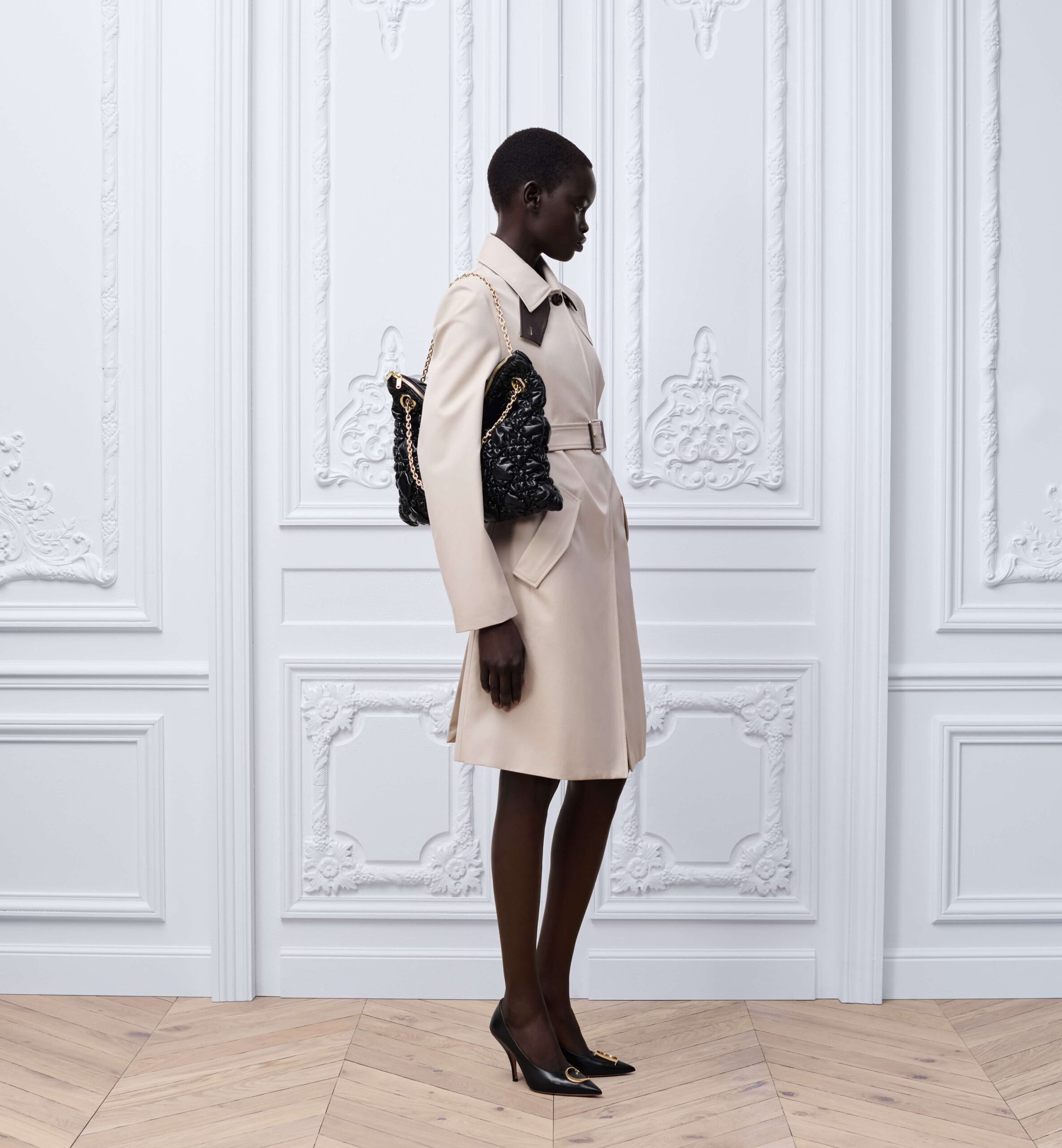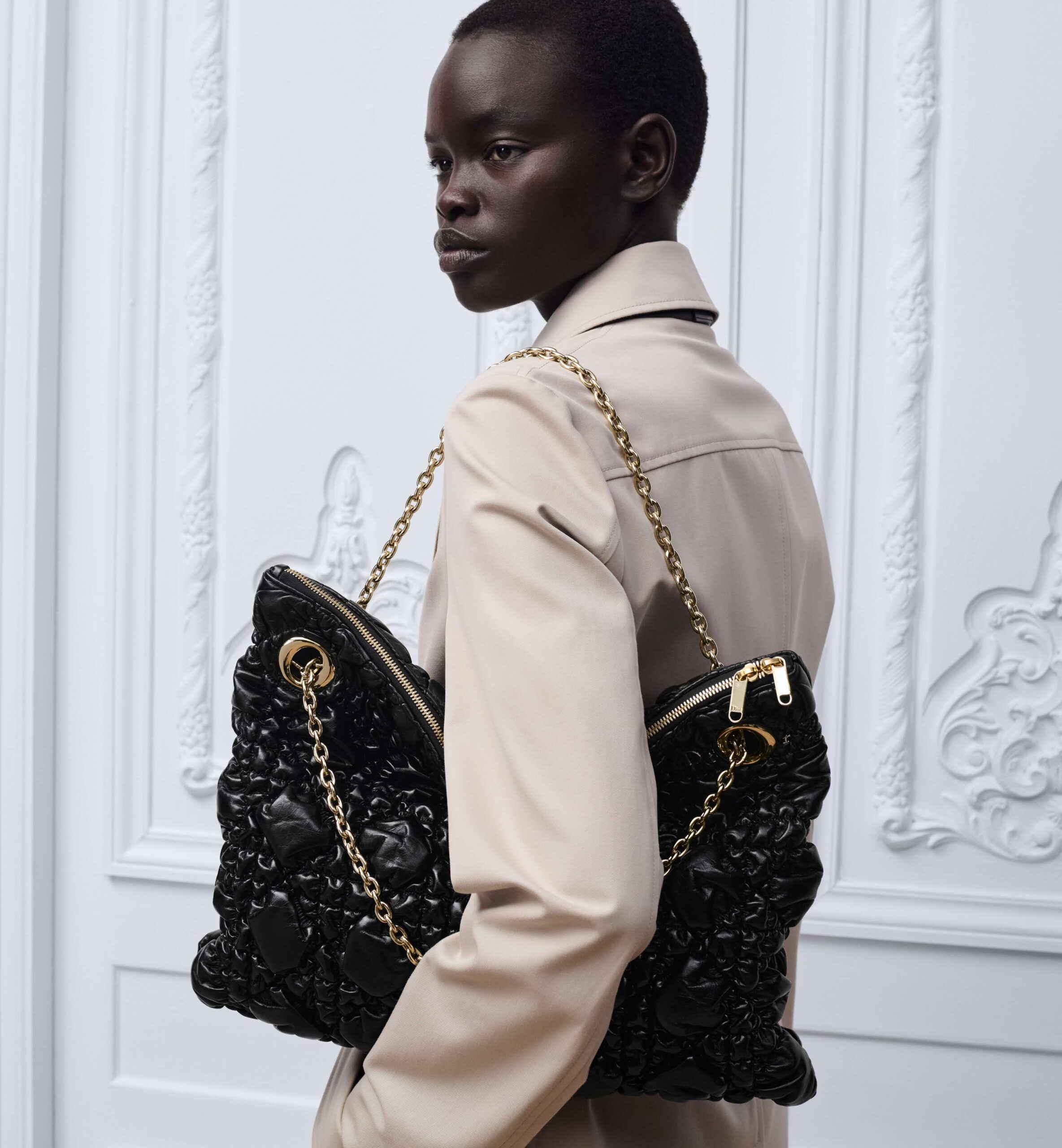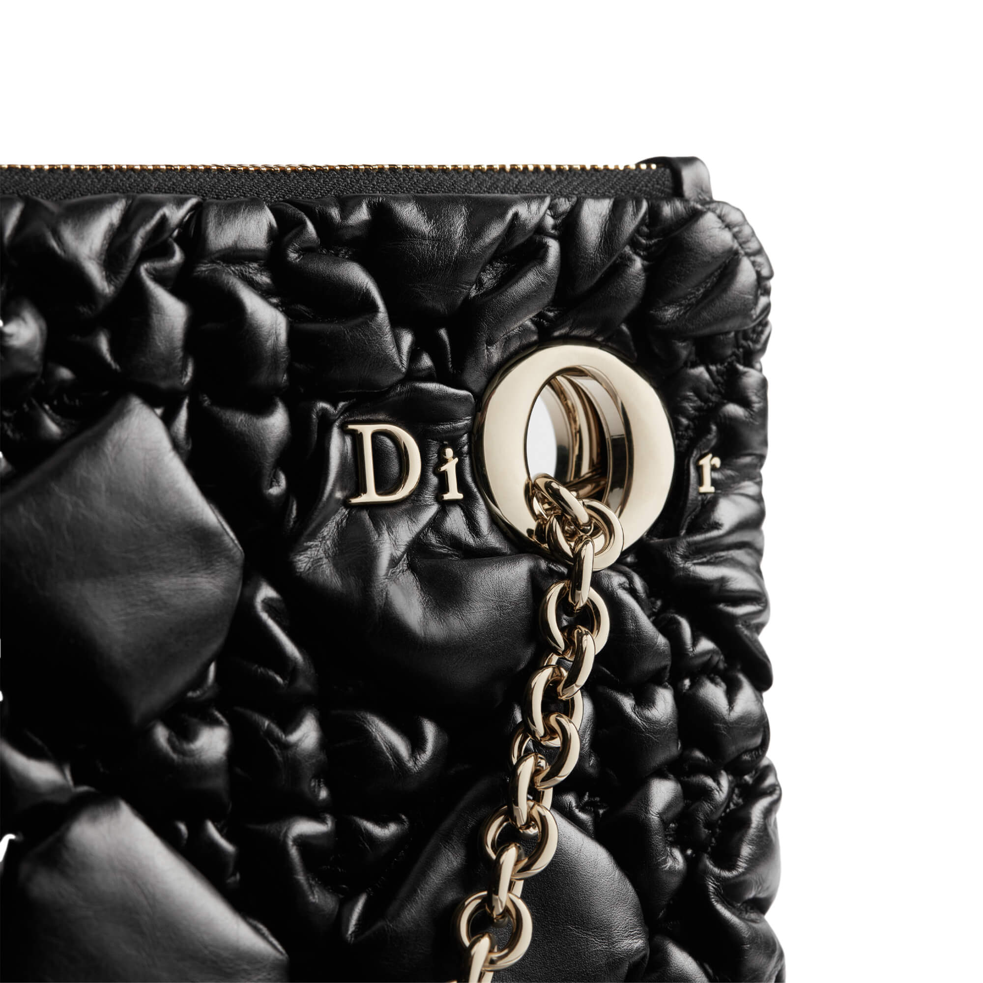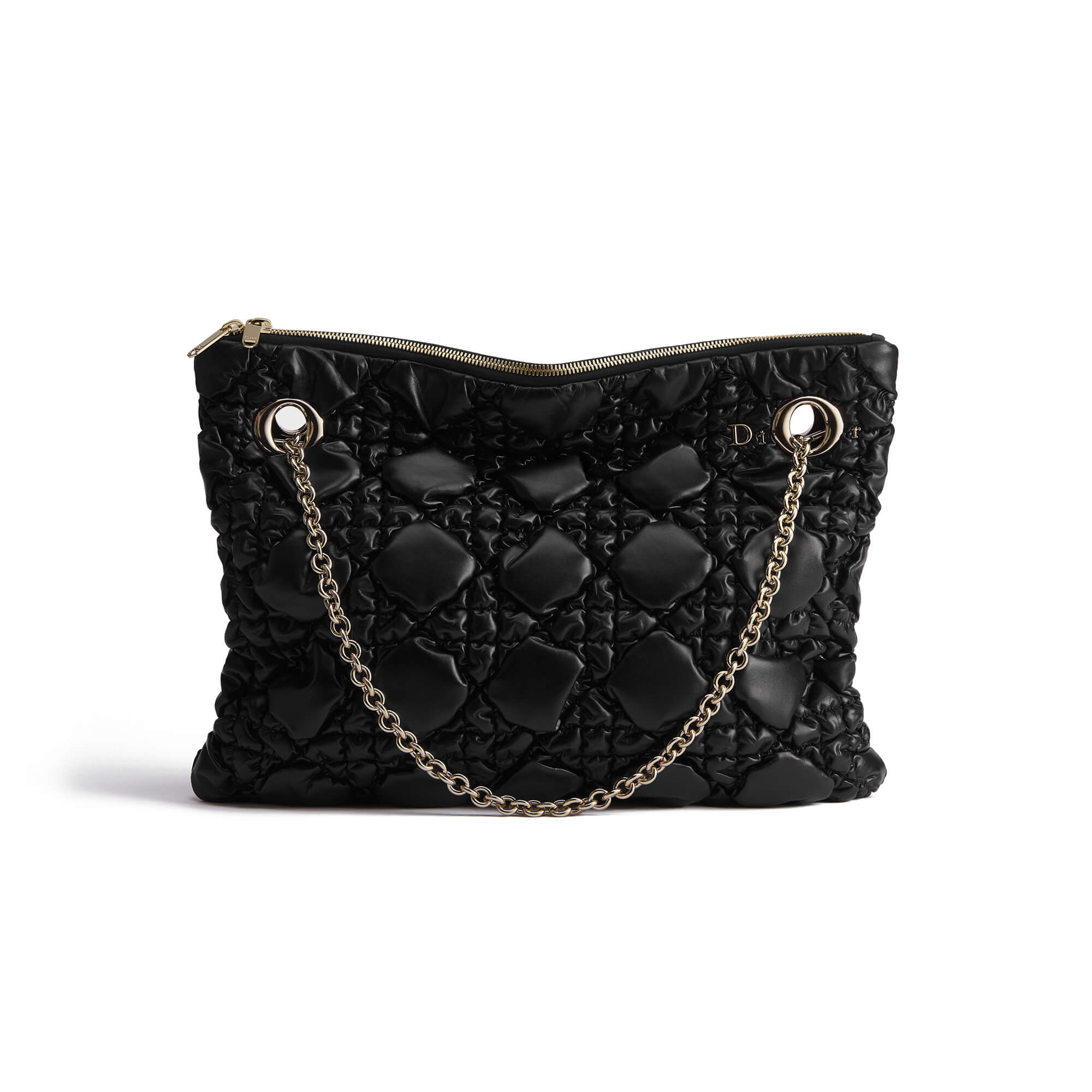 תיק בינוני מעור שחור עם תיפורי Macrocannage במראה מנופח