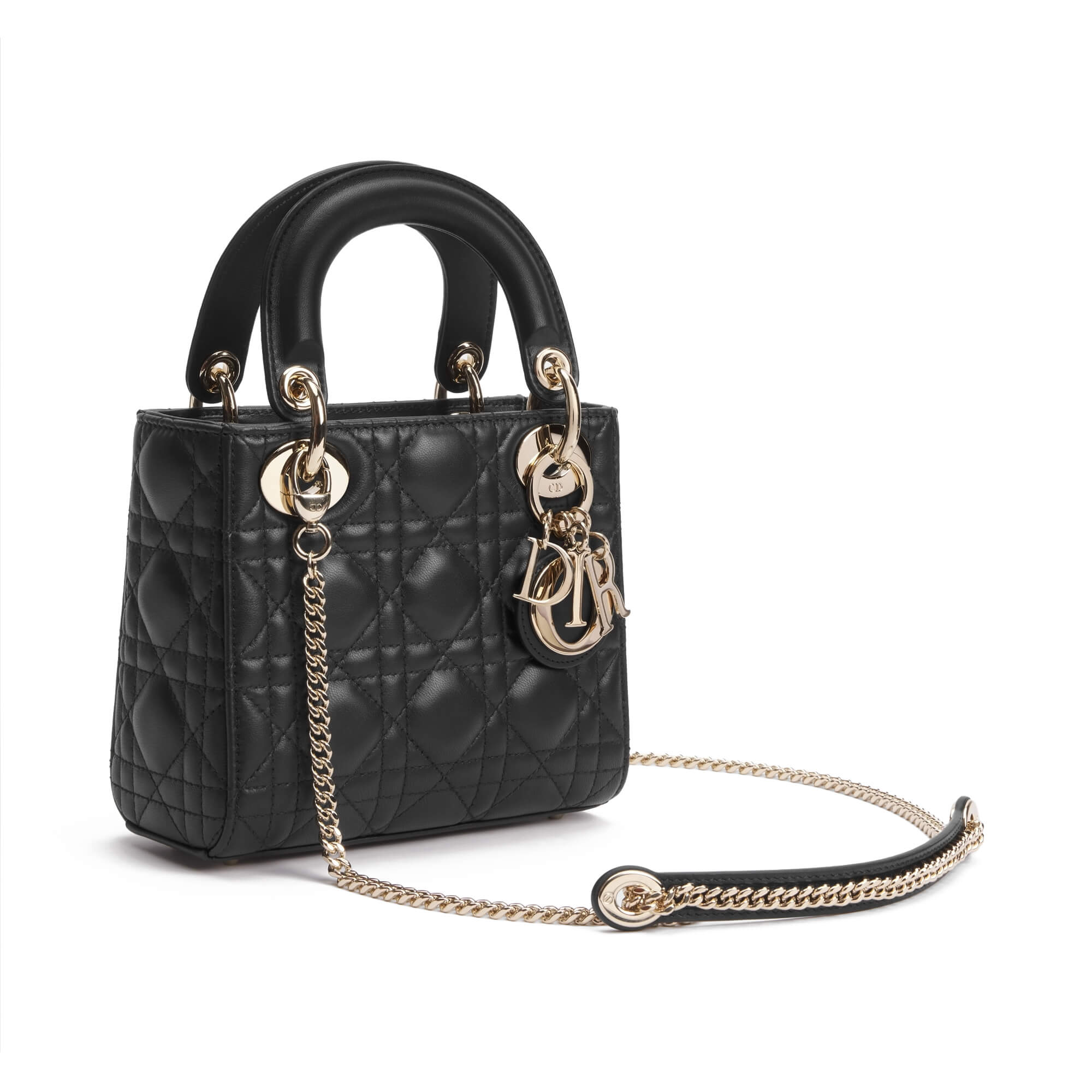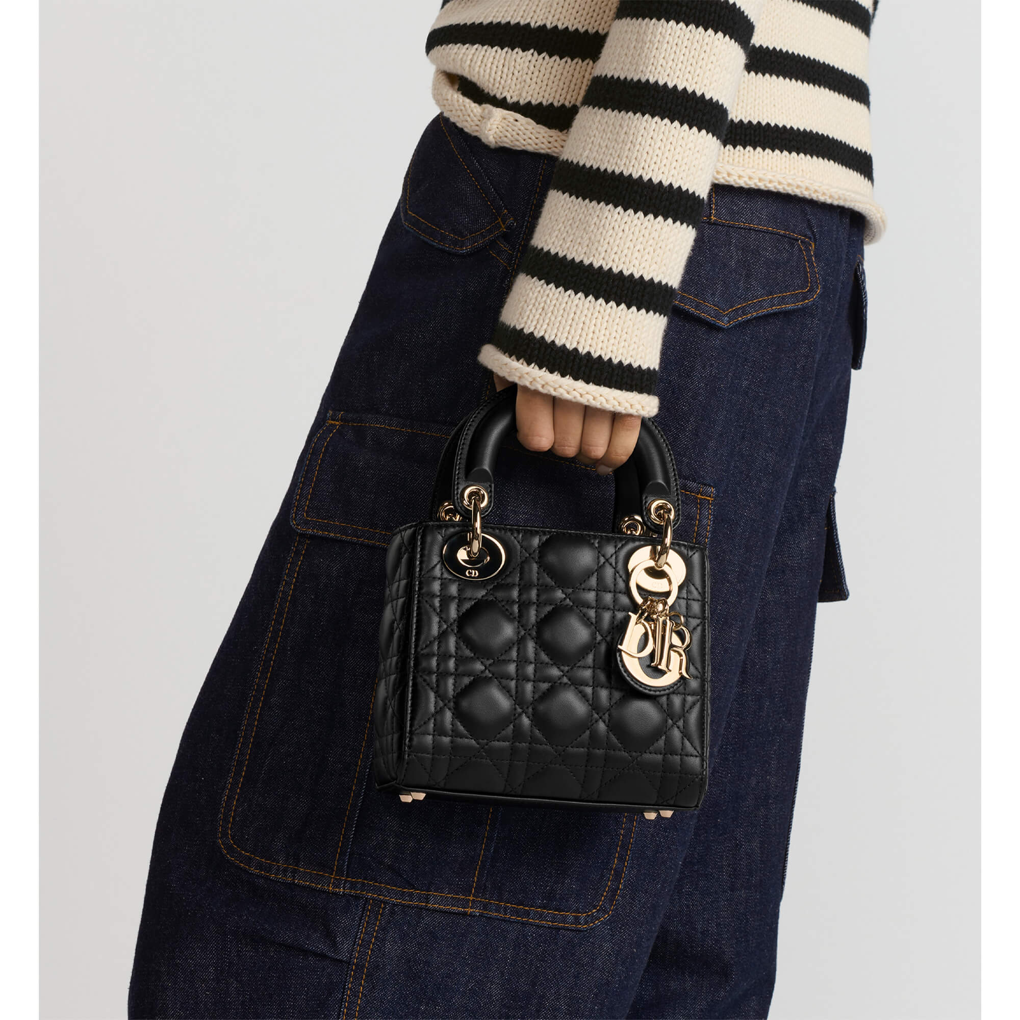 תיק מיני מעור lambskin עם תיפורי Cannage בצבע שחור