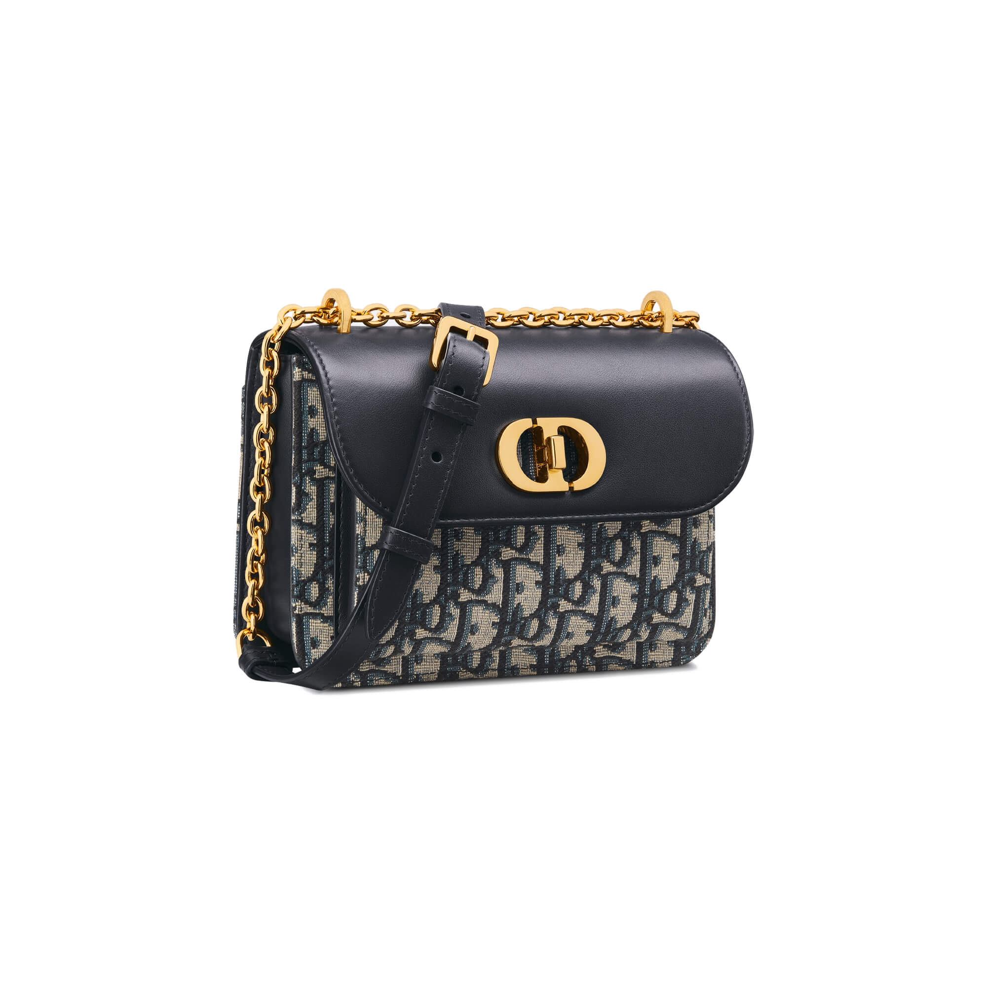 תיק מיני מאריג Dior Oblique Jacquard בצבע כחול בשילוב עור כחול