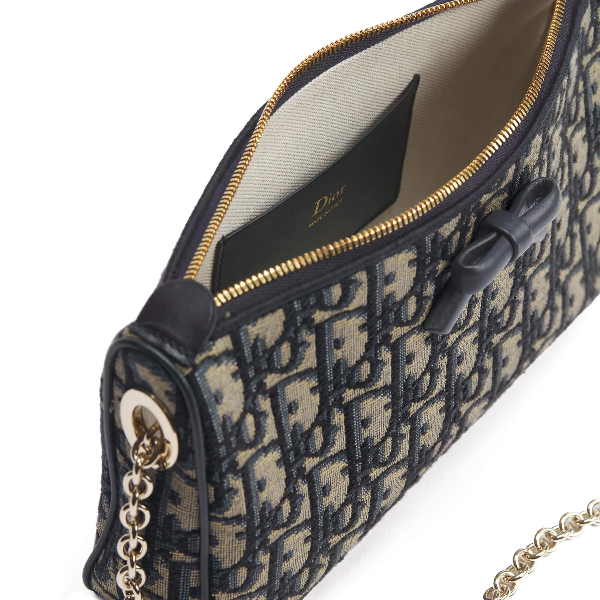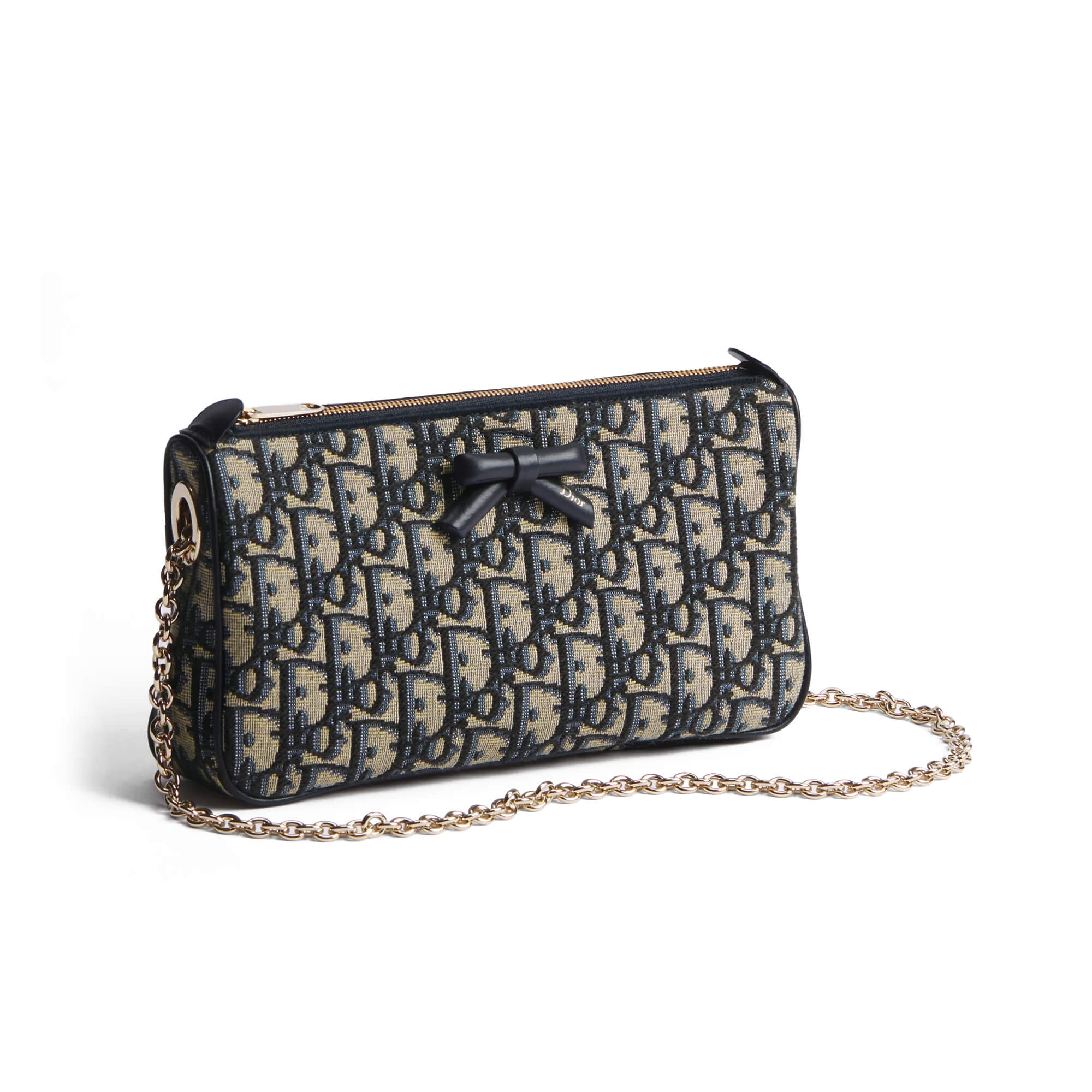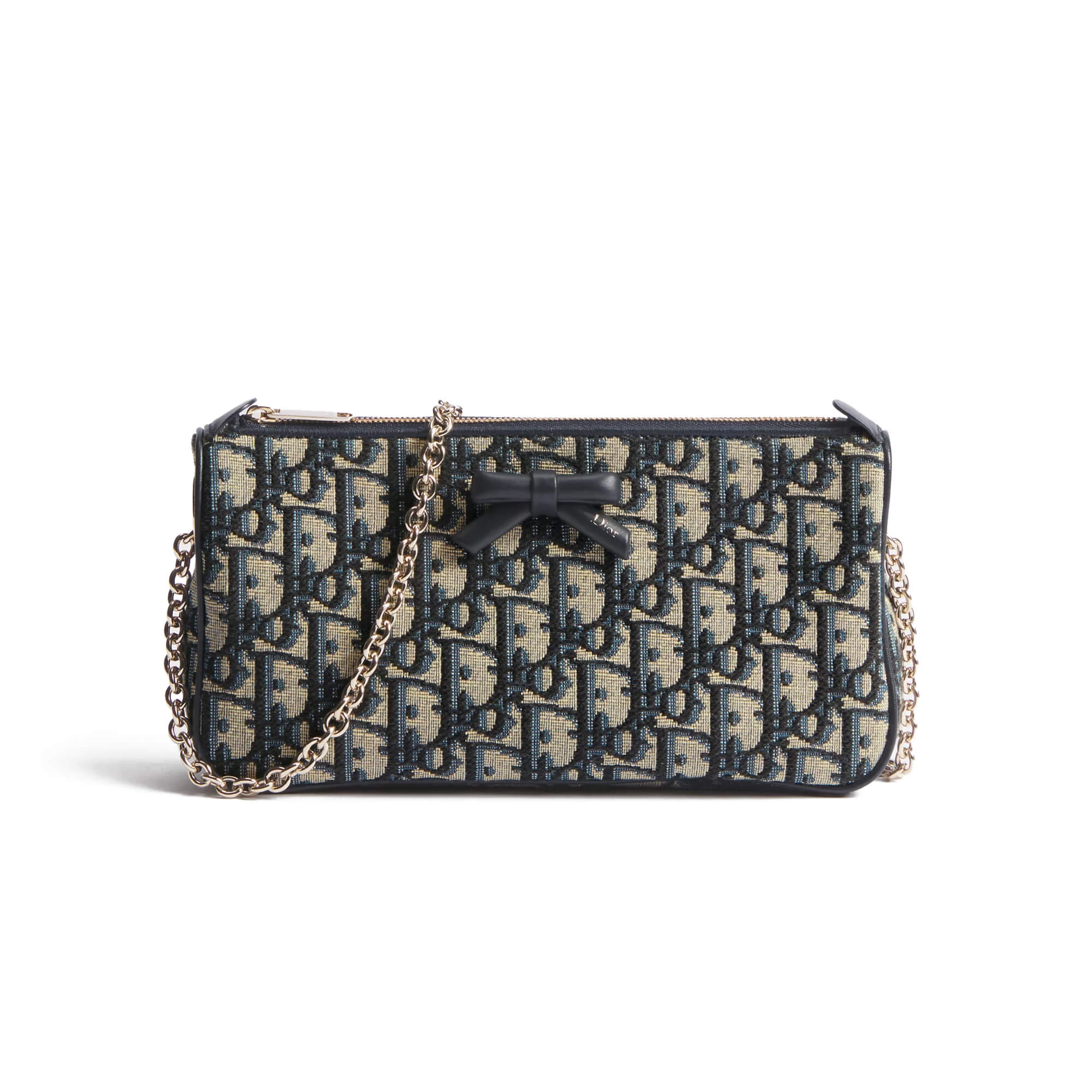 תיק עם רצועת שרשרת עשוי מאריג Dior Oblique בצבע כחול