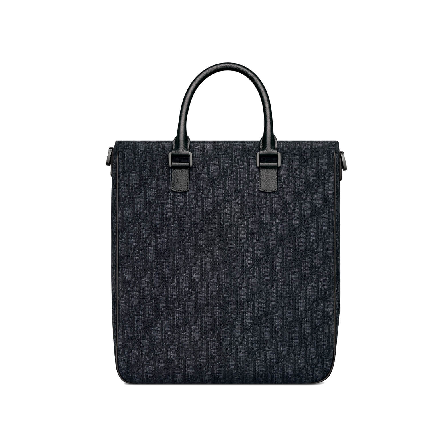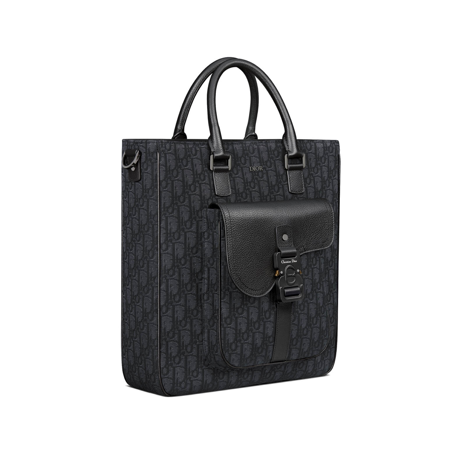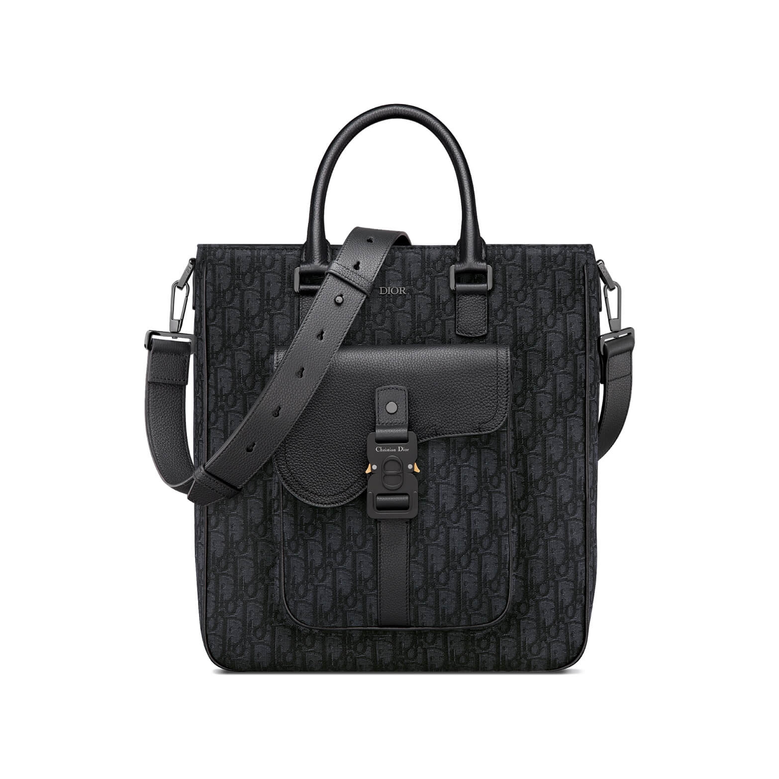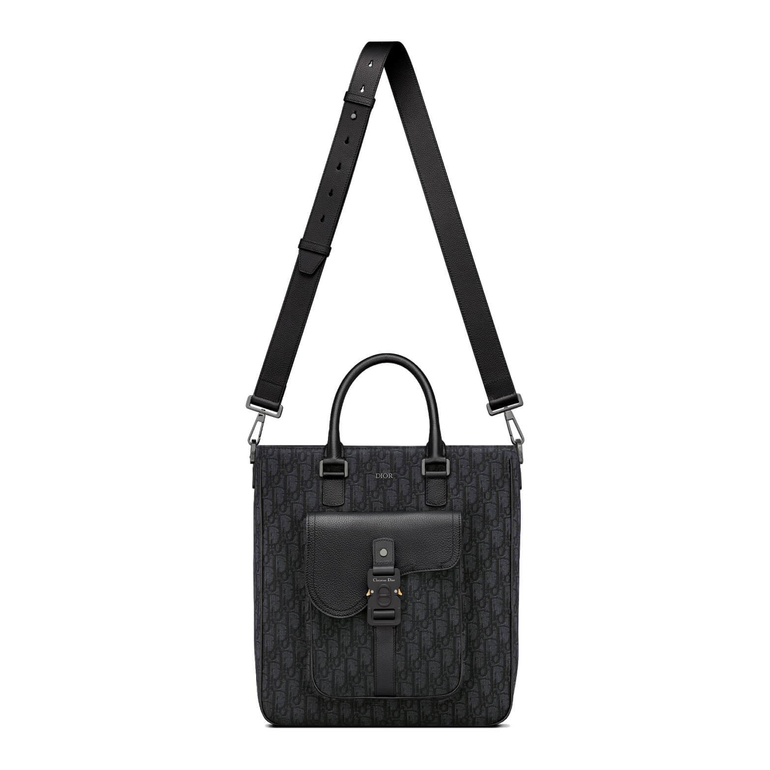 תיק מאריג Dior Oblique בצבע שחור בשילוב עור שחור