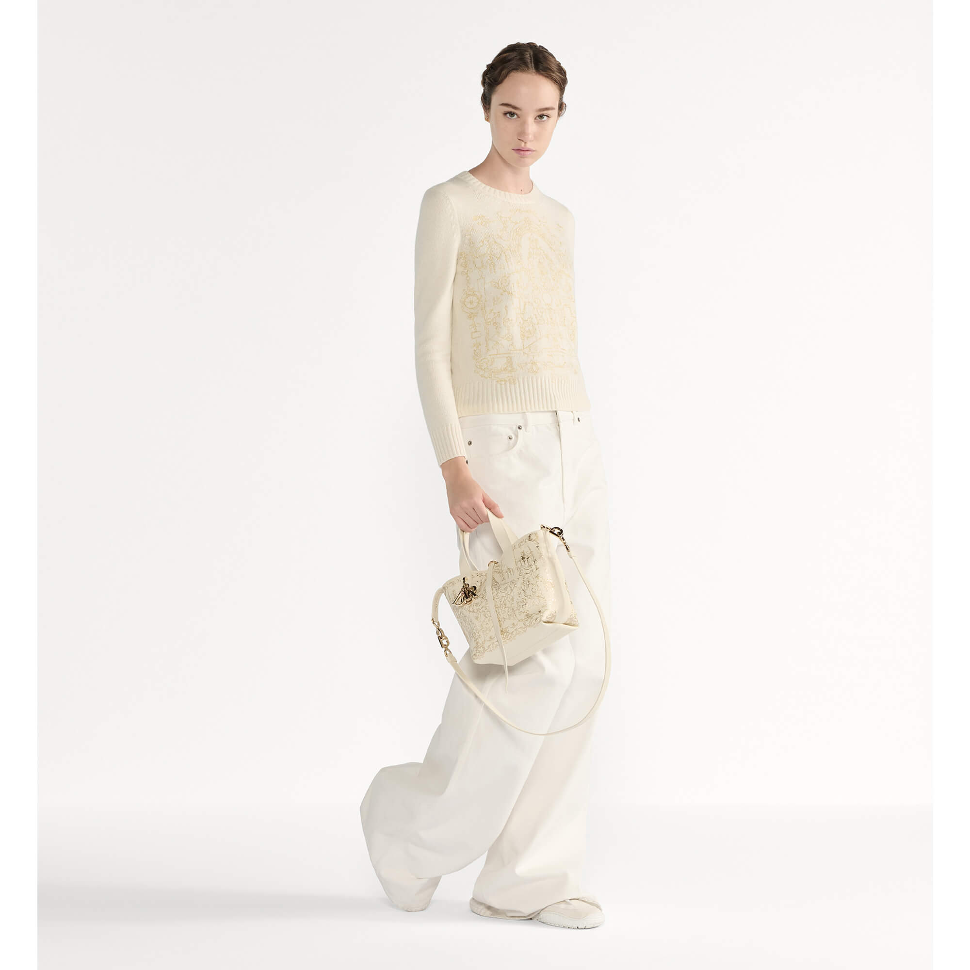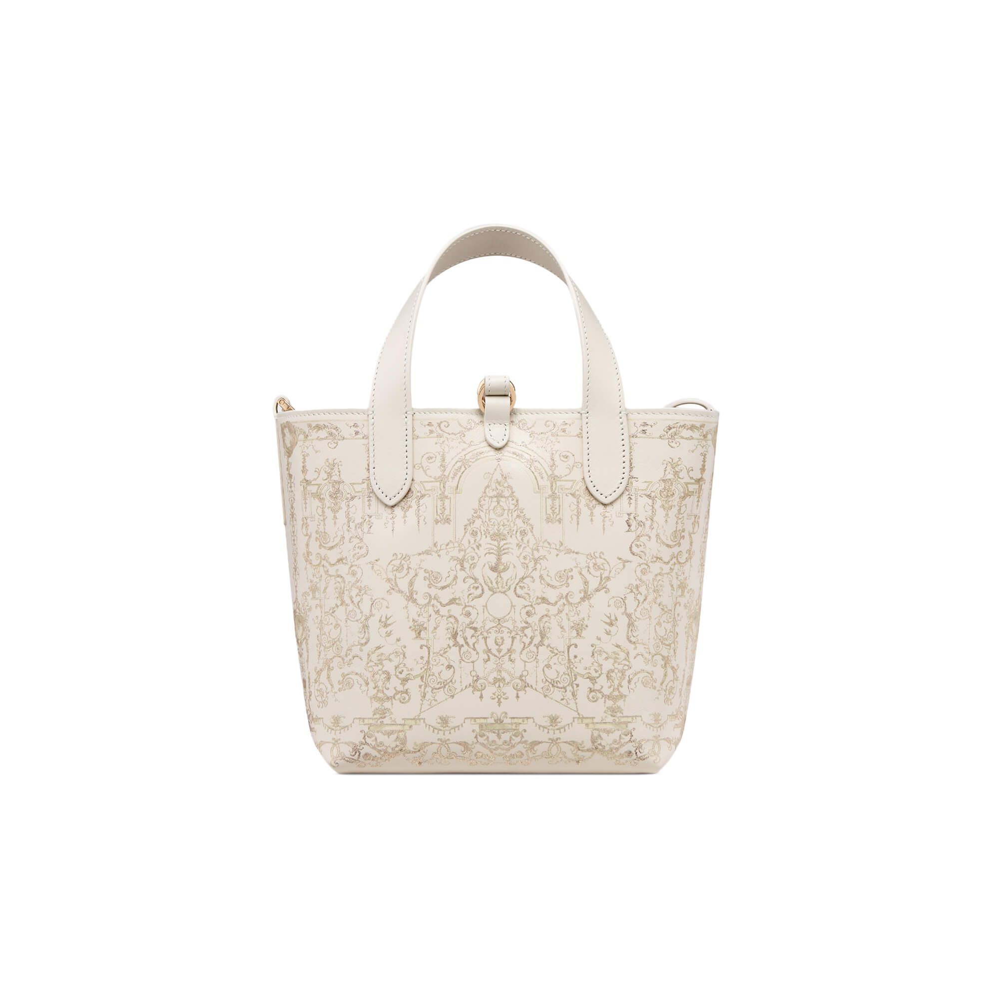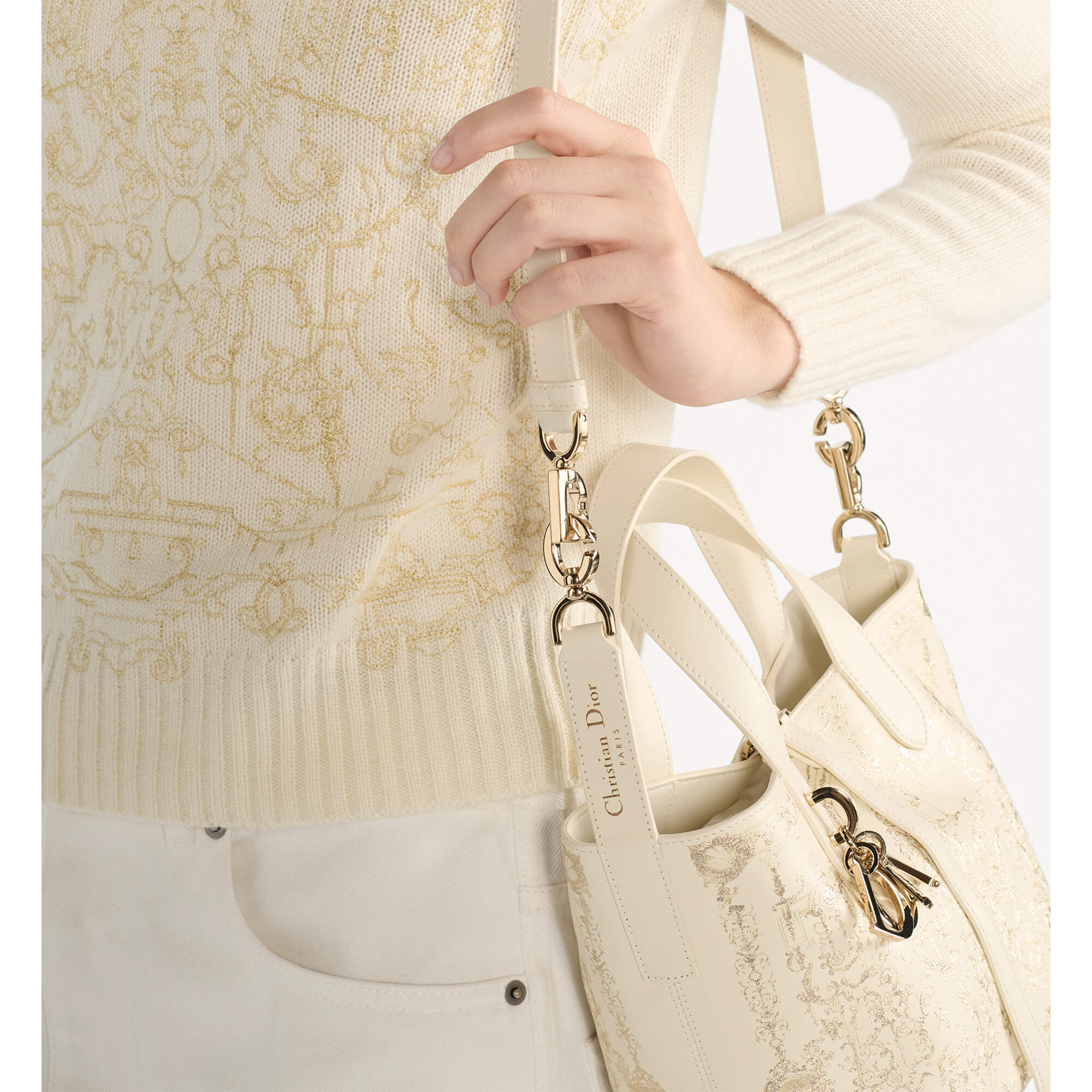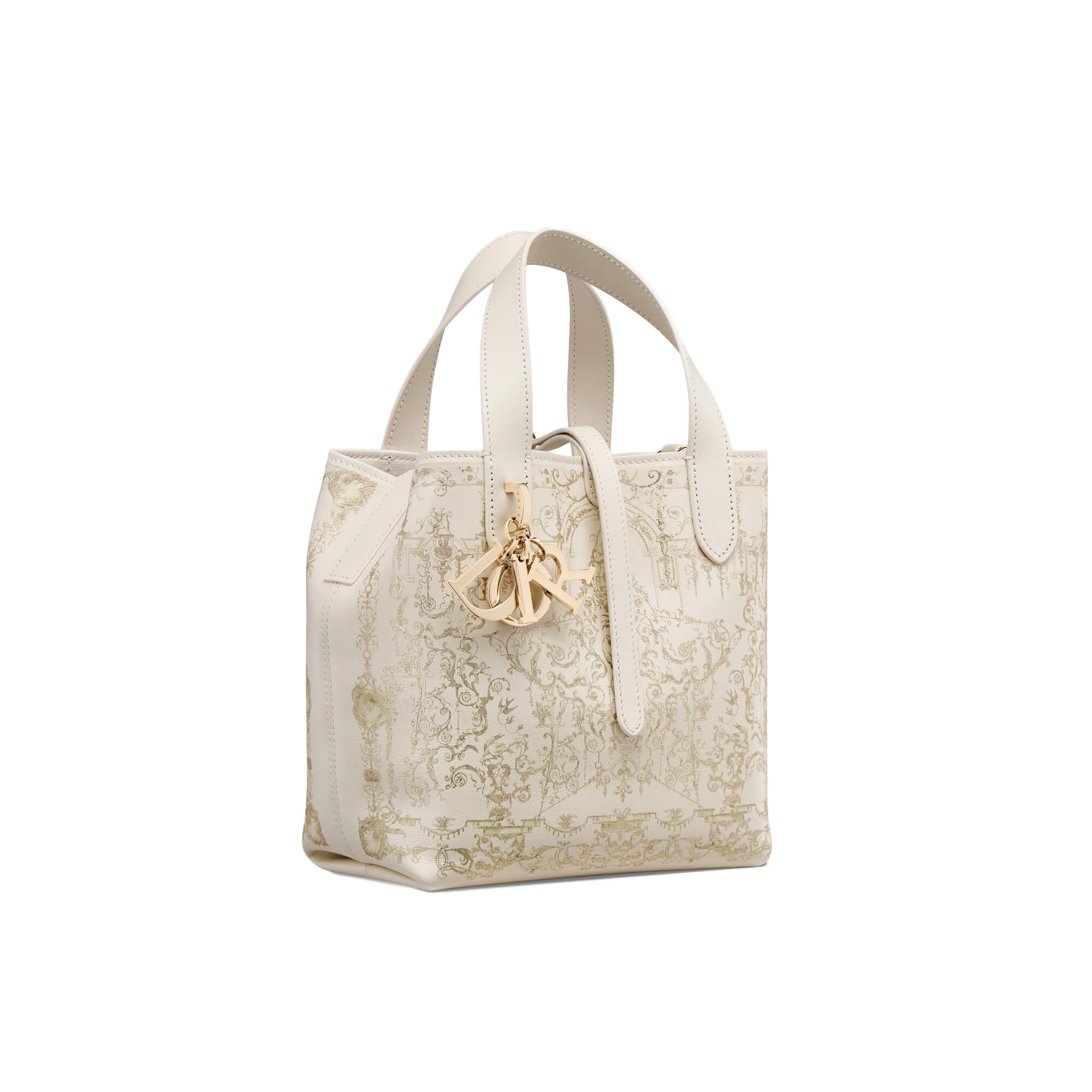 תיק קטן מעור calfskin בצבע אוף-וייט עם הדפס Dioresque Stella בצבע זהב