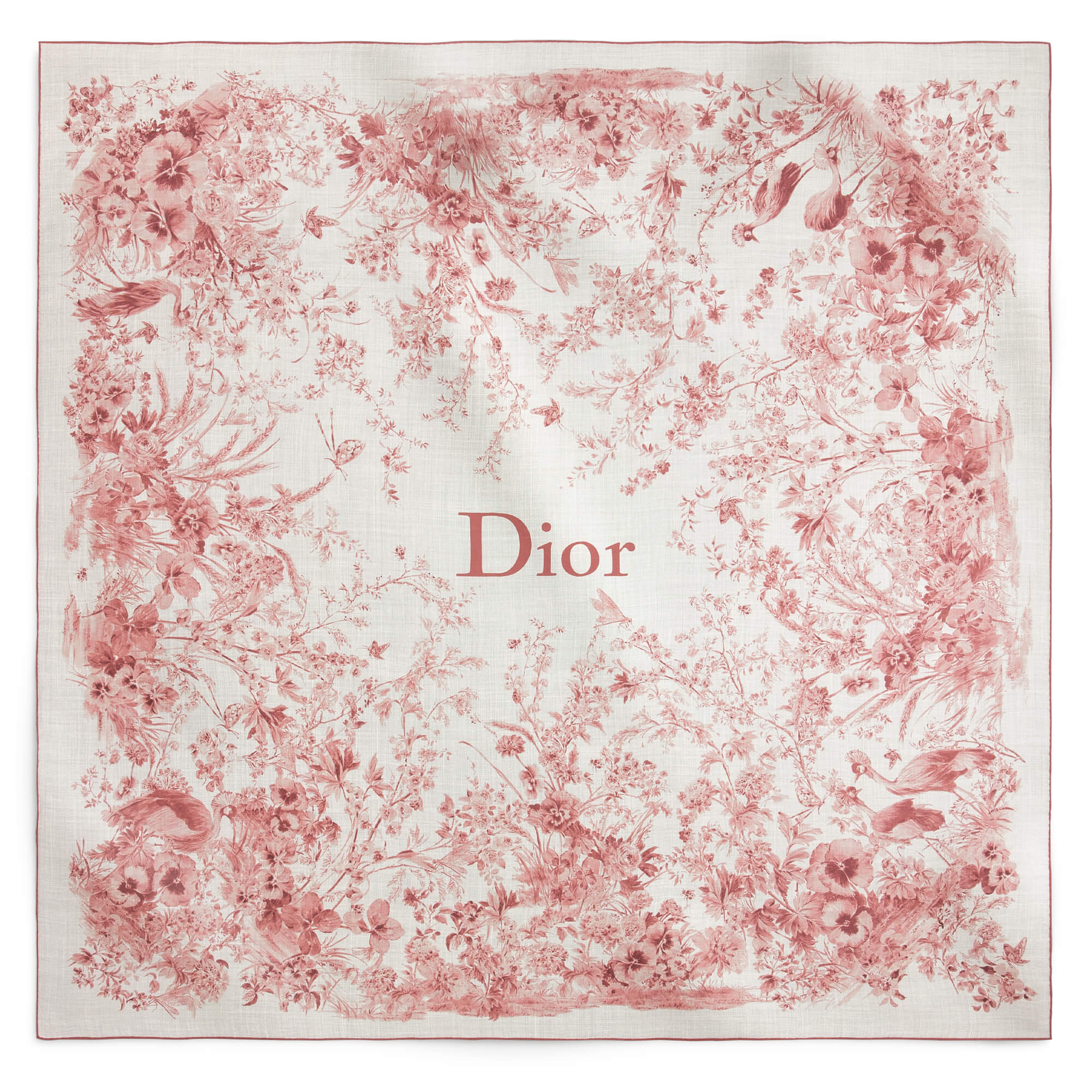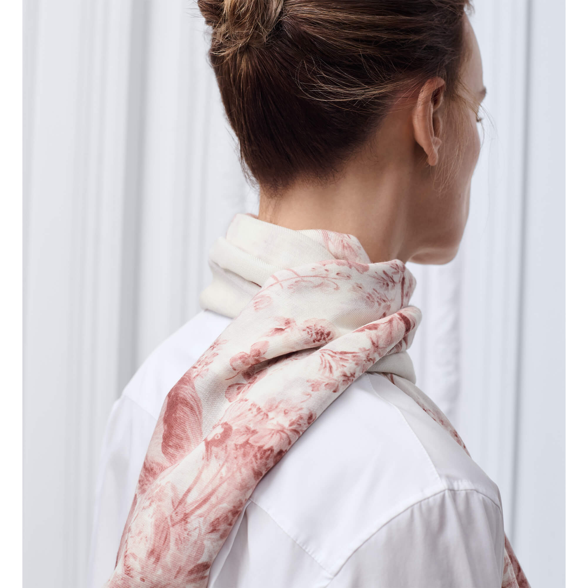 צעיף עם הדפס Toile de Jouy Floral Garden בצבע לבן וורוד