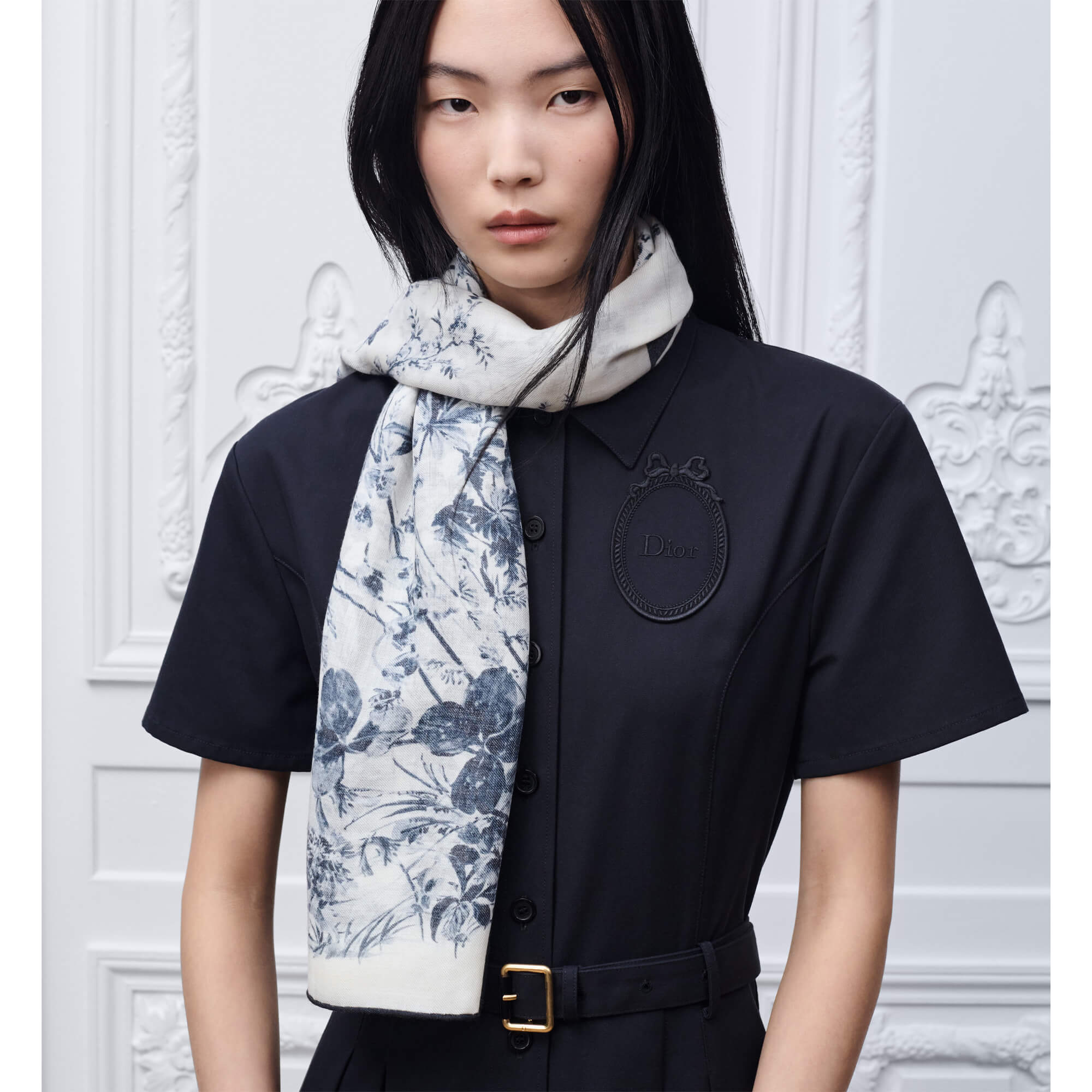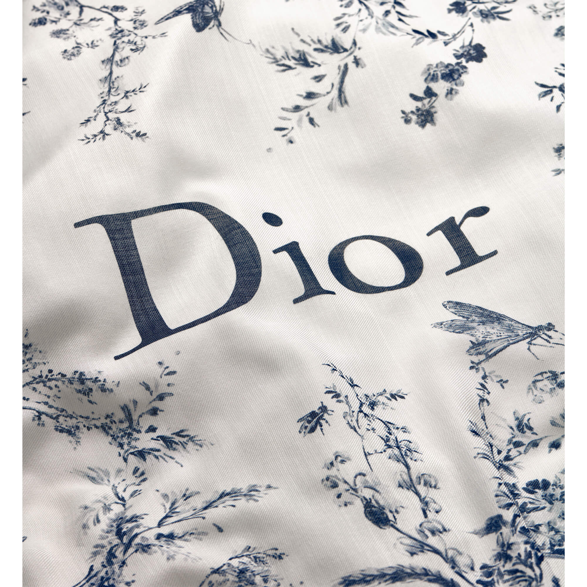 צעיף עם הדפס Toile de Jouy Floral Garden בצבע לבן וכחול נייבי