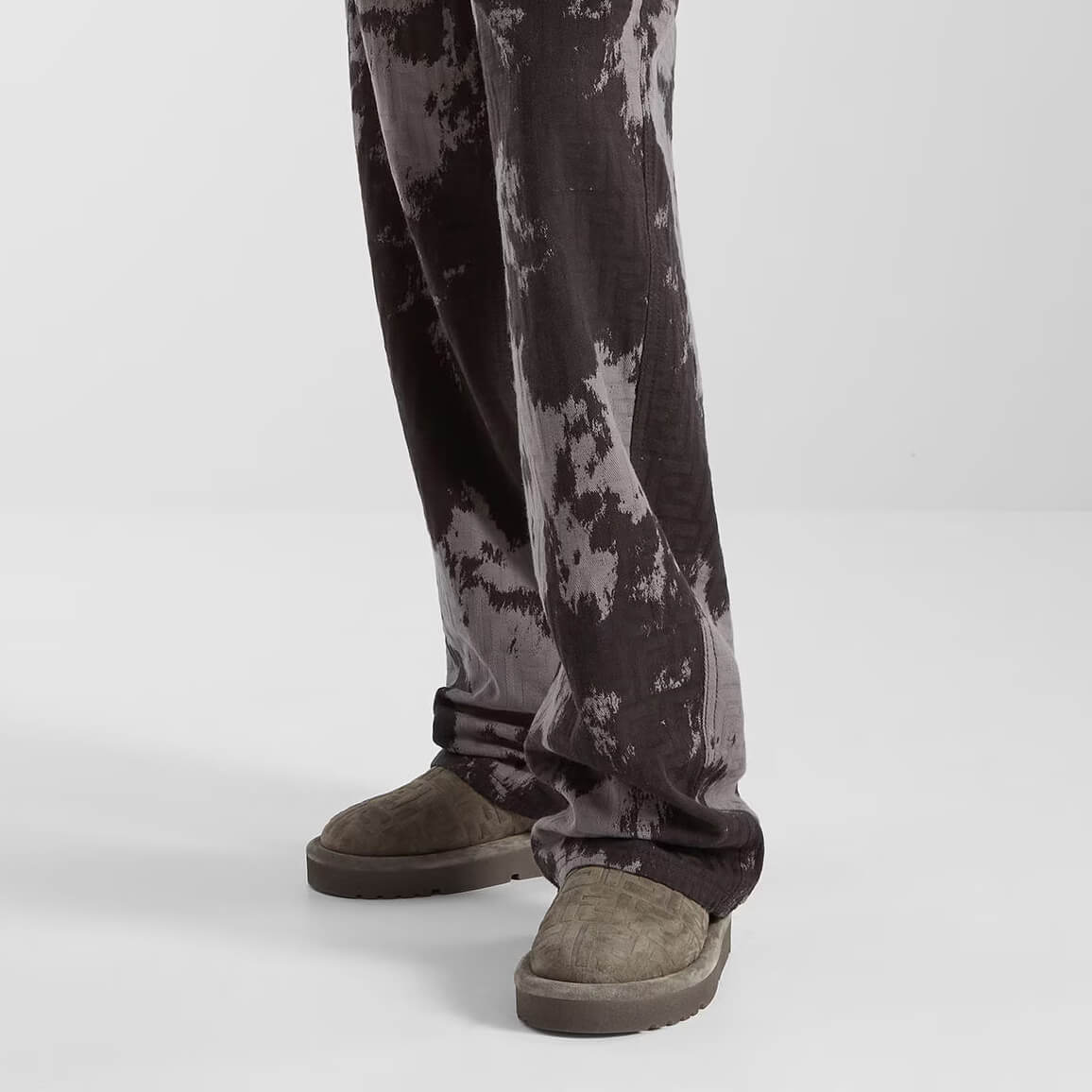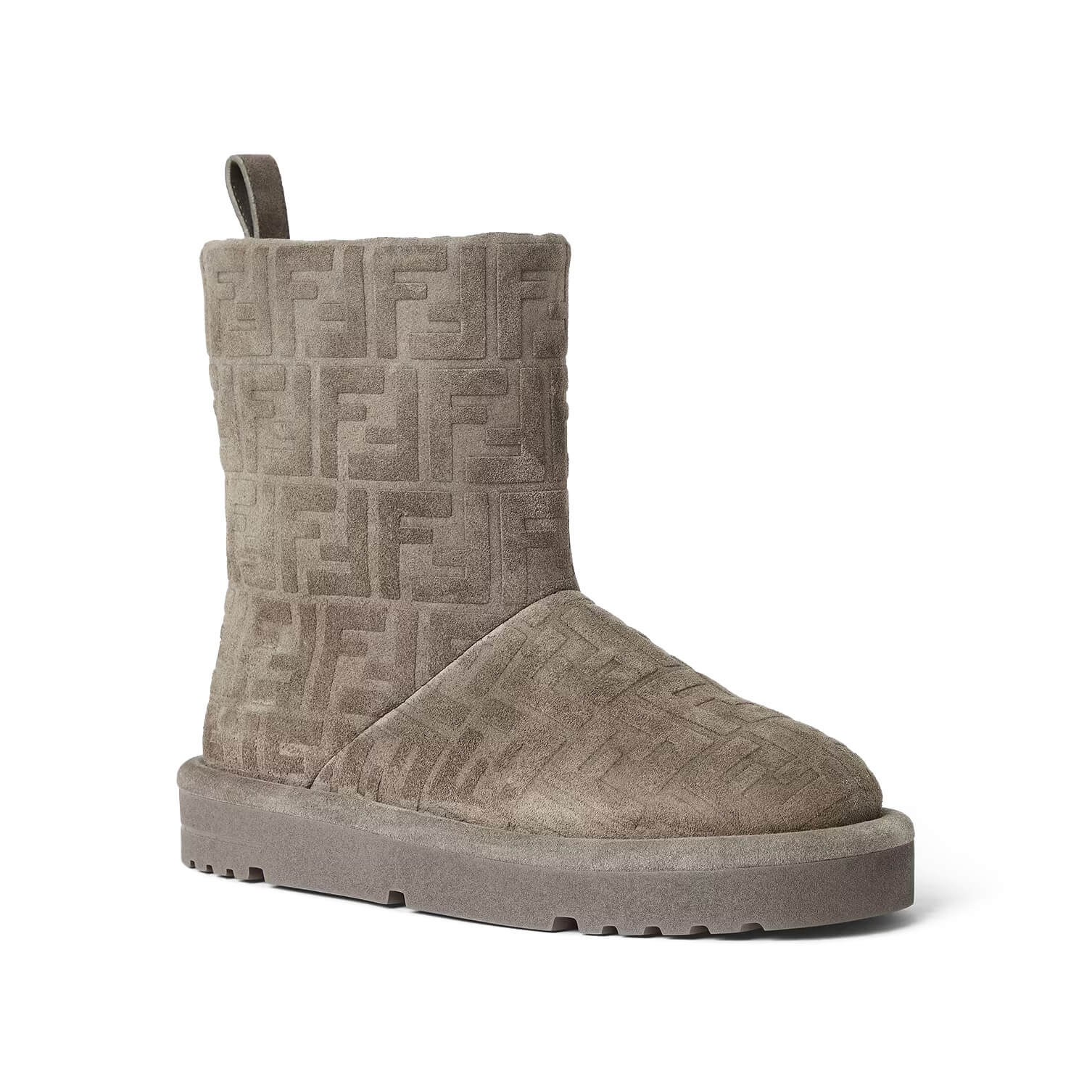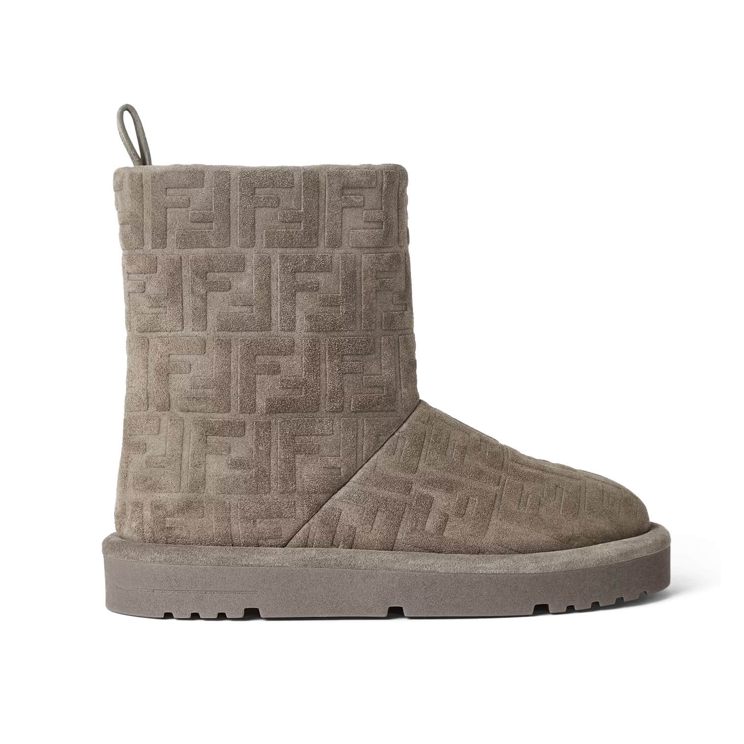 זמש בצבע אפור עם דוגמת FF מובלטת בטון על טון