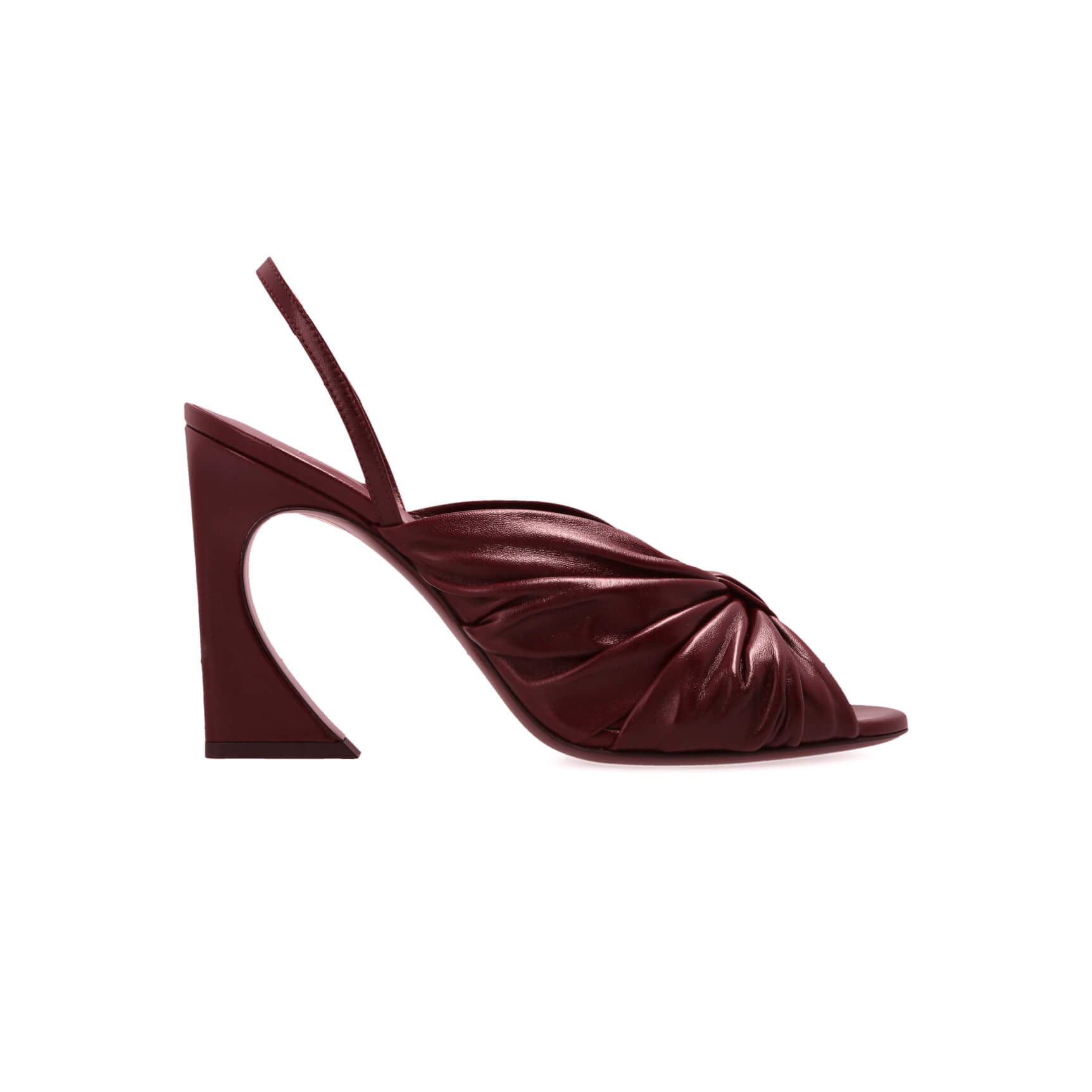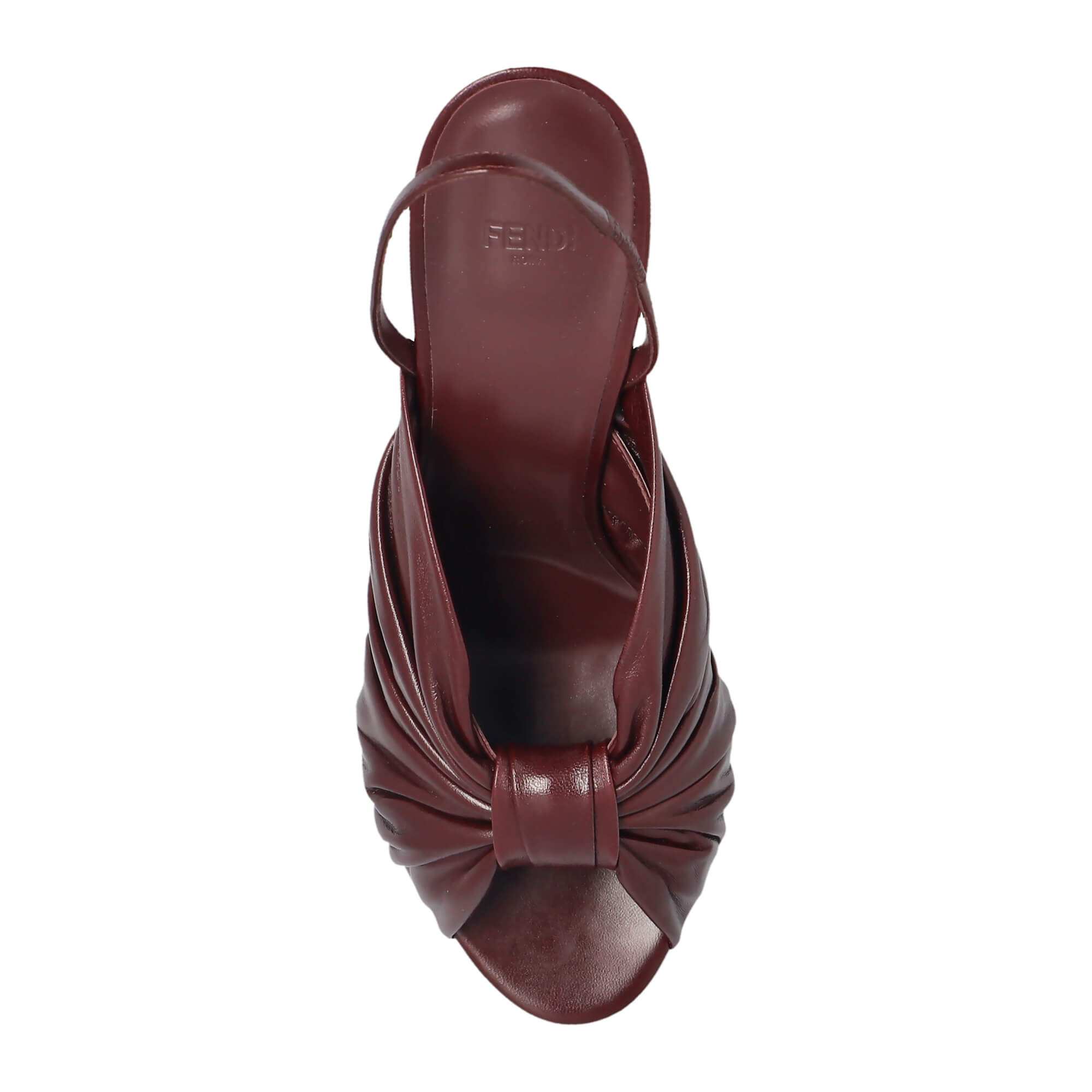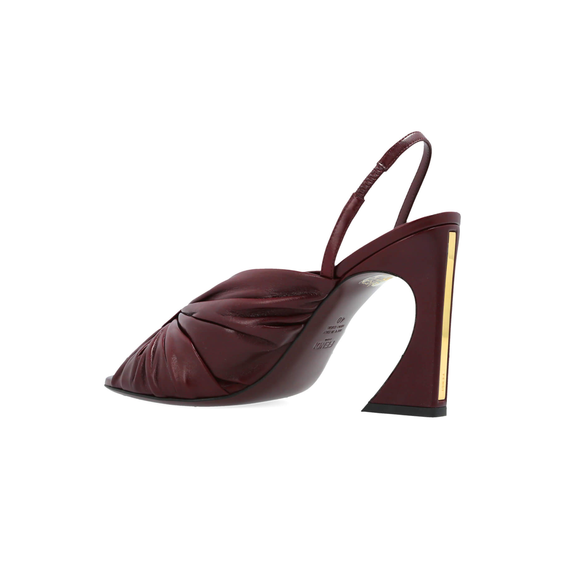 עקב גבוה מפוסל בצבע תואם עם תג מתכת בצבע זהב ועליו לוגו Fendi חרוט