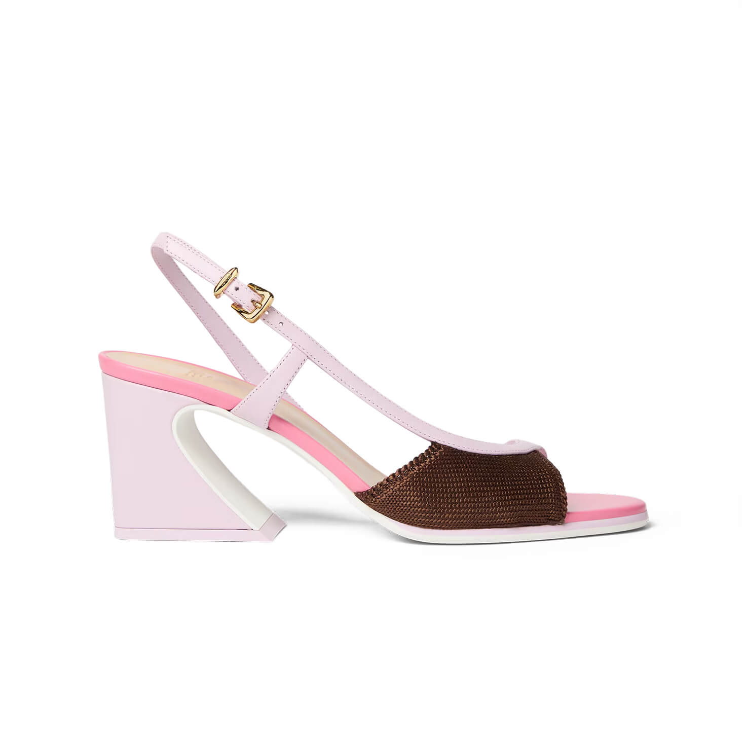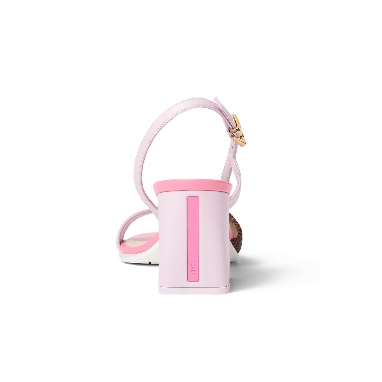 עיטור מתכת ורודה מבריקה בעקב עם לוגו Fendi חרוט