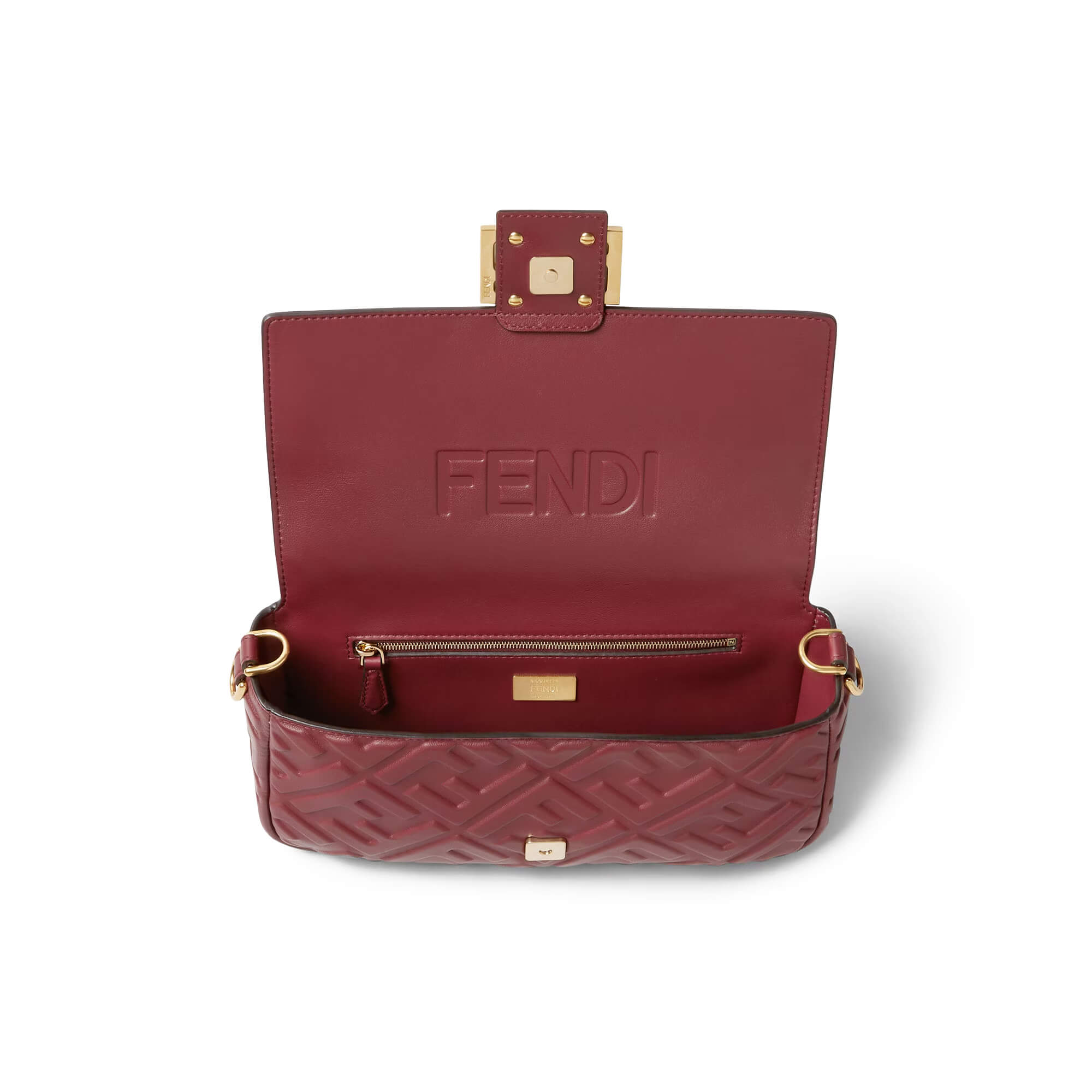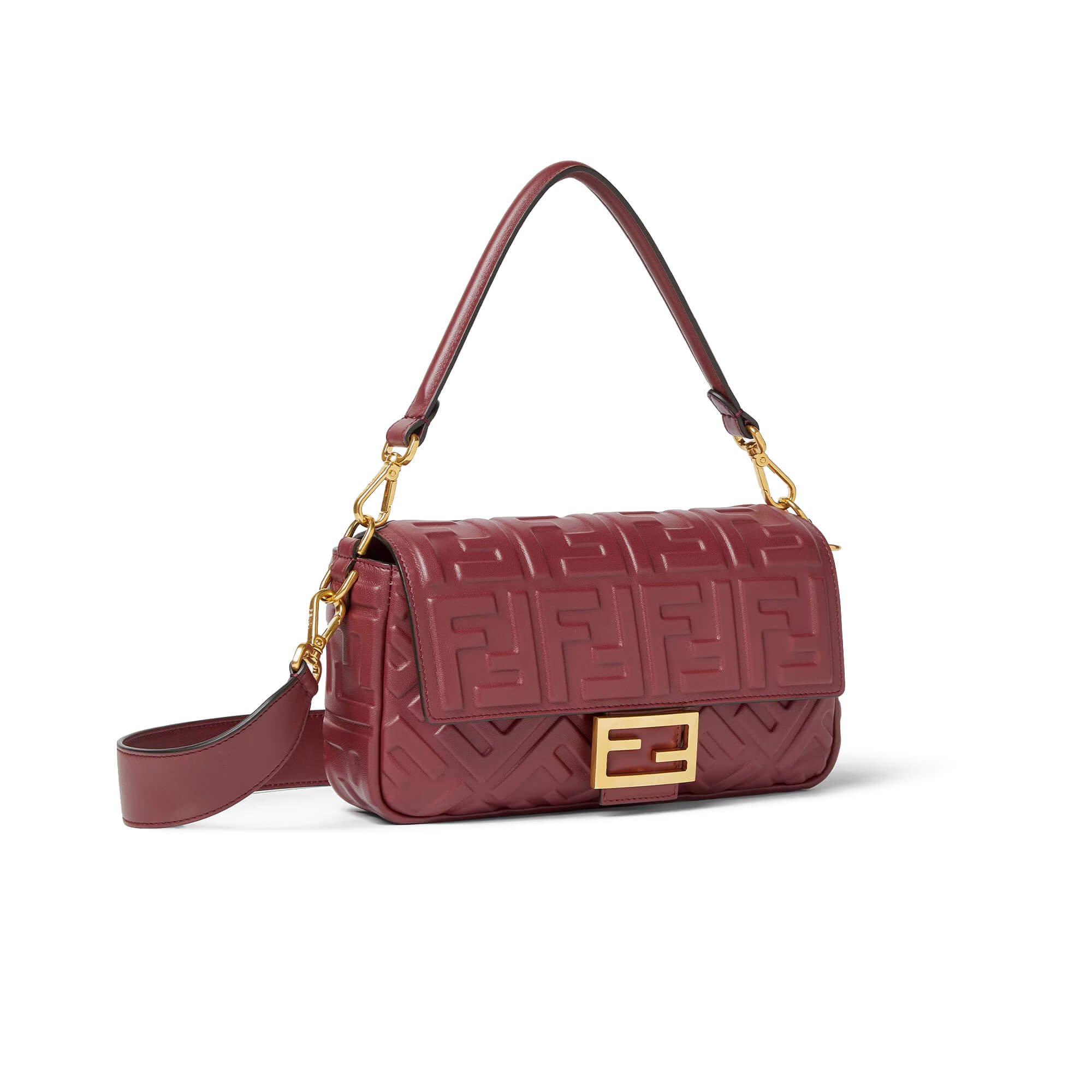 עשוי מעור calfskin בצבע בורדו – רך במיוחד ועמיד, עם דוגמת FF מובלטת