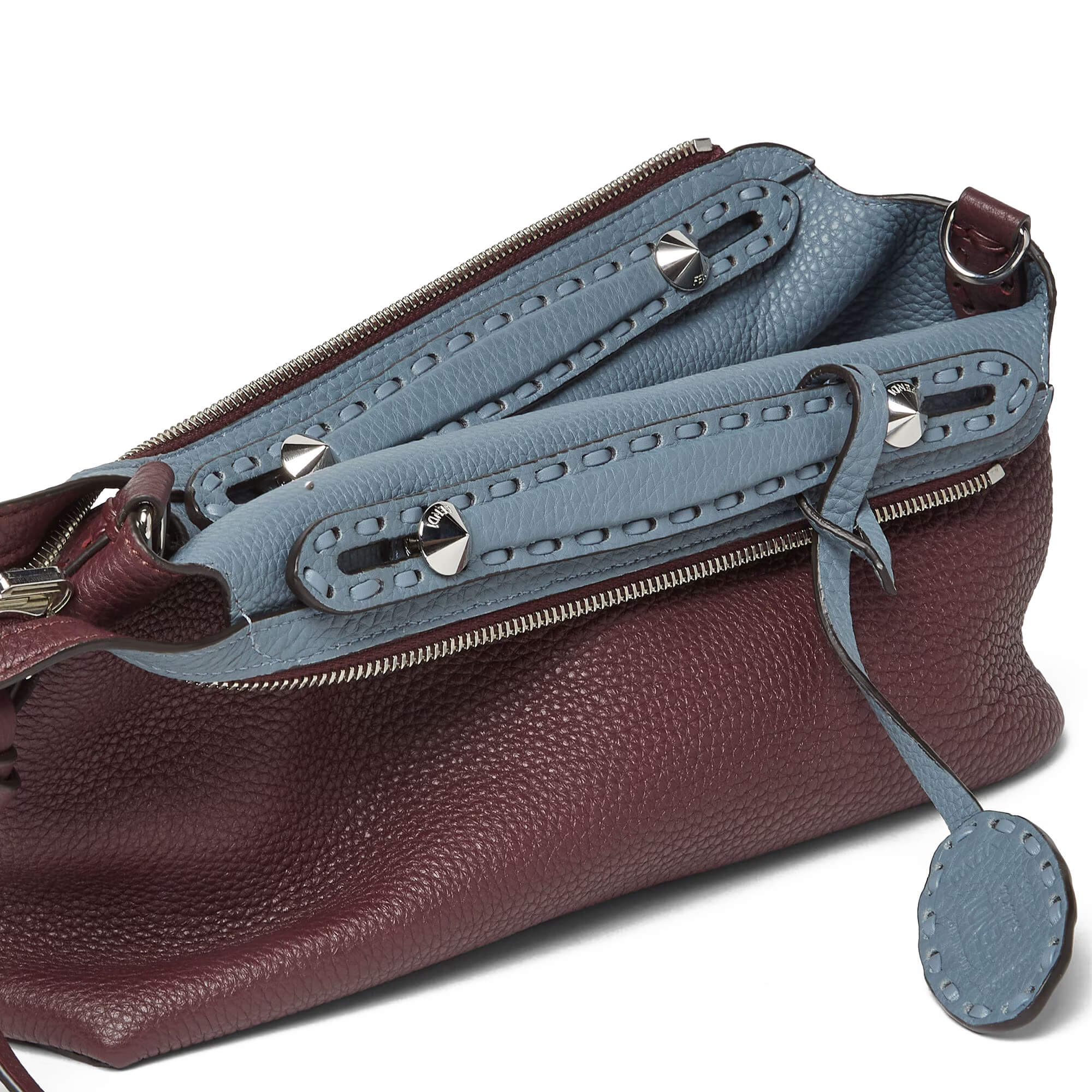 עשוי מעור Cuoio Romano בצבע בורדו והצד השני בצבע כחול