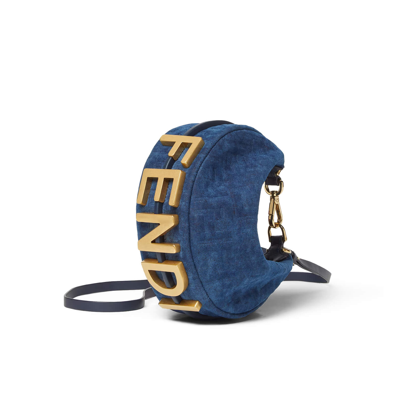 כיתוב מתכת FENDI בצבע זהב וינטג׳ בבסיס התיק