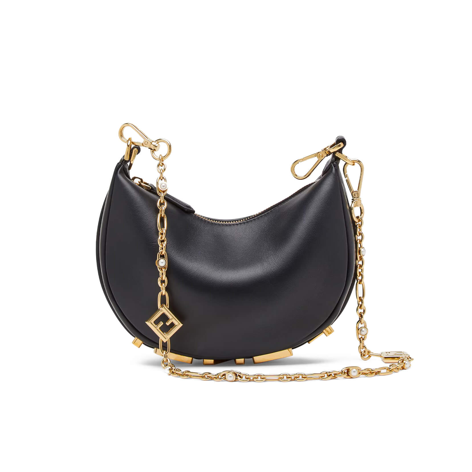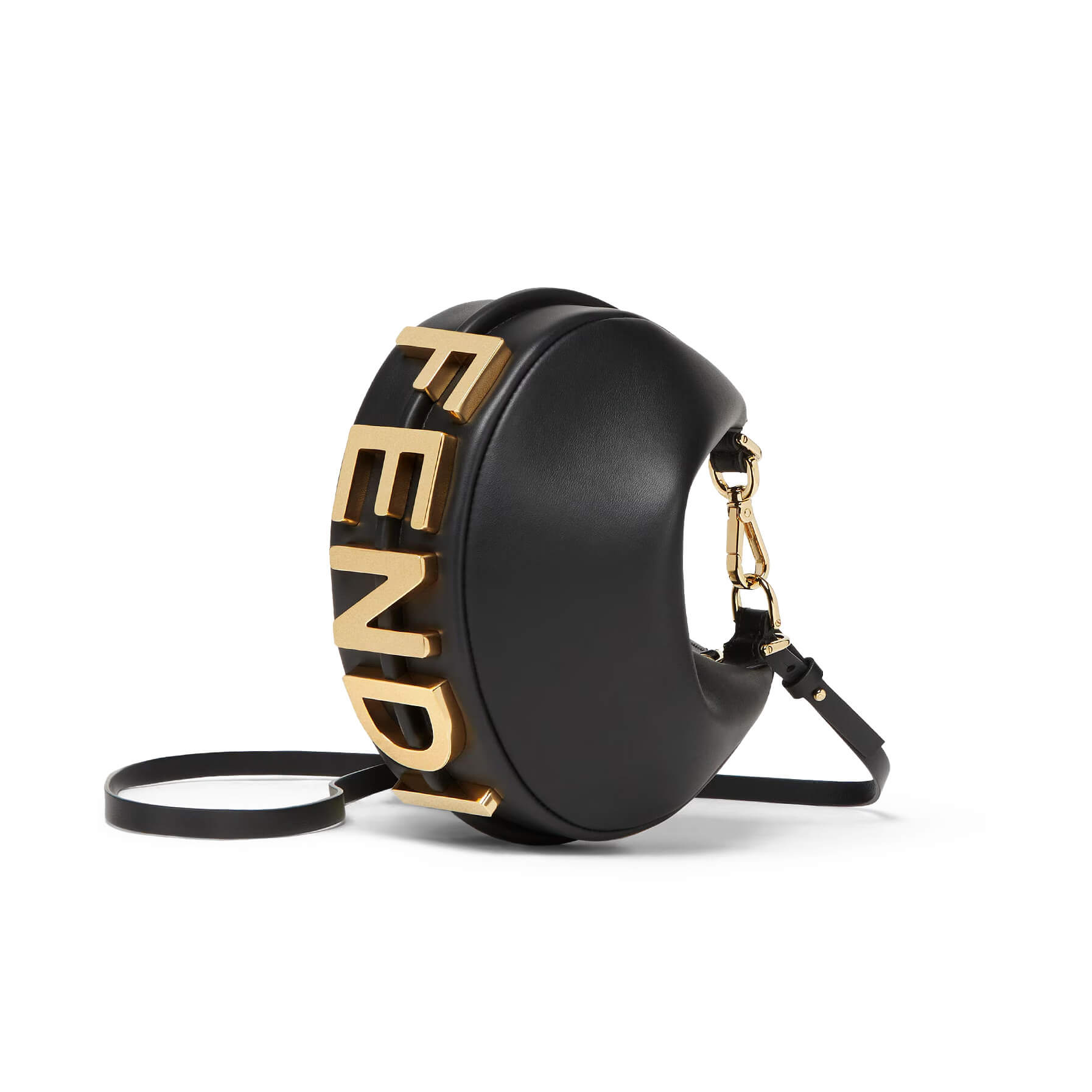 כיתוב מתכת FENDI בצבע זהב וינטג׳ בבסיס התיק