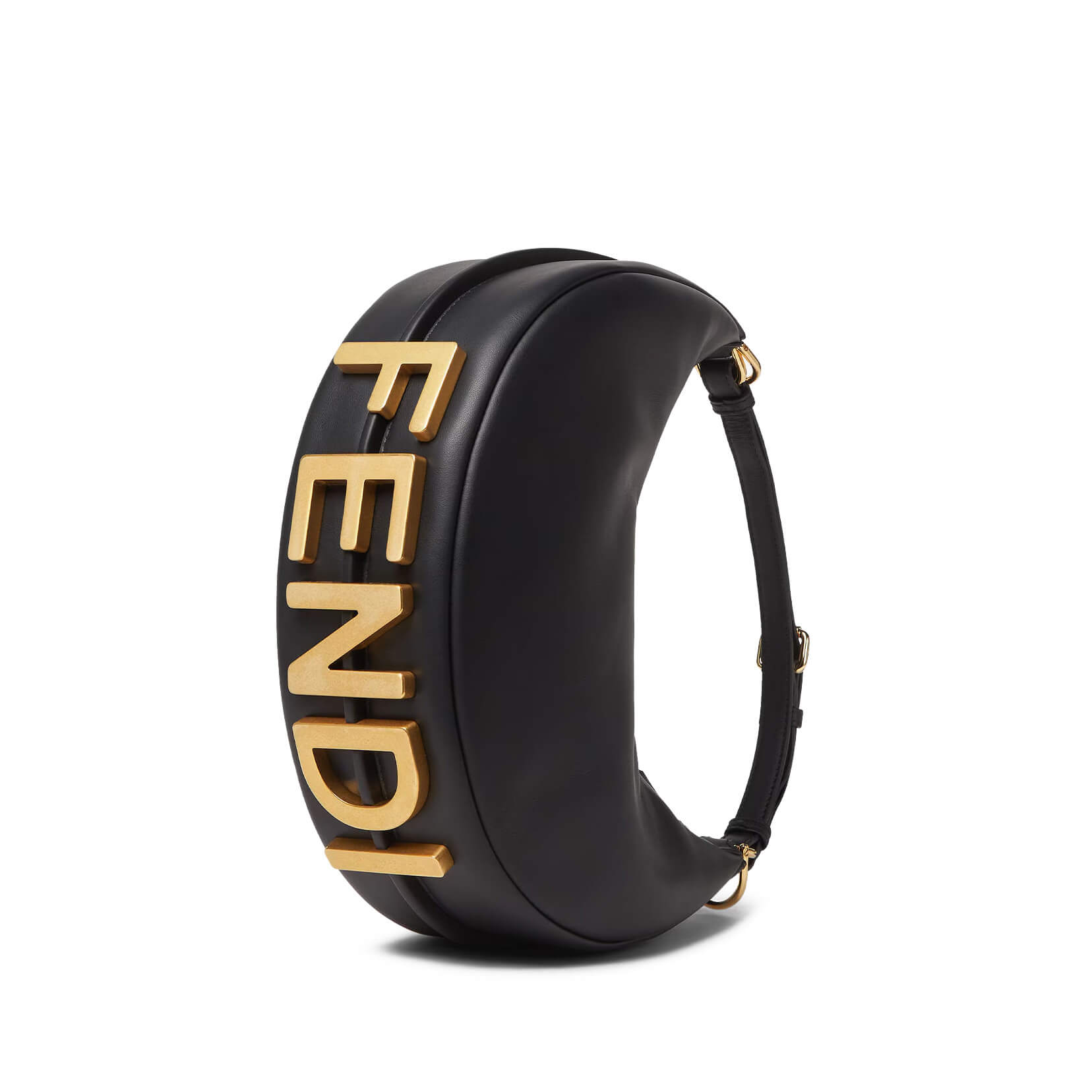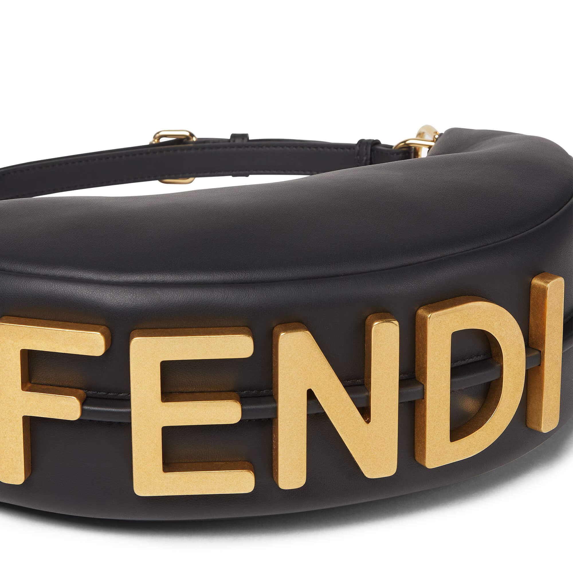 כיתוב מתכת FENDI בצבע זהב וינטג׳ בבסיס התיק