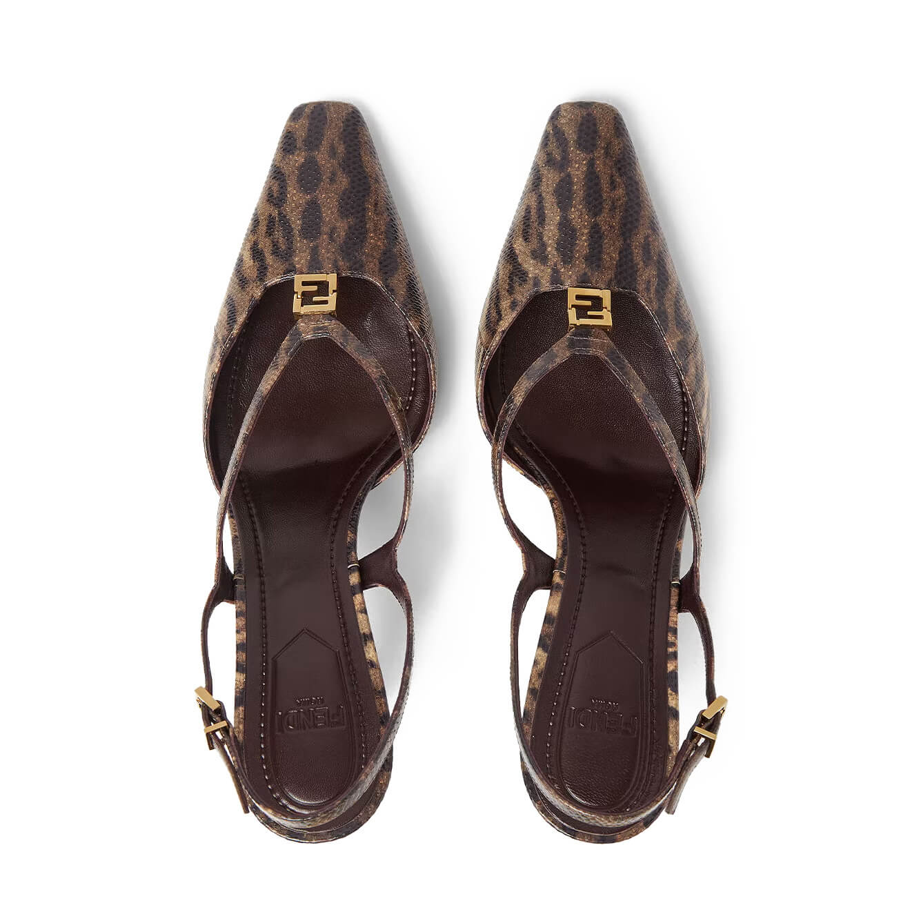 עור karung מבריק בהדפס Fendi Leo בצבע חום