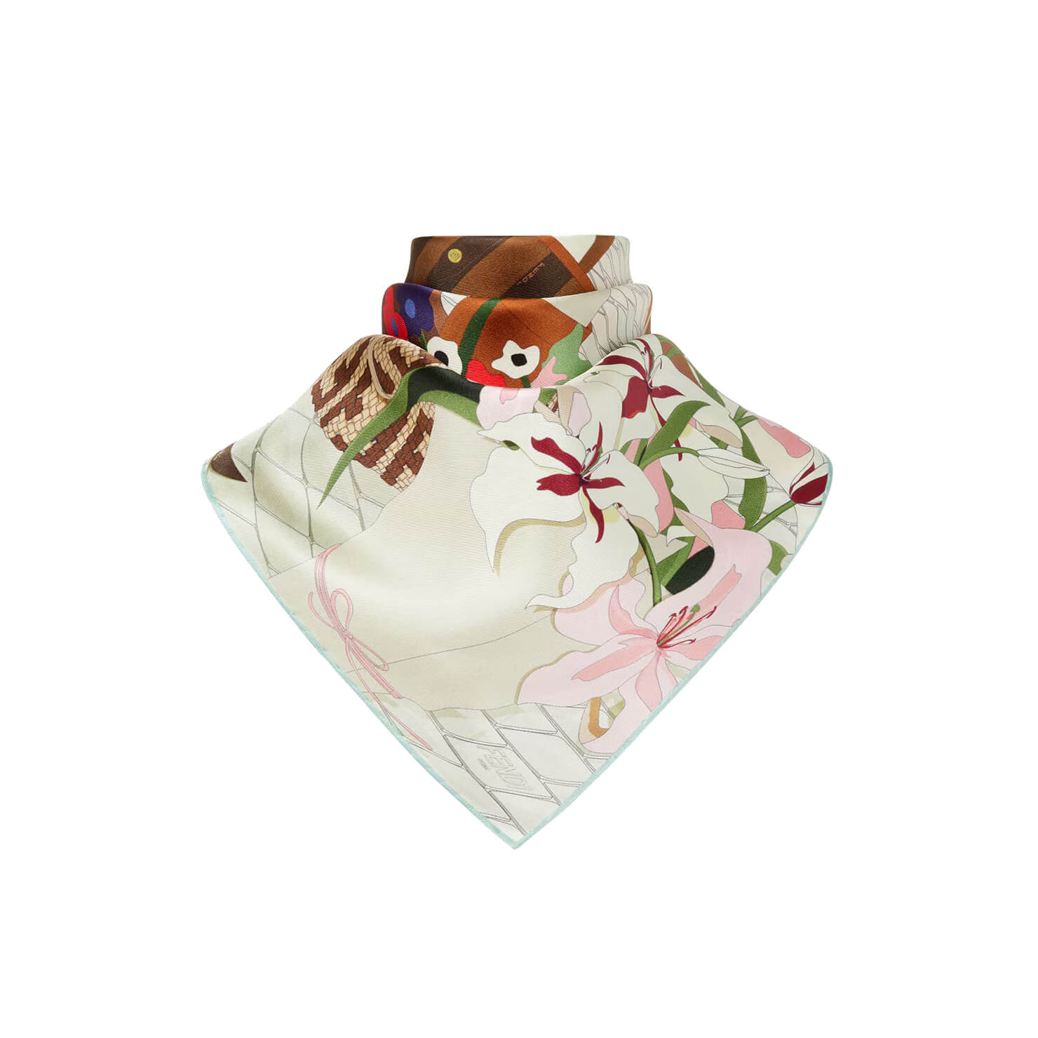 צעיף מרובע מבד משי עם הדפס פרחוני