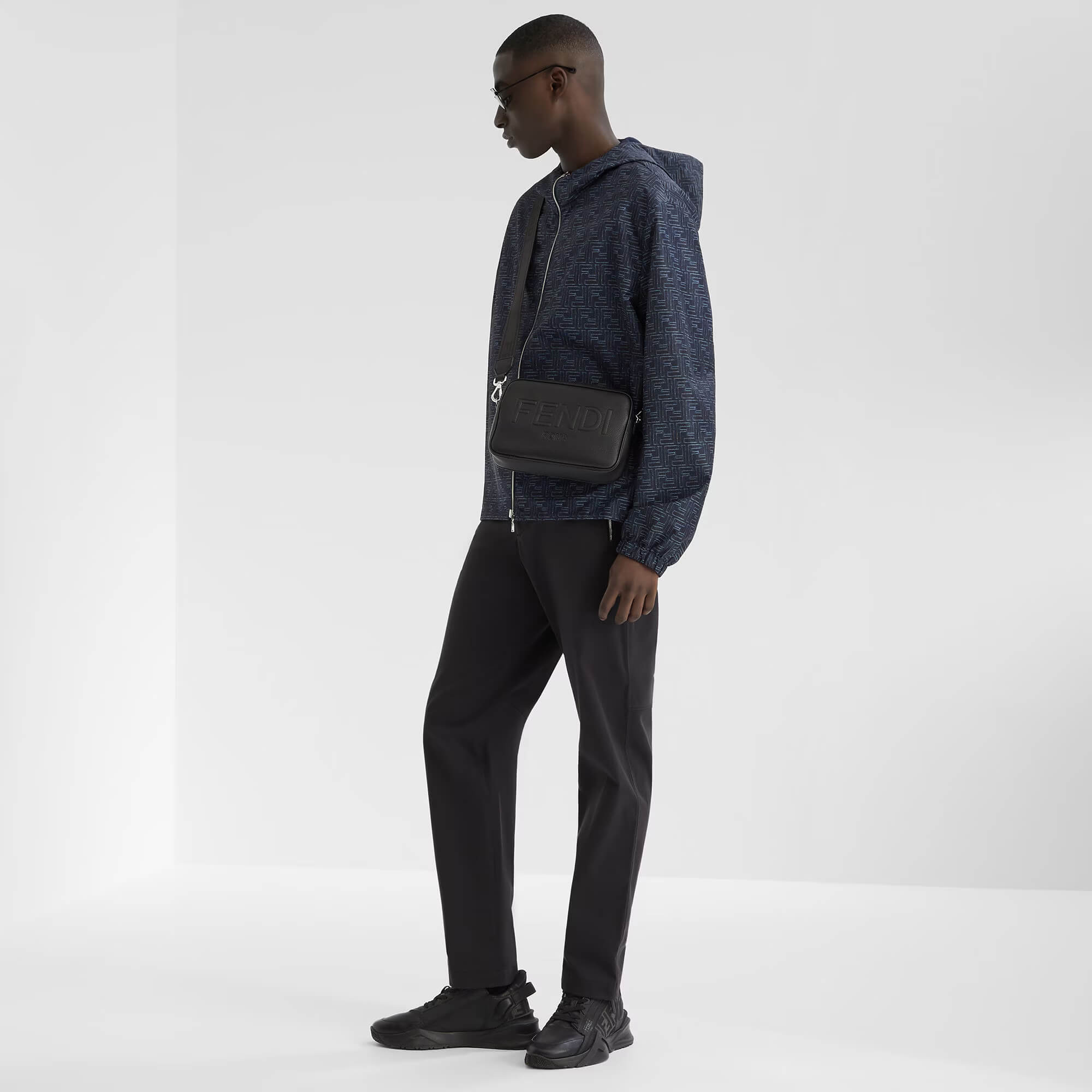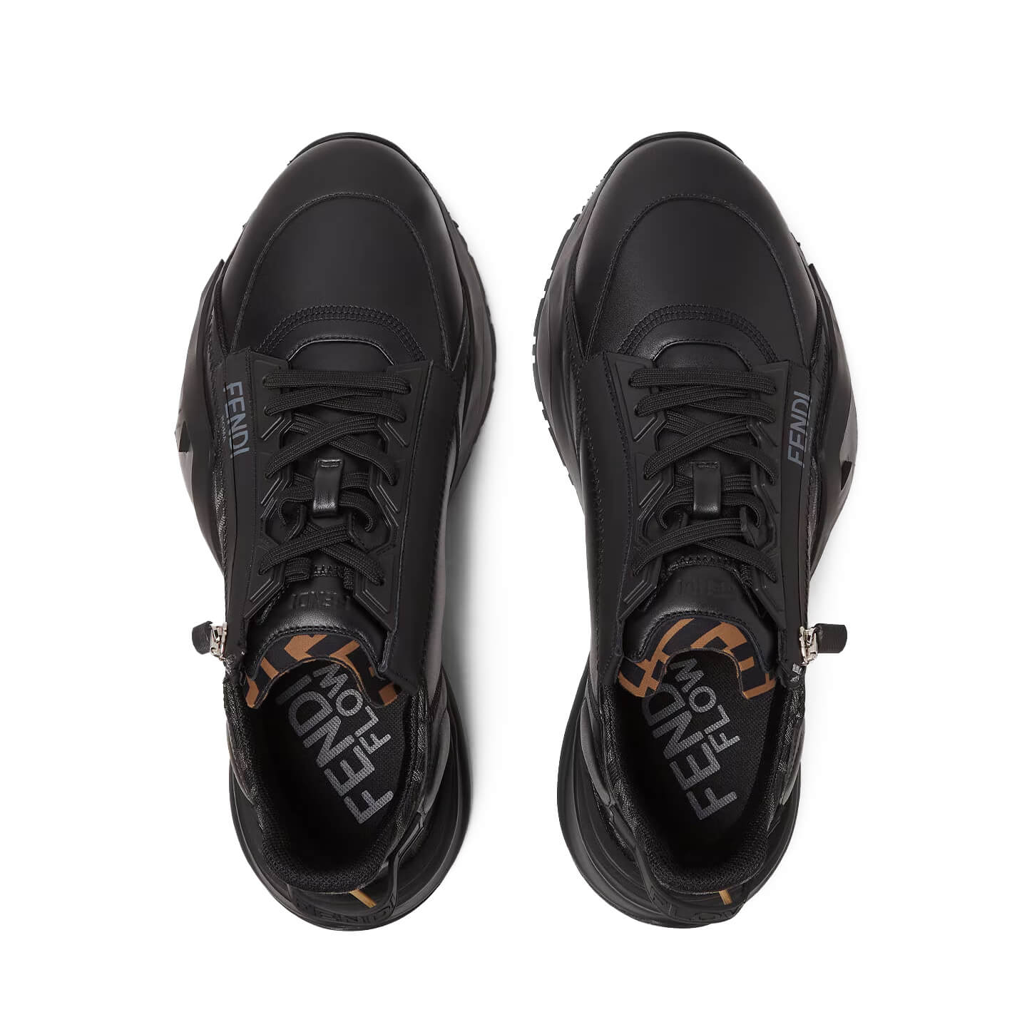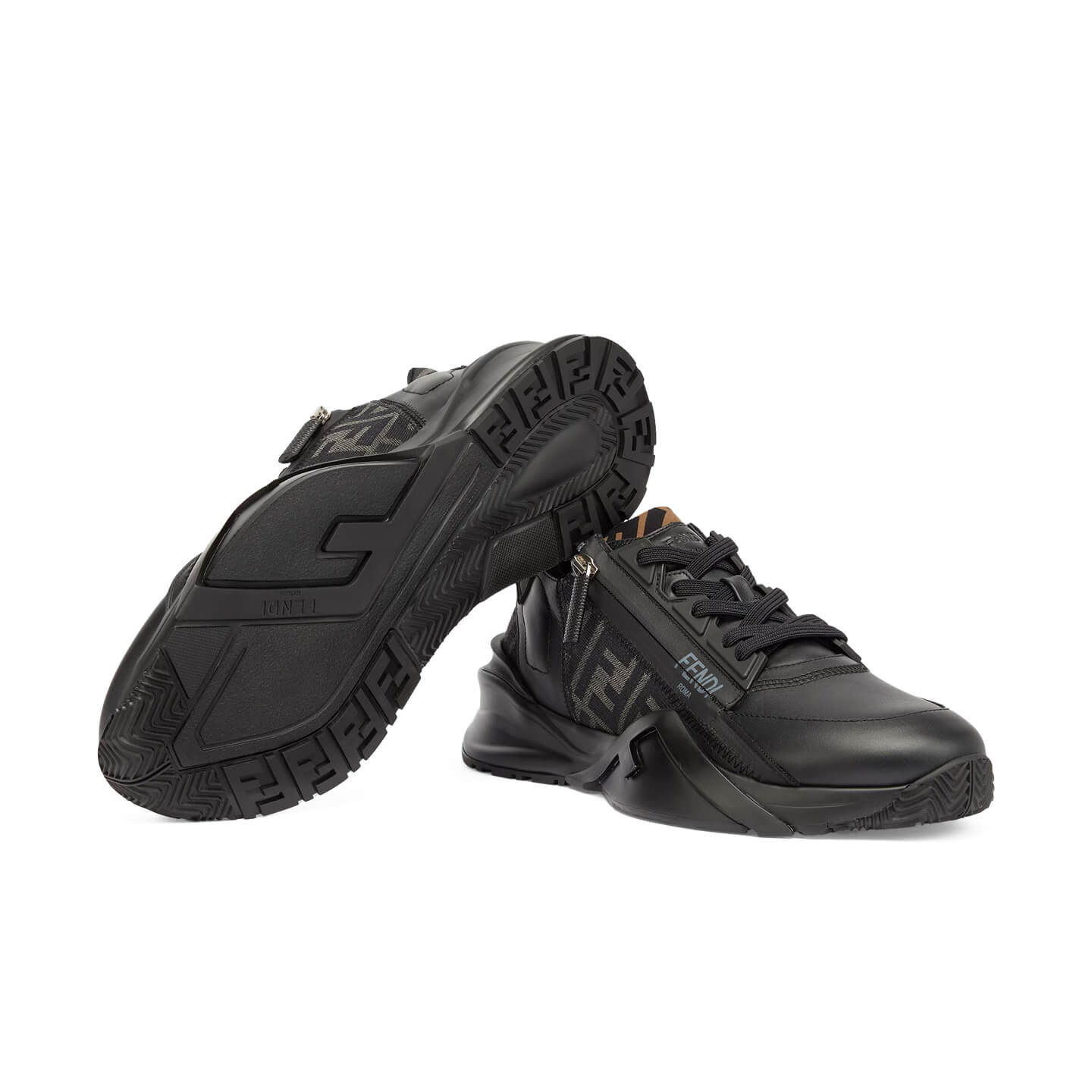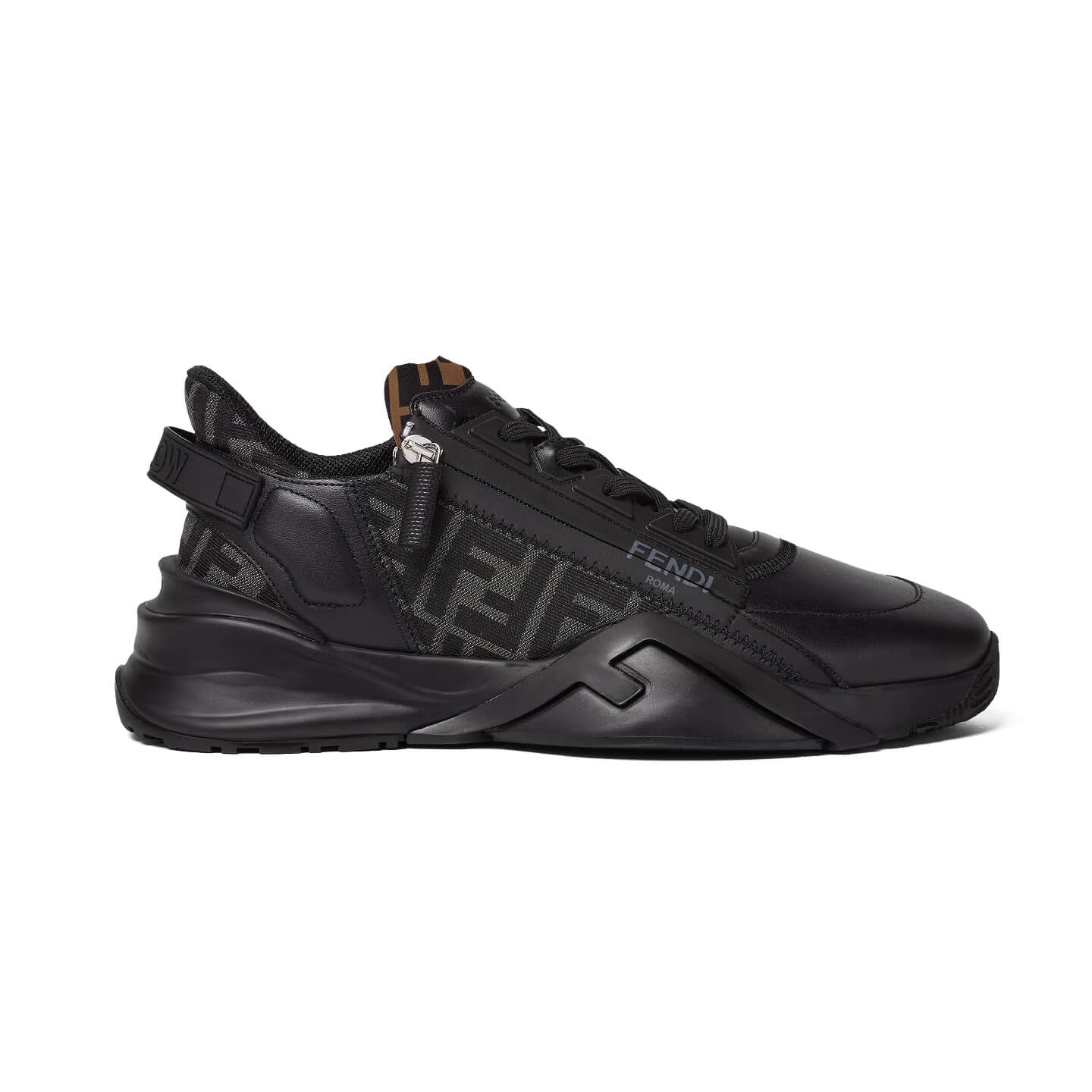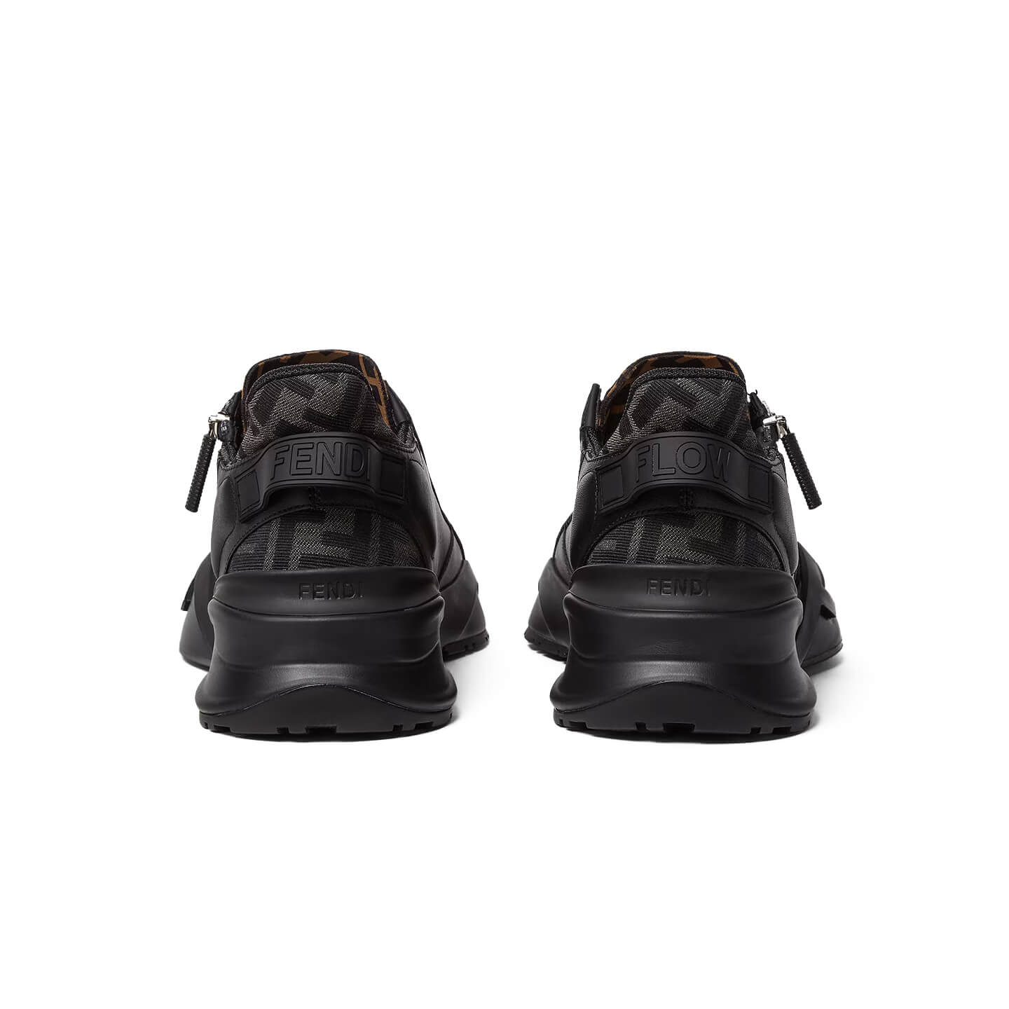 נעלי סניקרס עשויות עור שחור בשילוב בד FF בצבע שחור ואפור