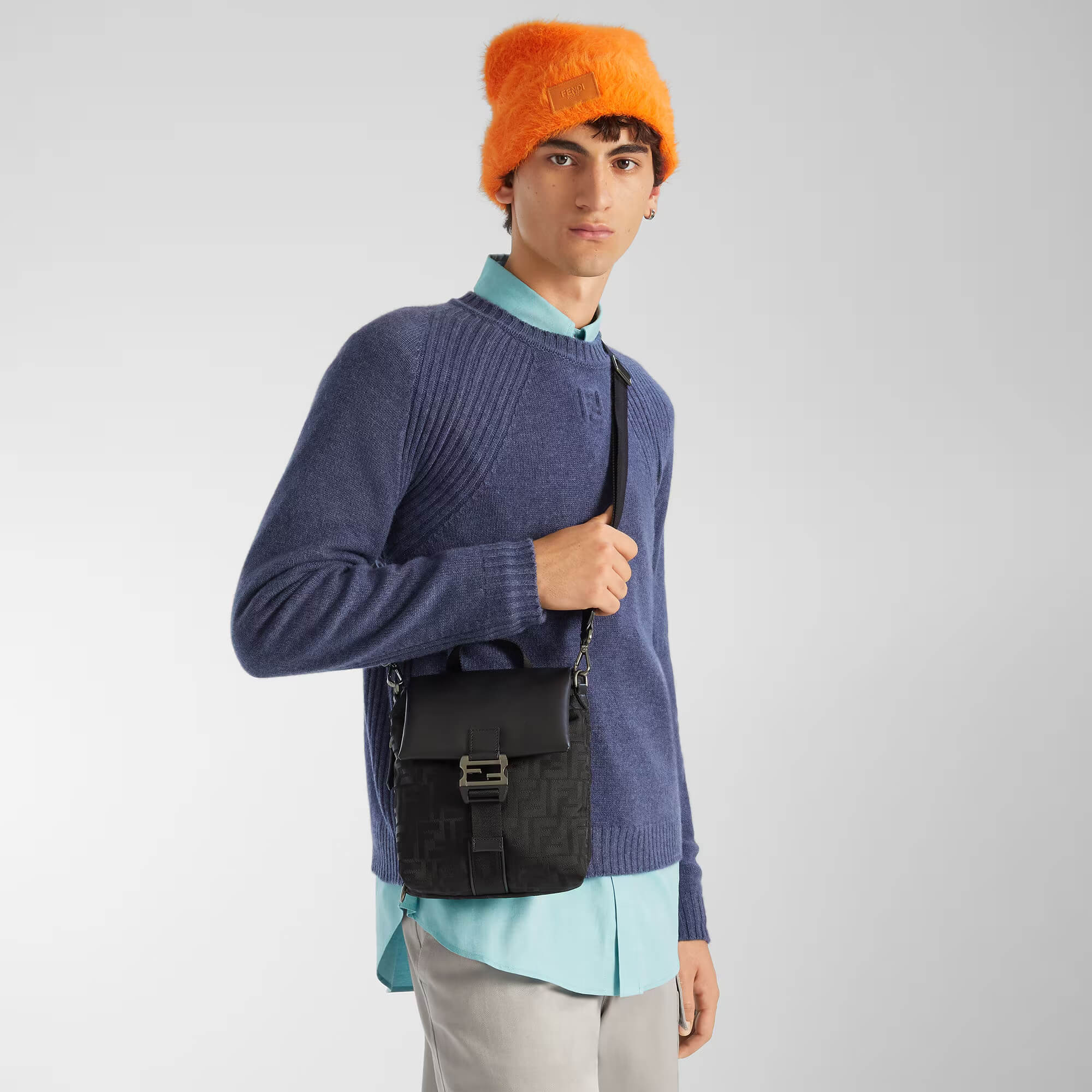 ניילון בצבע שחור עם בד בדוגמת FF ומרקם מבריק