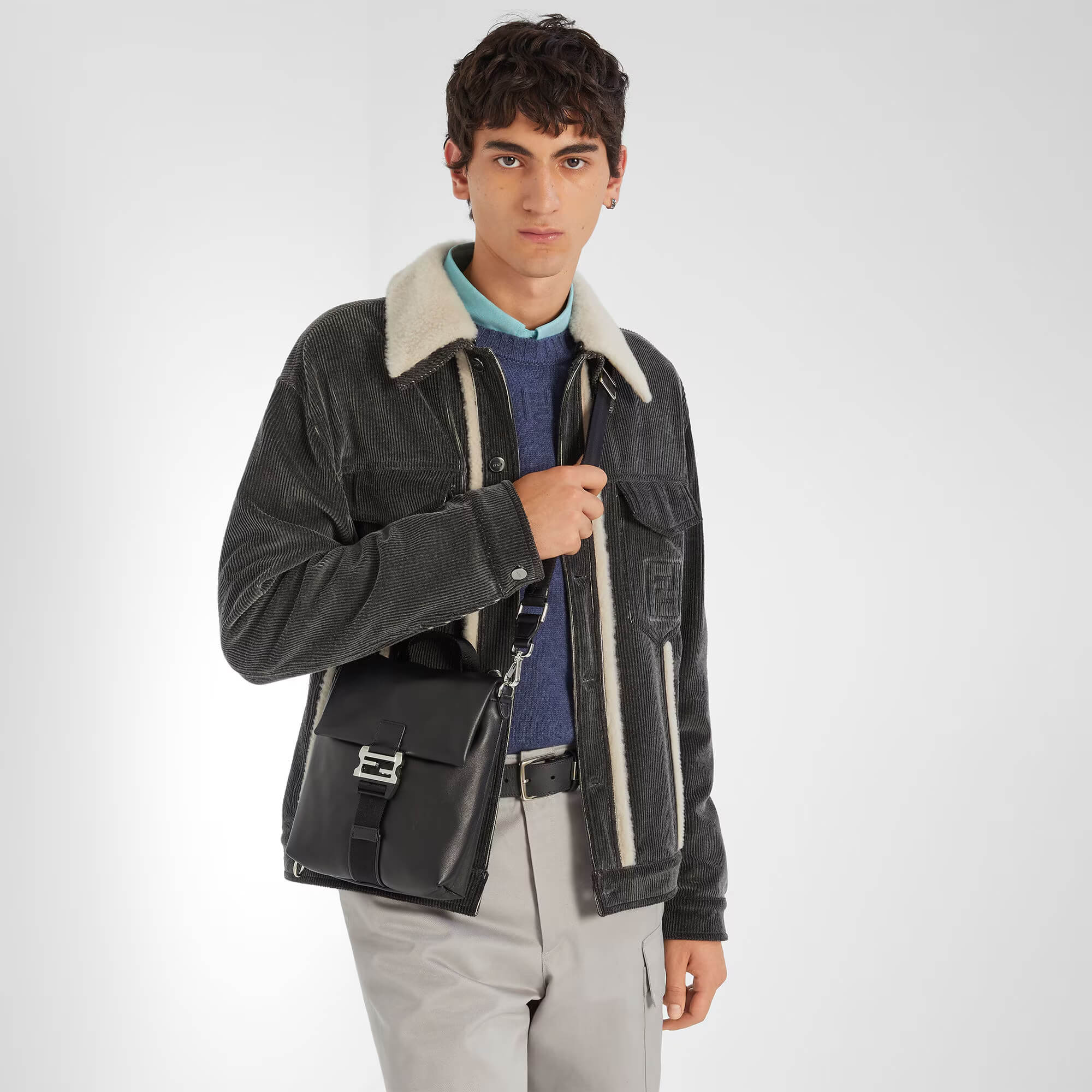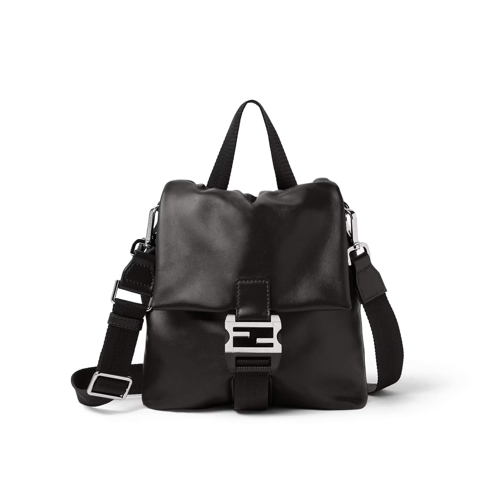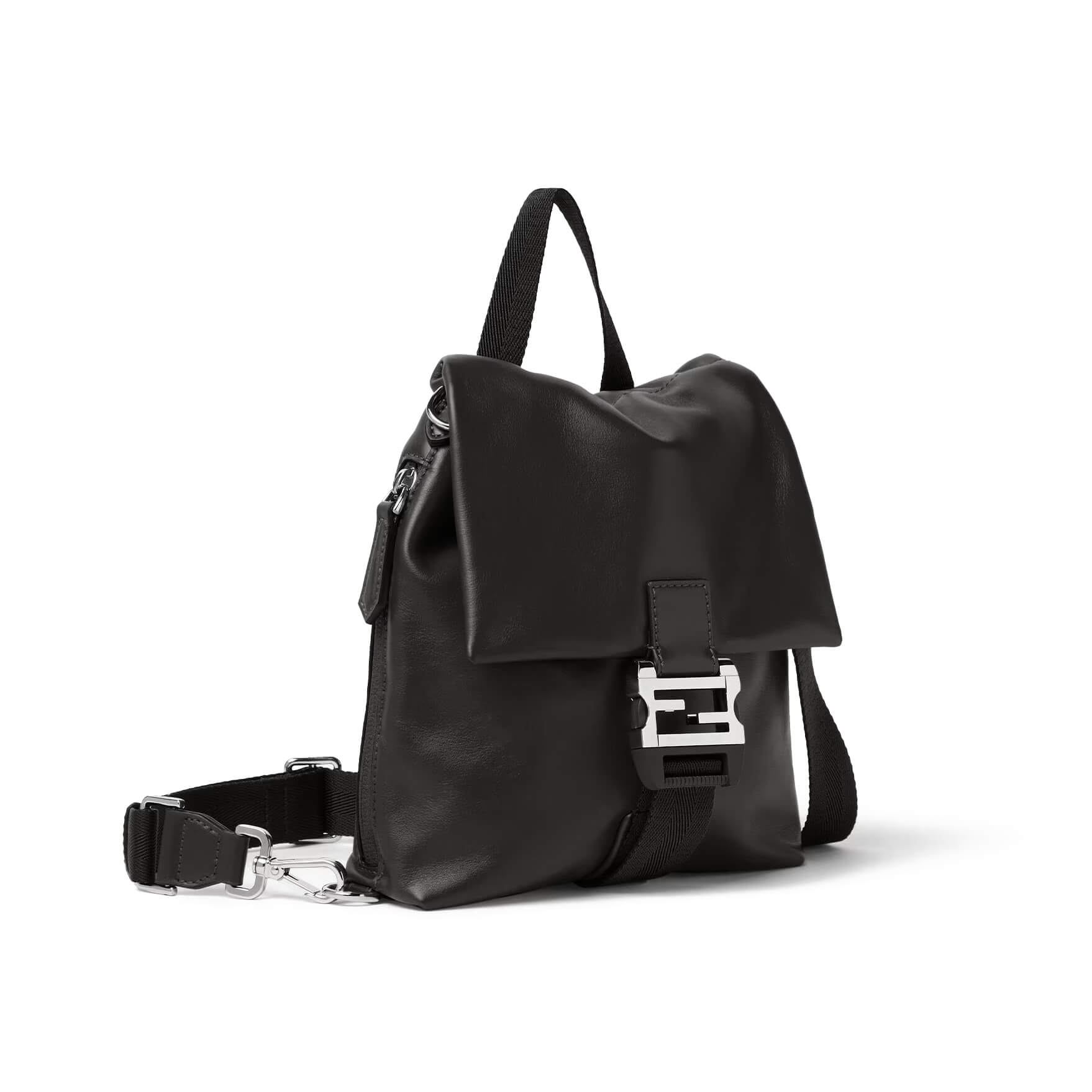 רצועת כתף מתכווננת ונשלפת מבד טכני שחור ועור