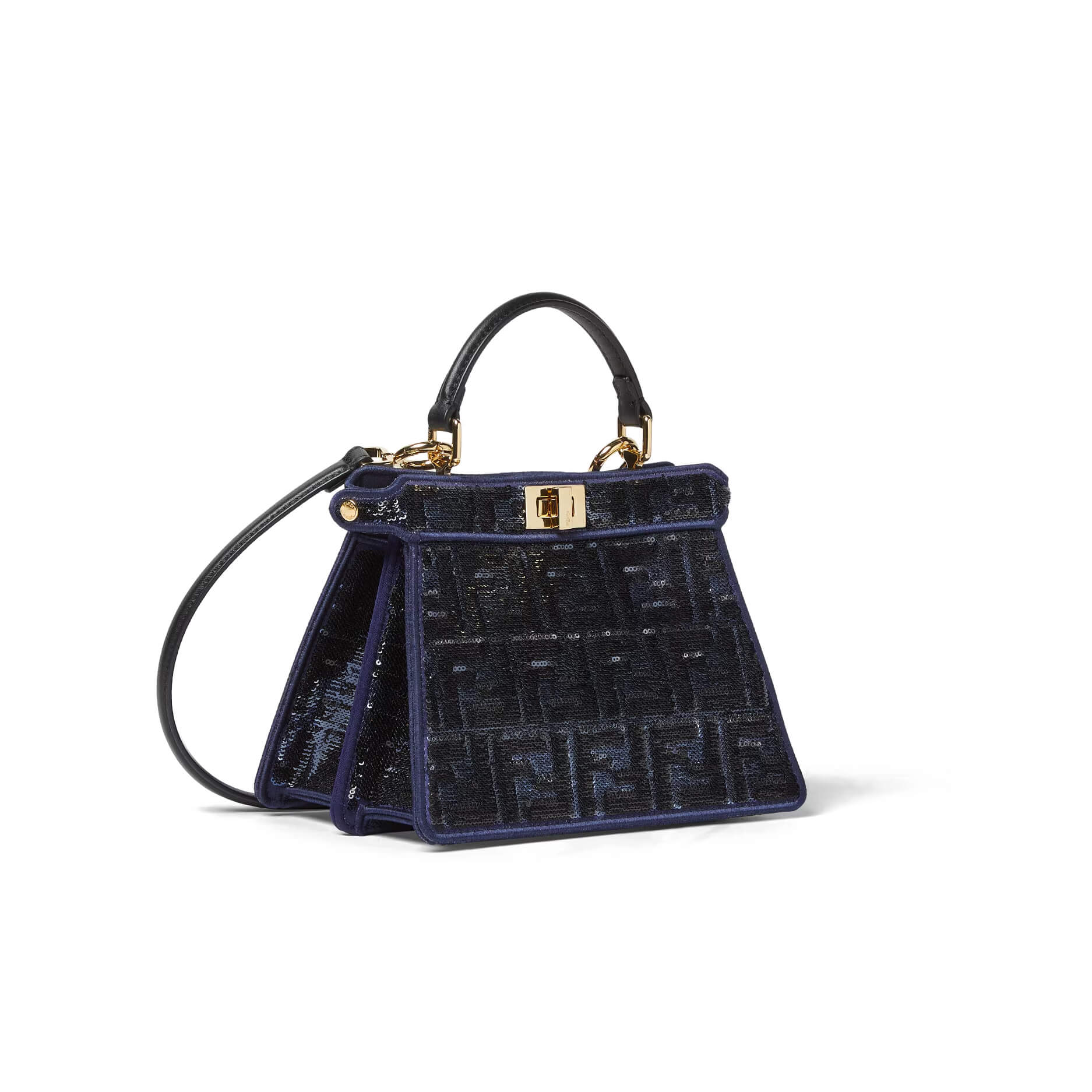 עשוי מבד פאייטים כחולים בדוגמת FF