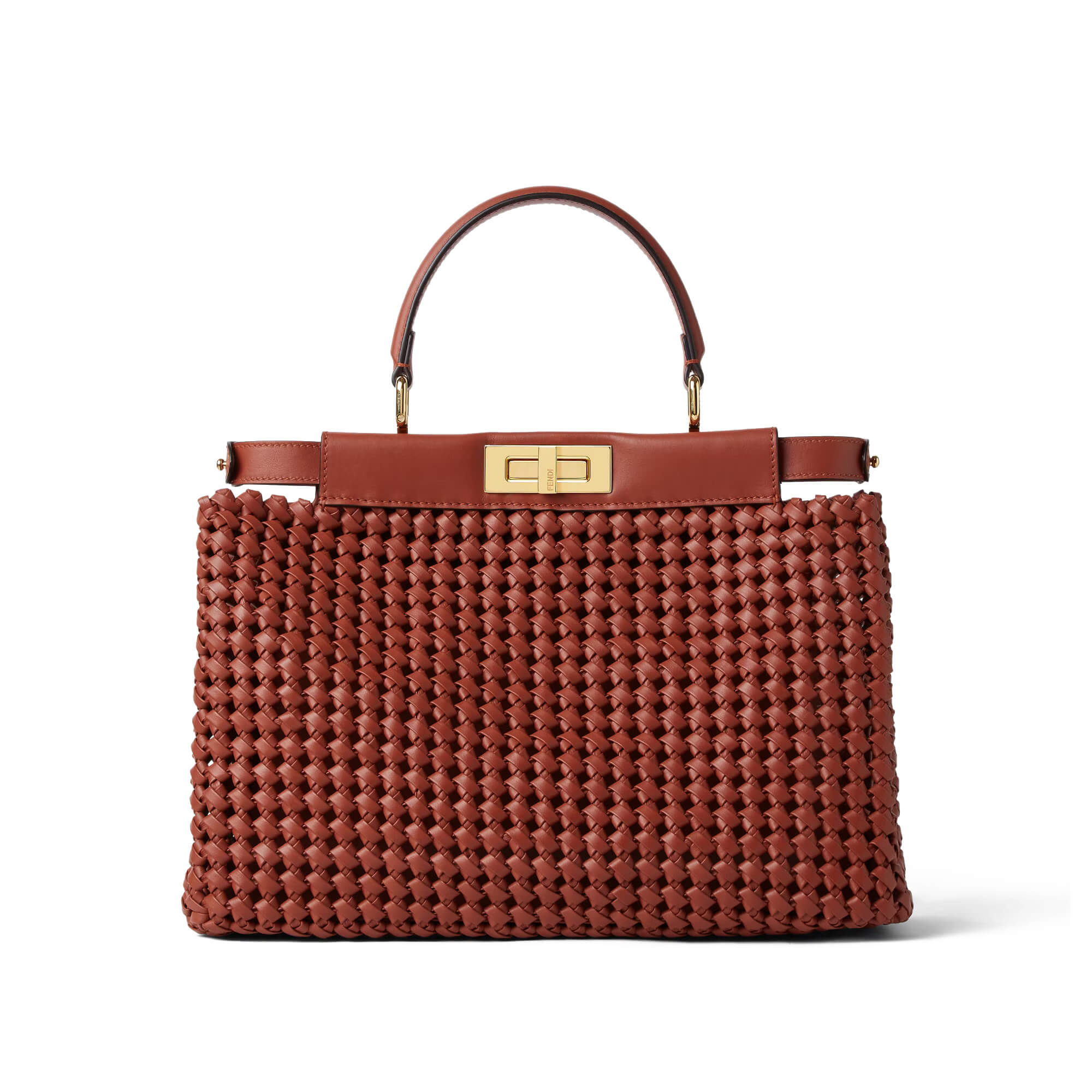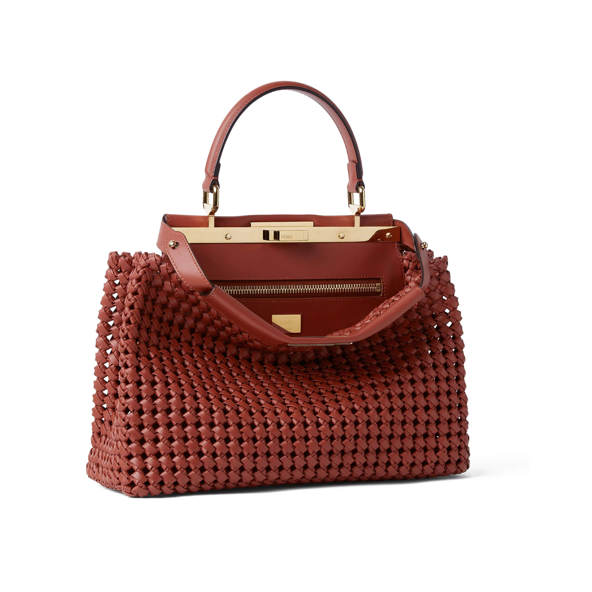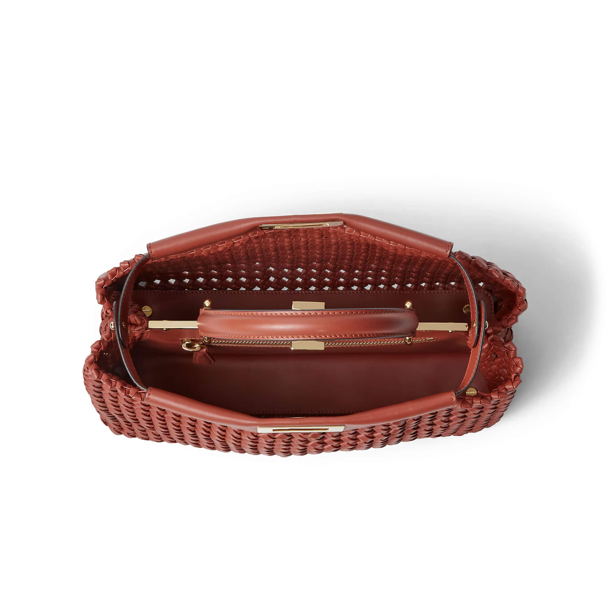 עשוי מעור calfskin בצבע חום סיינה באריגה וקשירה בעבודת יד