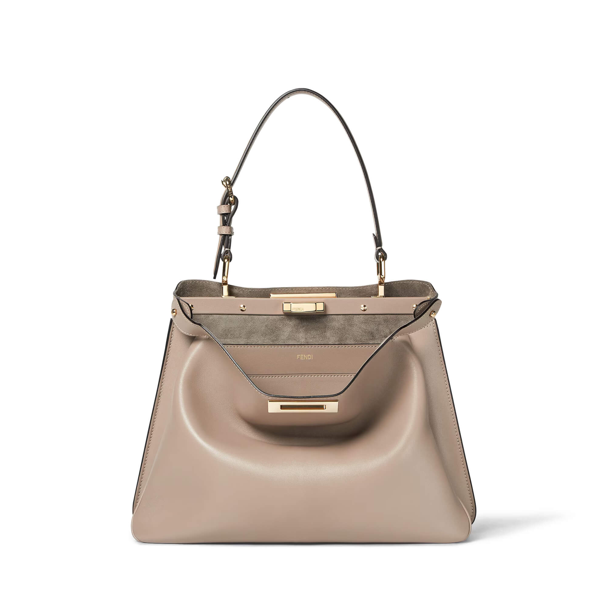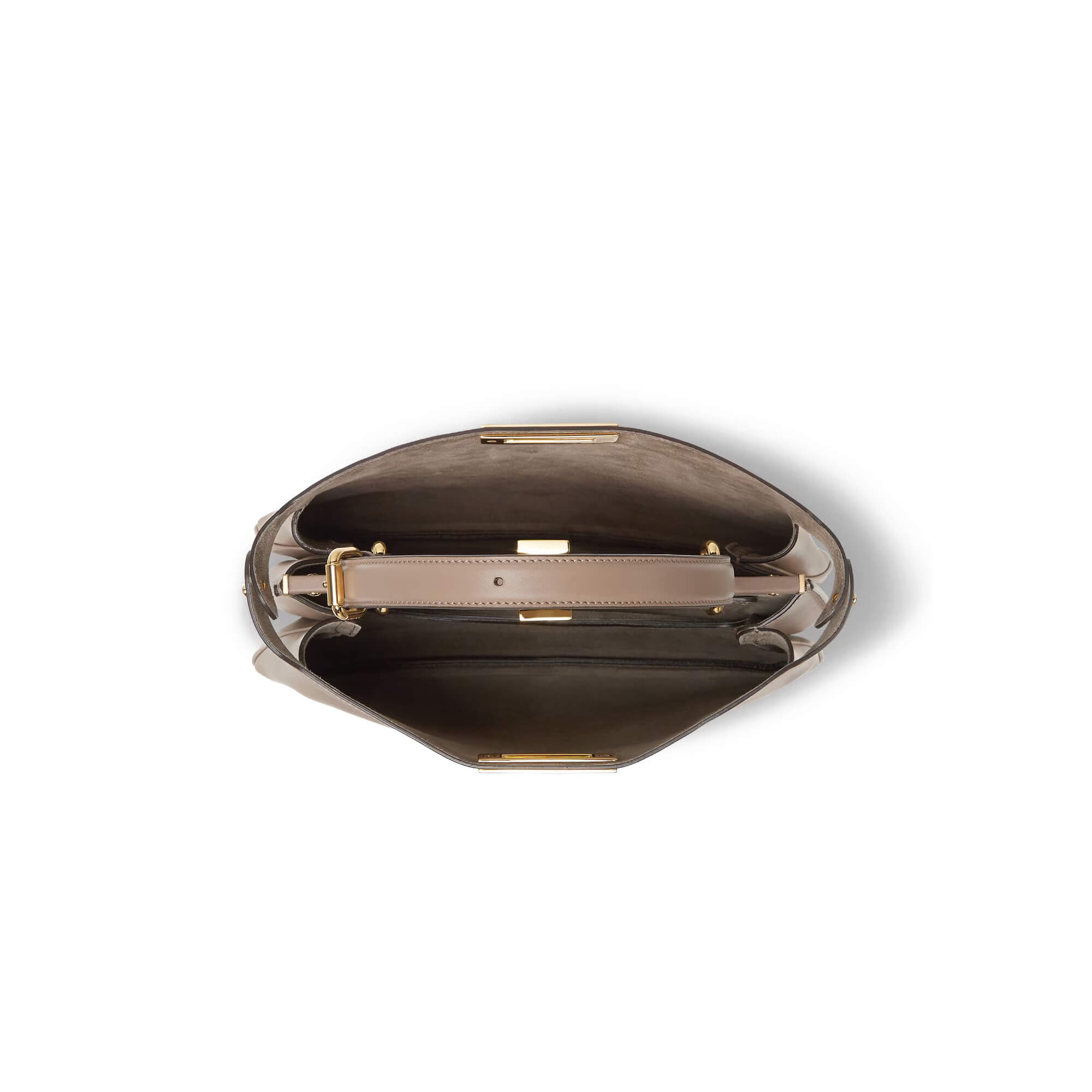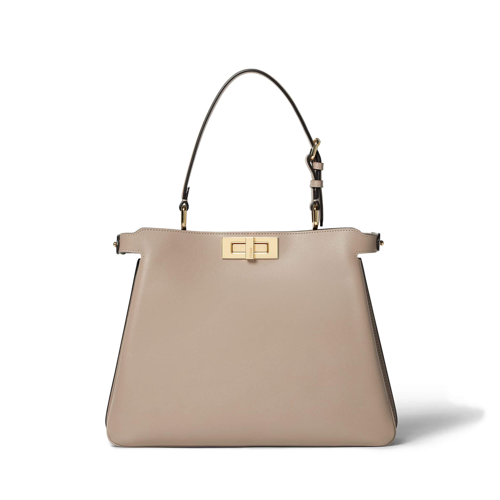 עשוי מעור calfskin בצבע בז׳ בגימור חלק