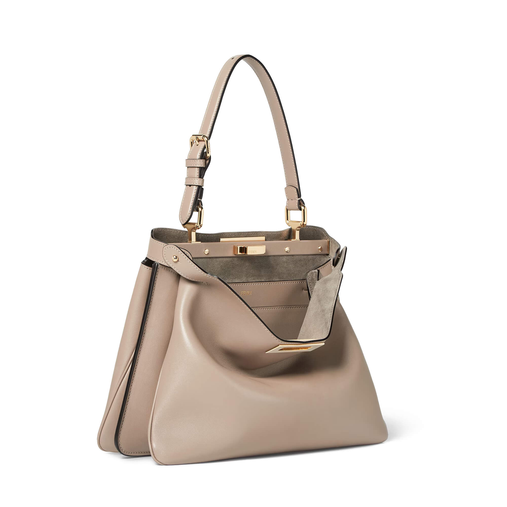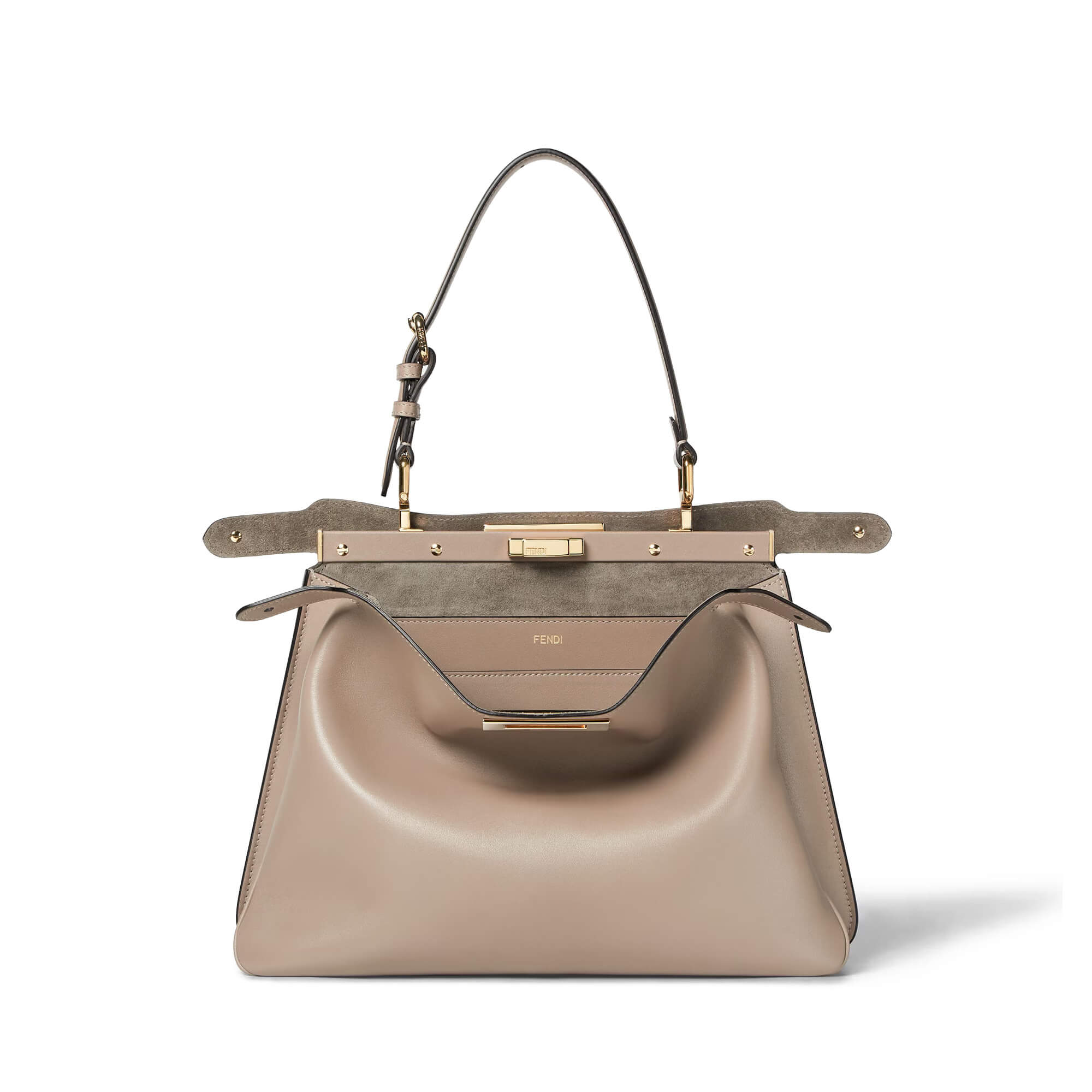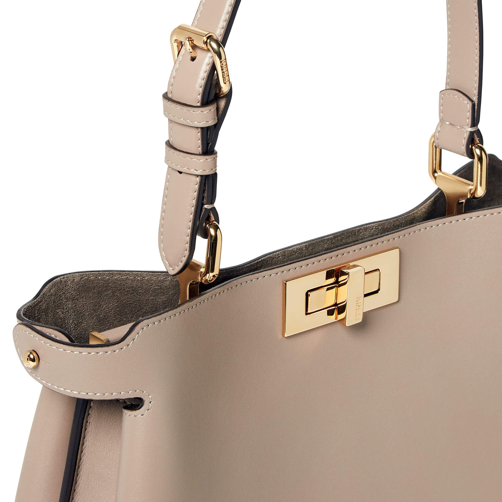 עשוי מעור calfskin בצבע בז׳ בגימור חלק