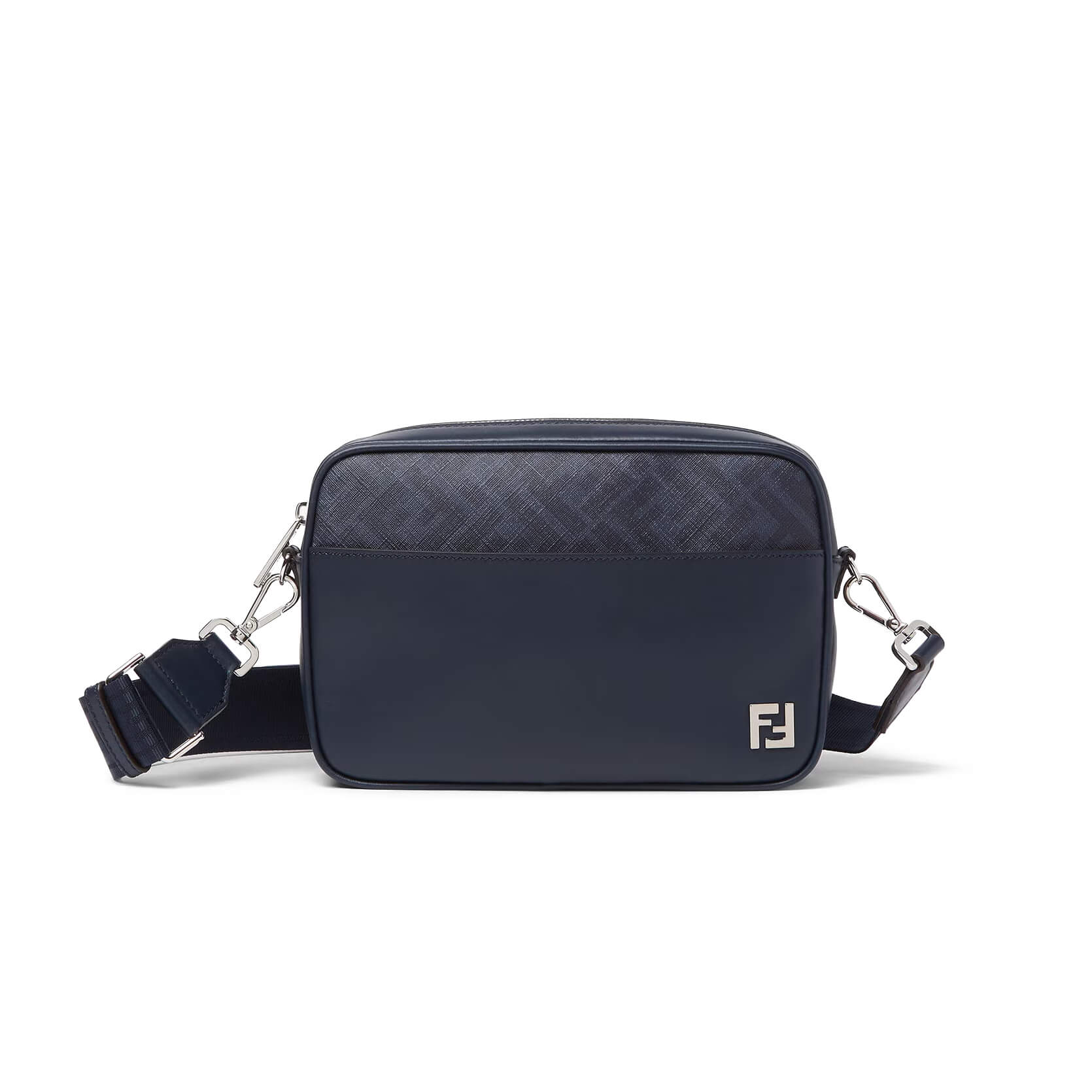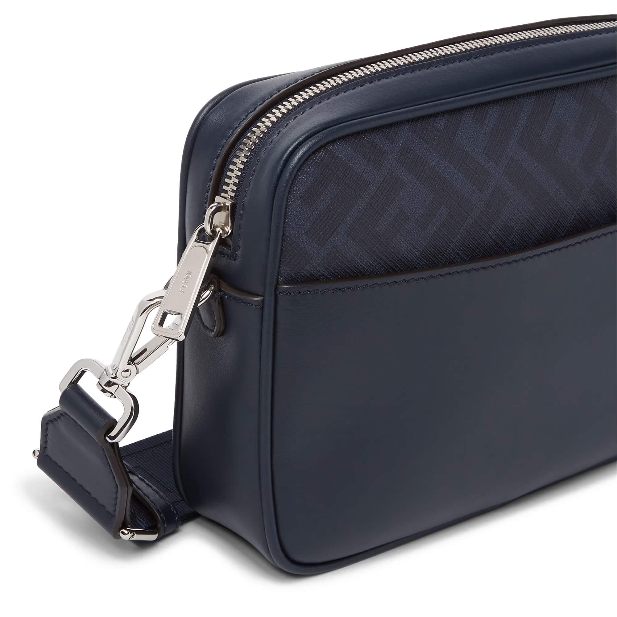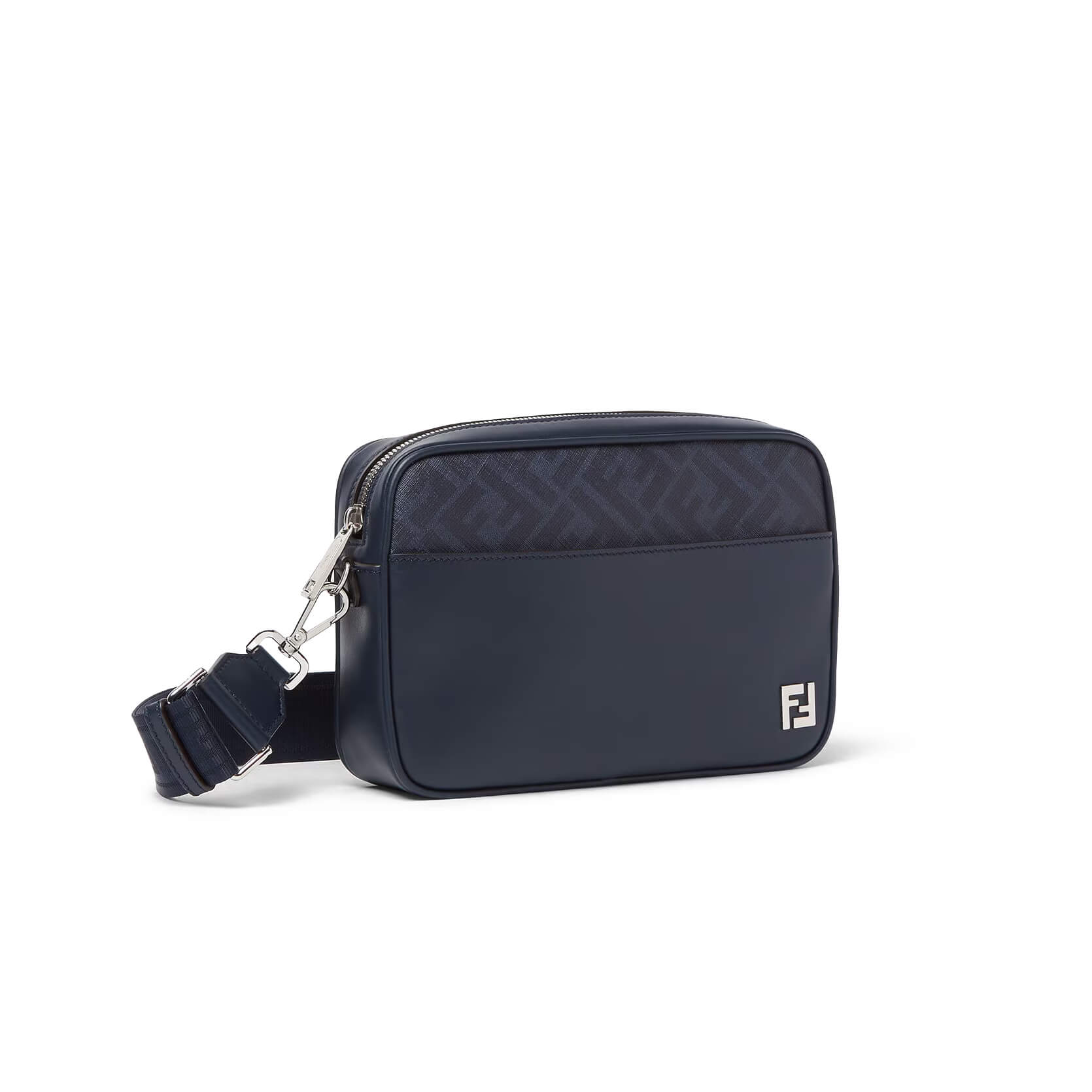 עשוי עור חלק בצבע כחול כהה ובד FF Canvas בגוון תואם