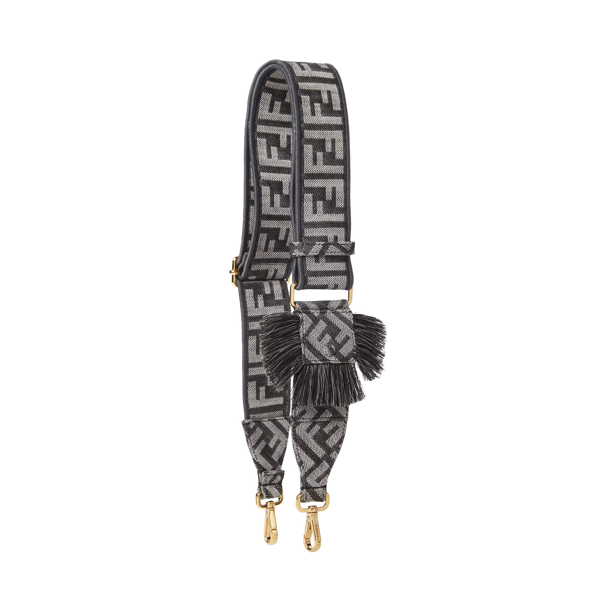 רצועת כתף ארוכה מאריג במראה דנים בצבע אפור כהה עם דוגמת FF בצבע אפור בהיר