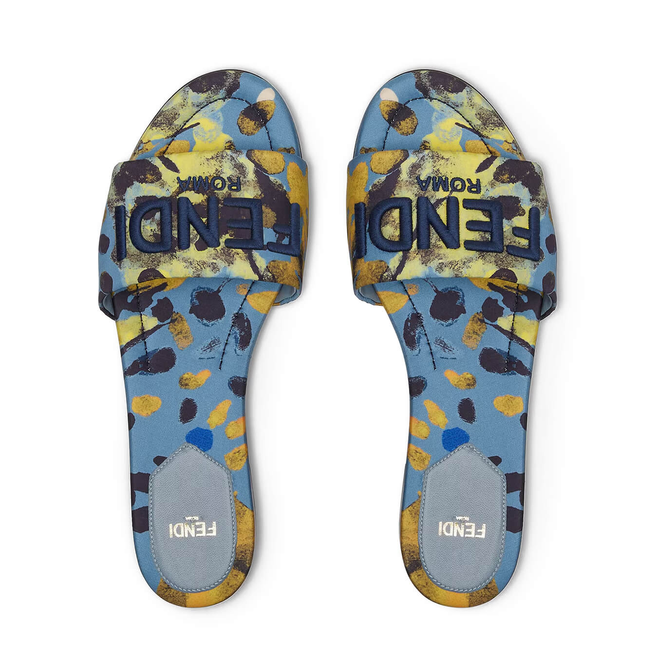 עשוי בד משי מודפס בצבע תכלת עם רקמת FENDI ROMA מובלטת