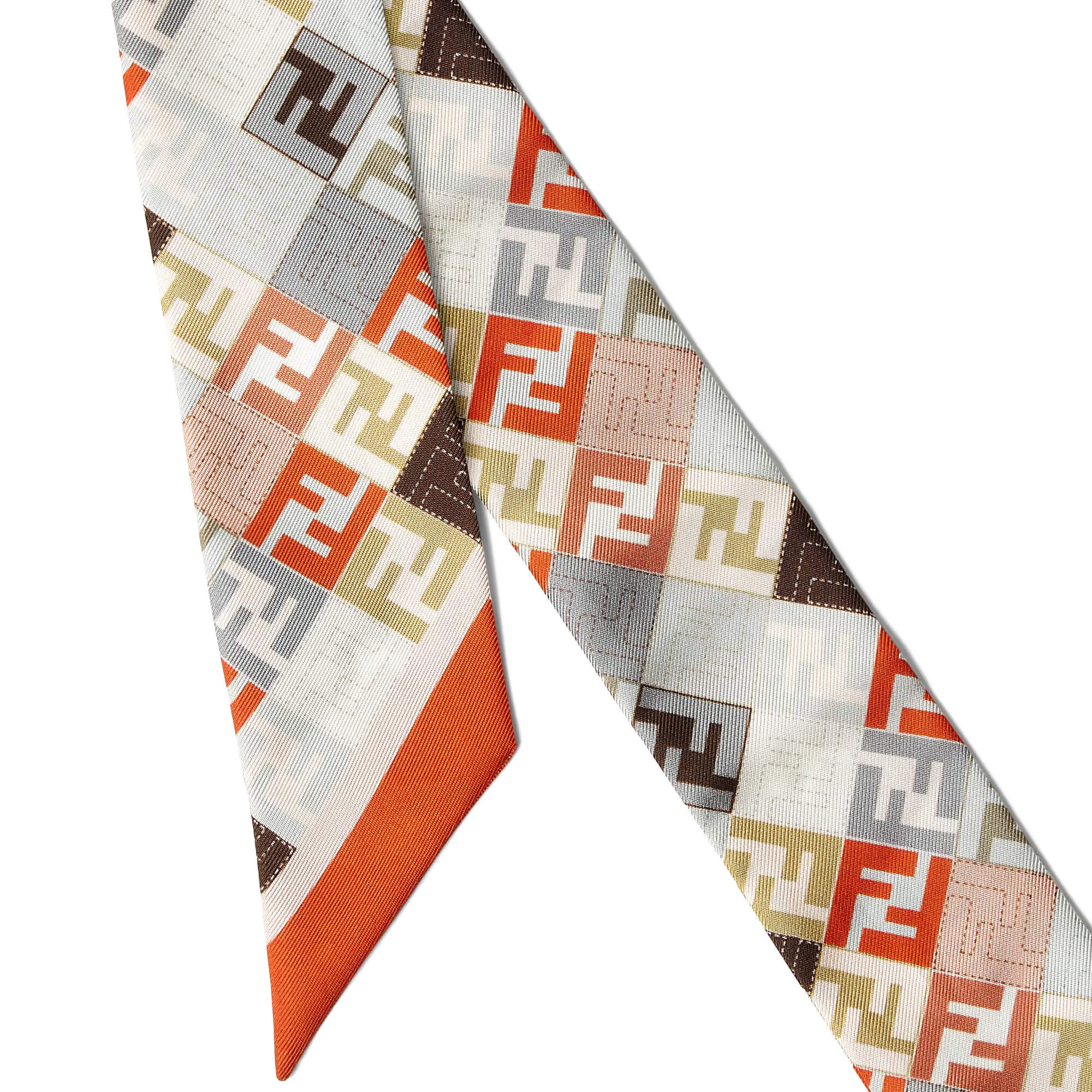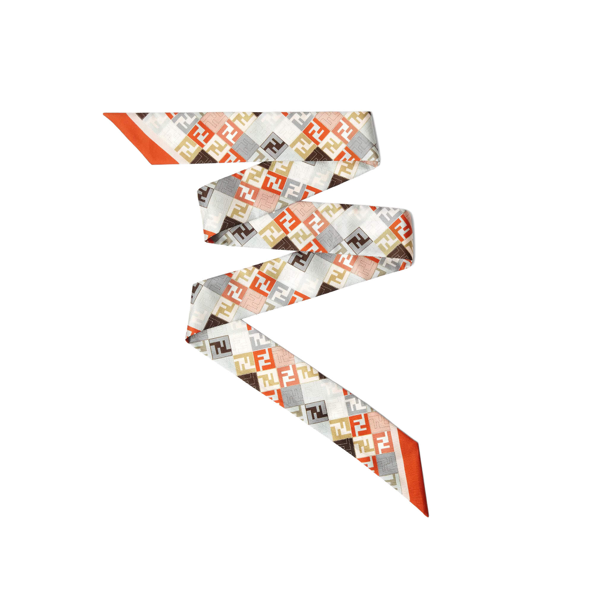 צעיף צר מבד משי עם הדפס לוגו FF צבעוני