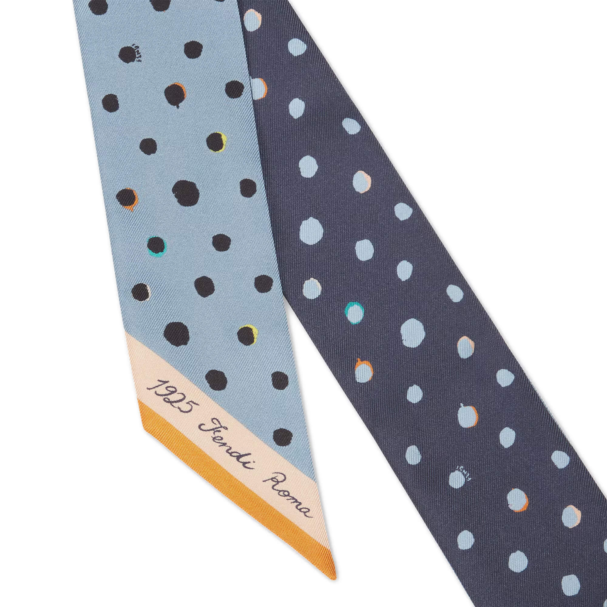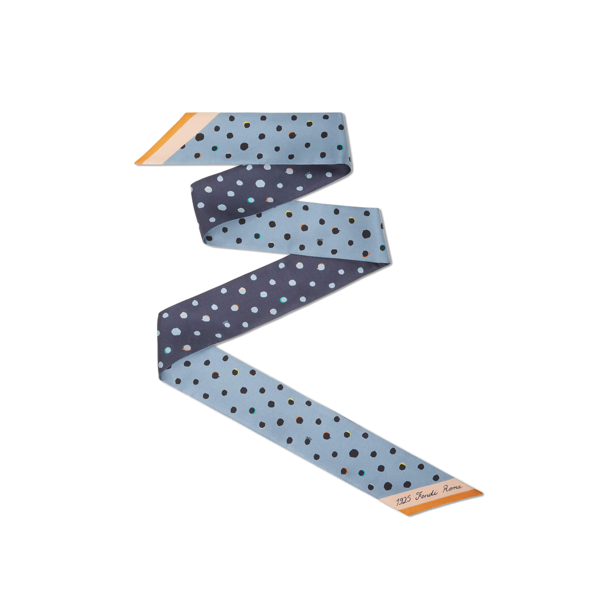 צעיף צר מבד משי בדוגמת Falena Dots בצבע תכלת וכחול