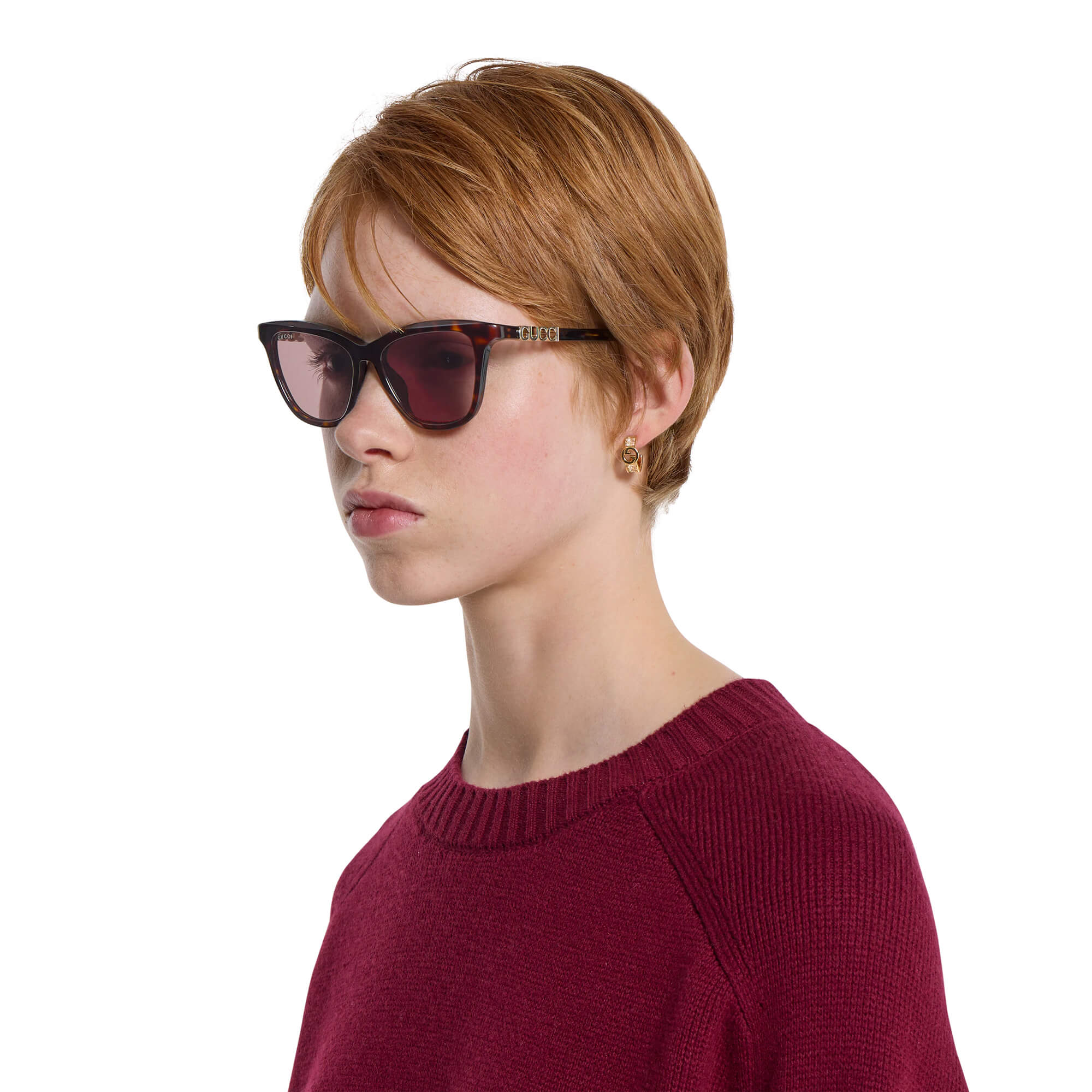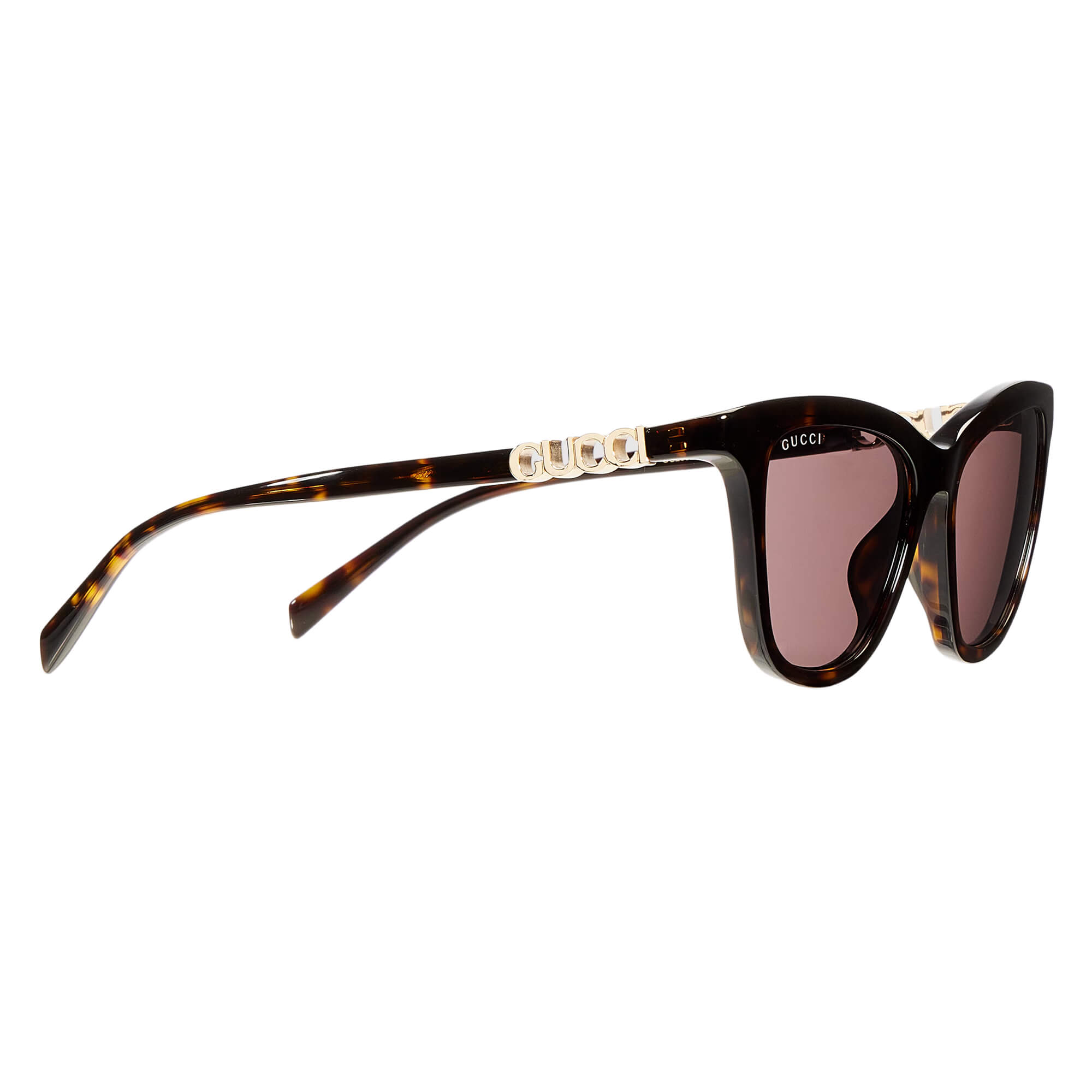 ידיות אצטט מבריקות בדוגמת tortoiseshell בצבע חום כהה עם לוגו Gucci