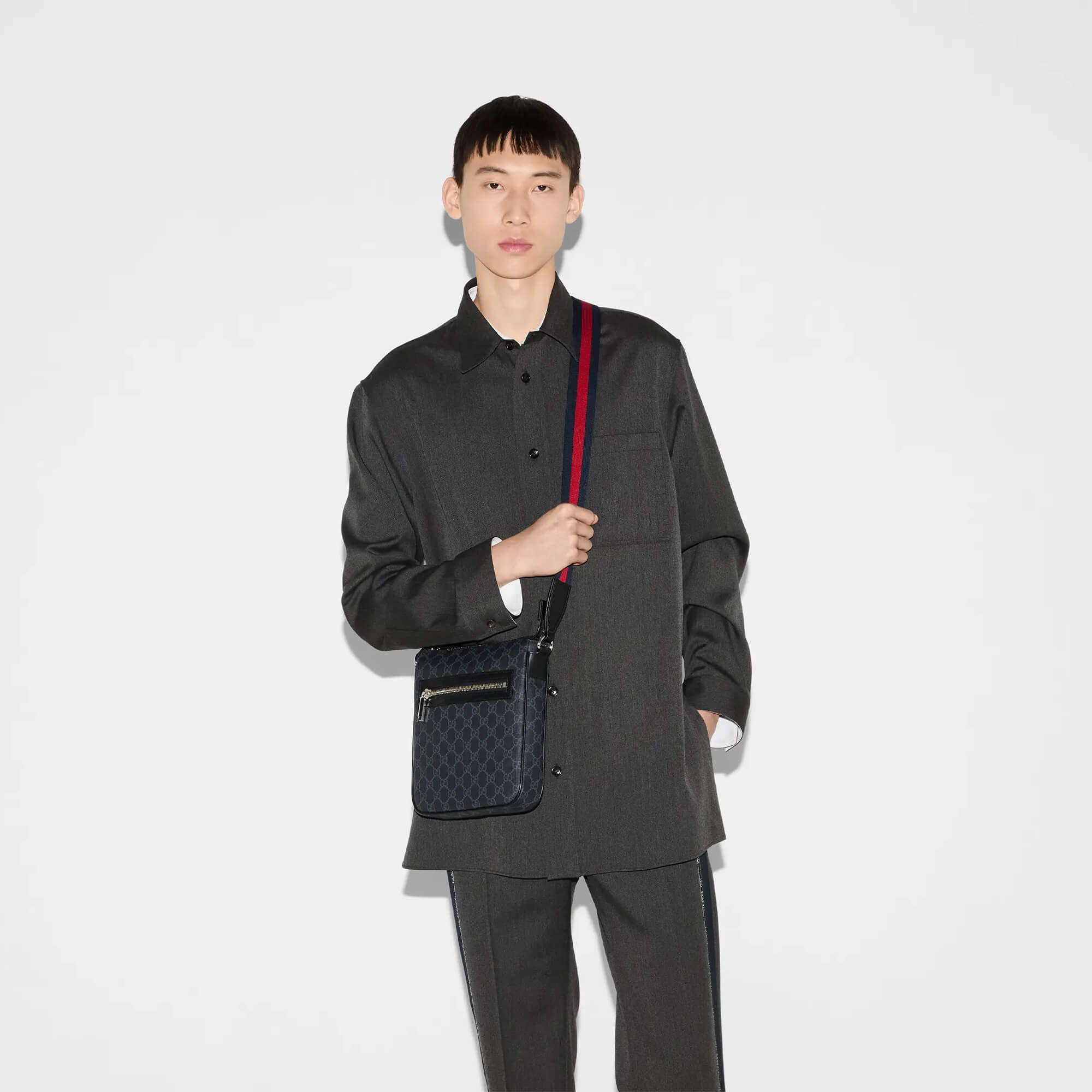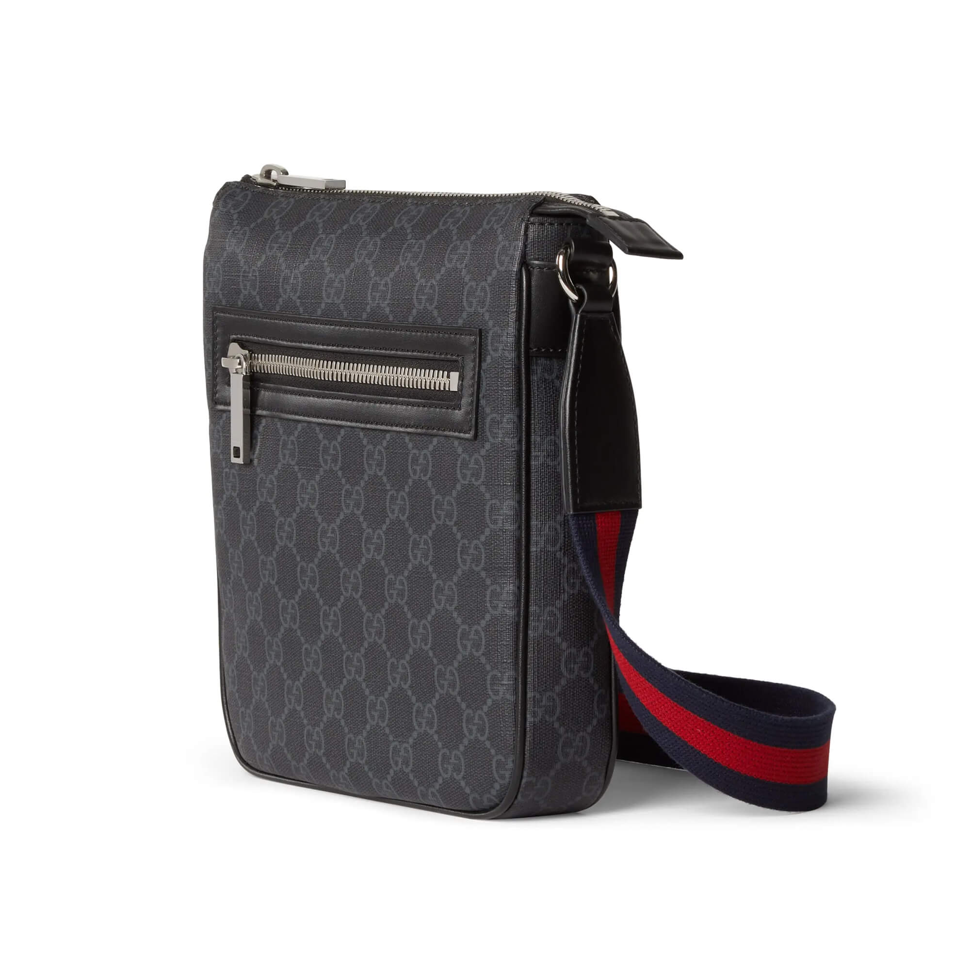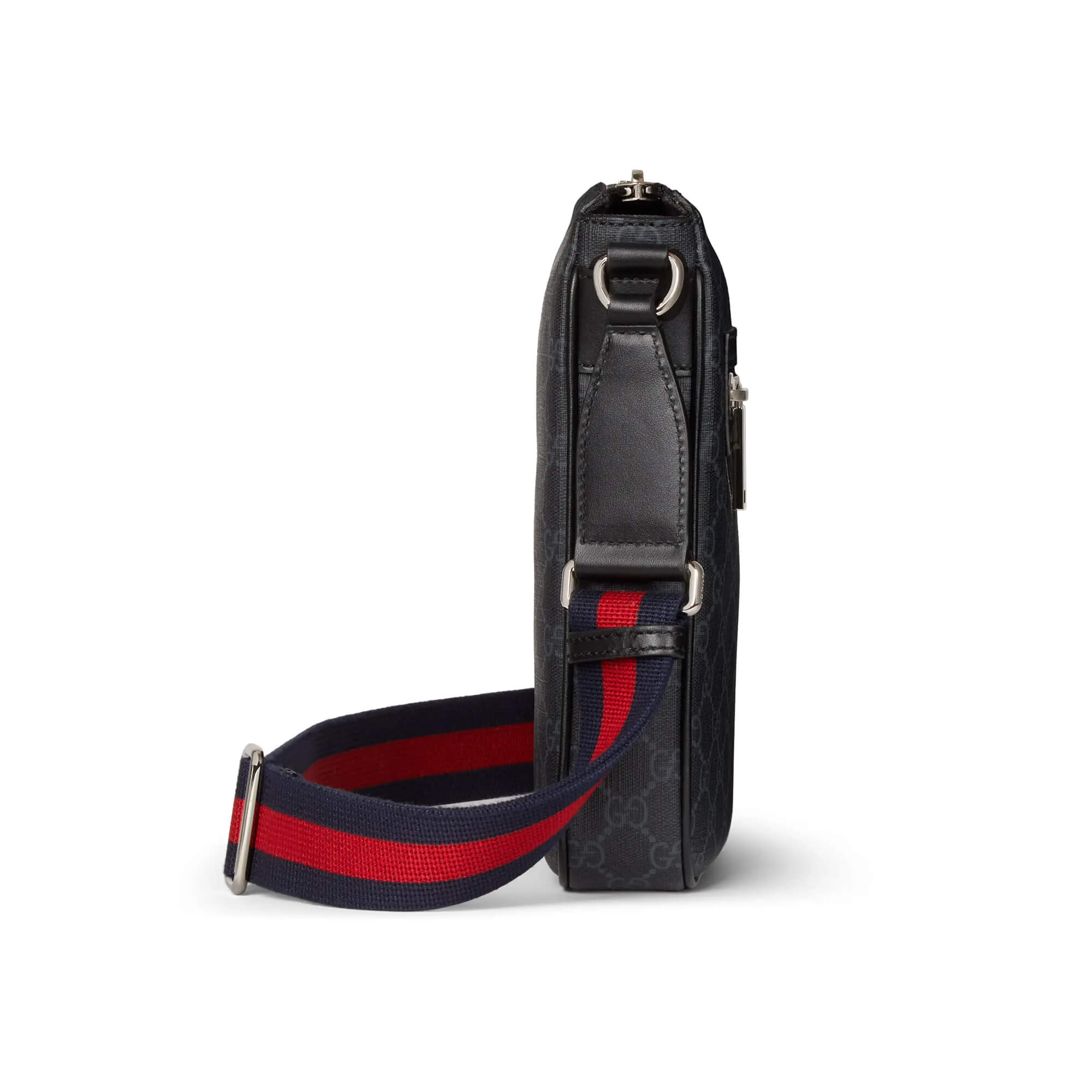 תיק קטן מבד GG Supreme שחור בשילוב עור שחור