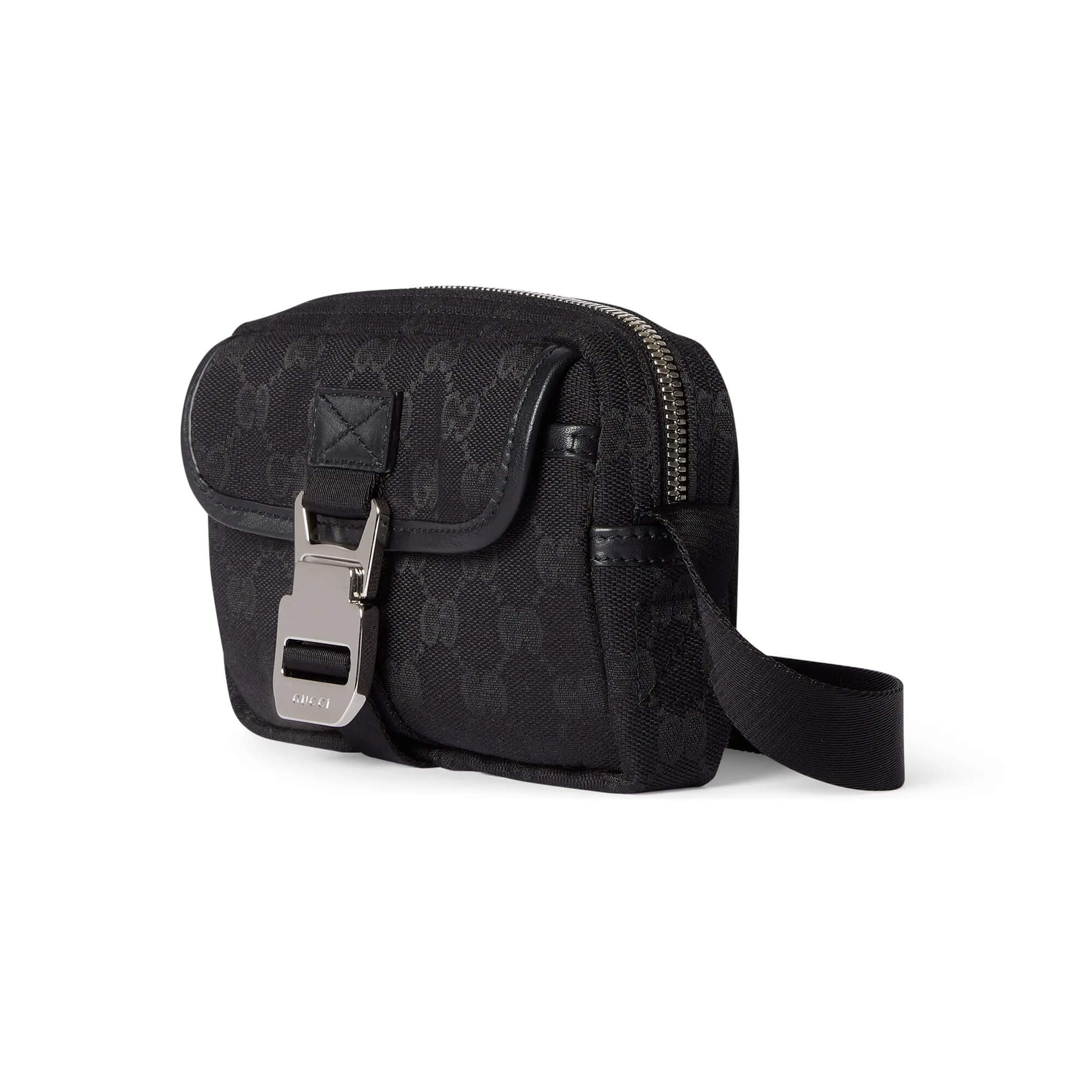 תיק קטן מאריג GG בצבע שחור בשילוב עור שחור